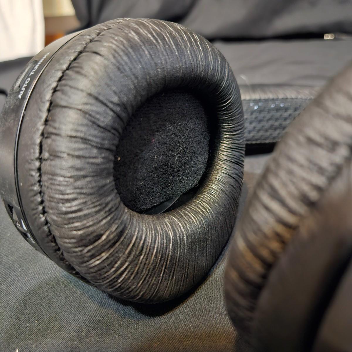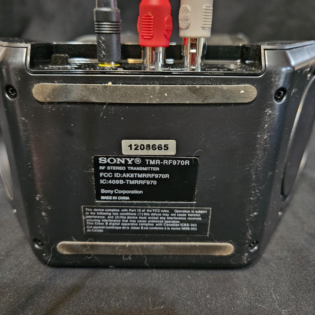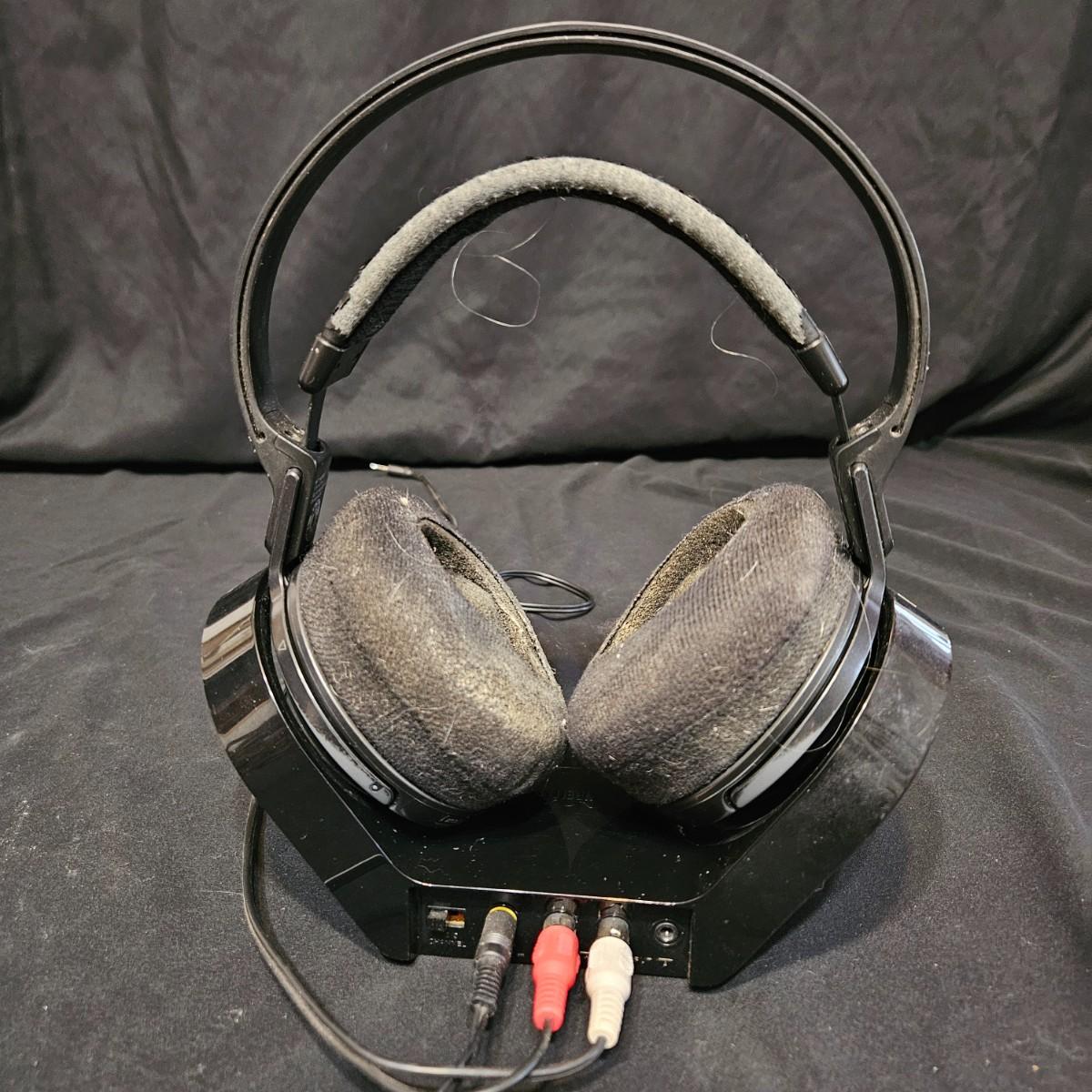 Two pairs of Sony headphones that powered on when plugged in. The pair on the right of the cover photo show signs of wear on the foam - this can be easily replaced. The set with the taller charging block measures approximately 7" x 5" x 10.5"H. Shipping available