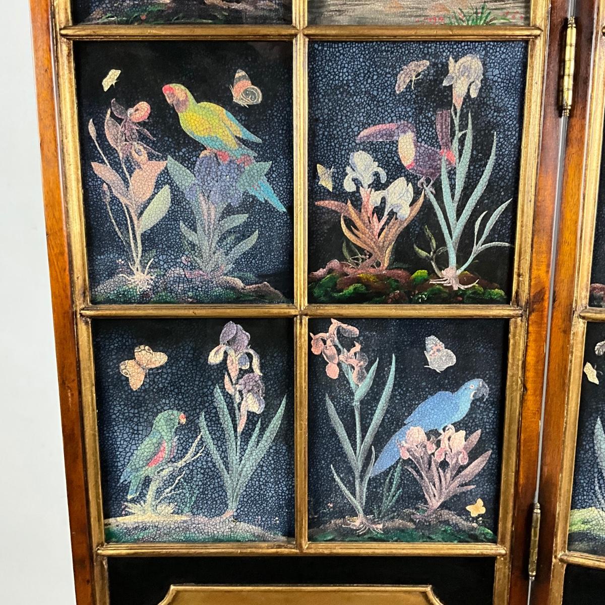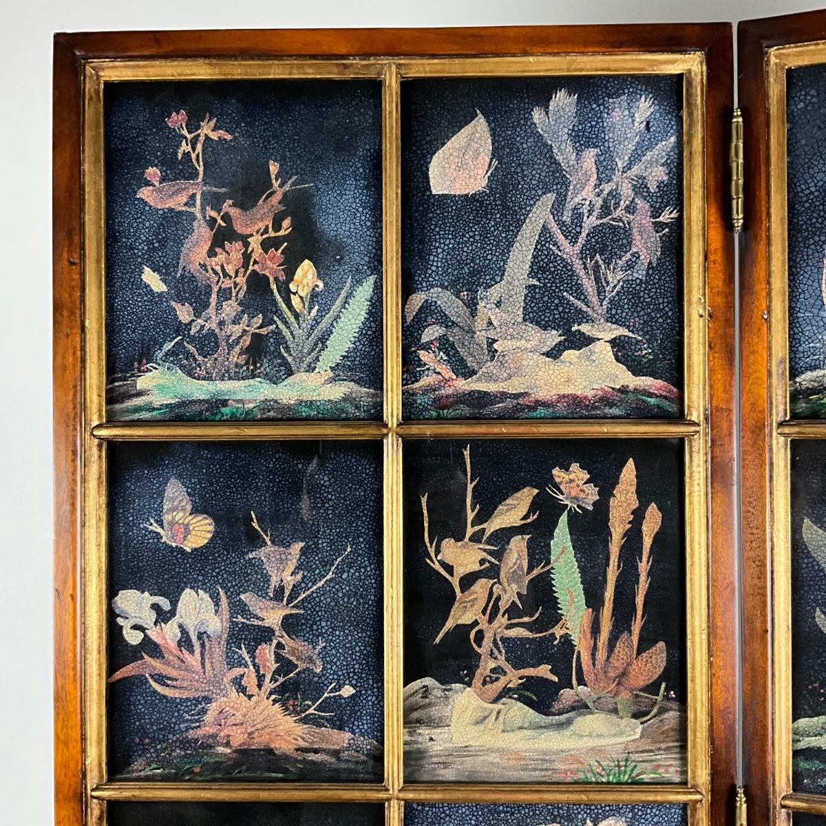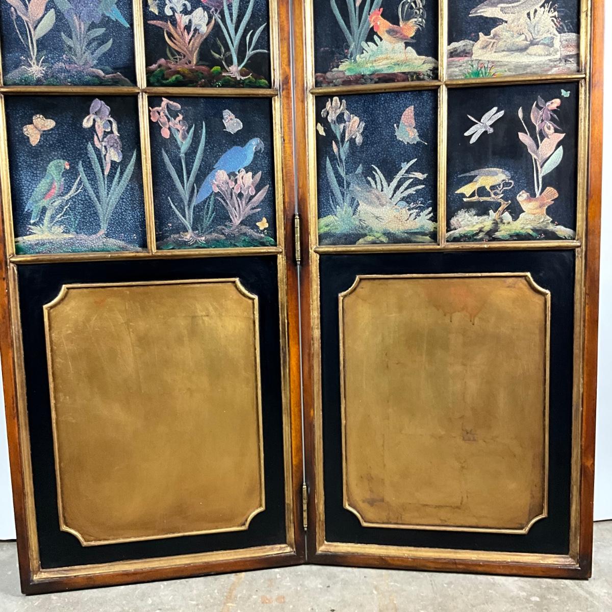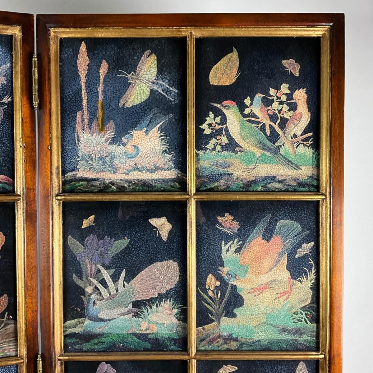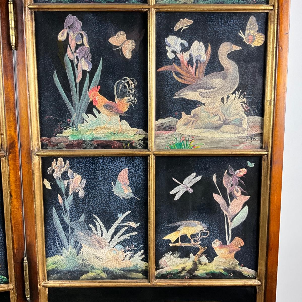 Each panel has multiple screens of hand-painted wild-life