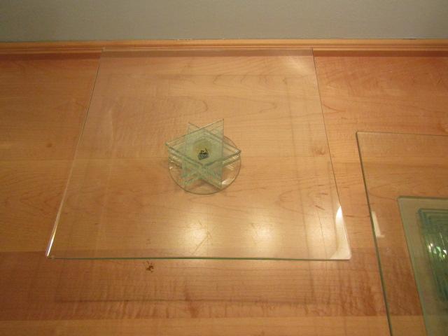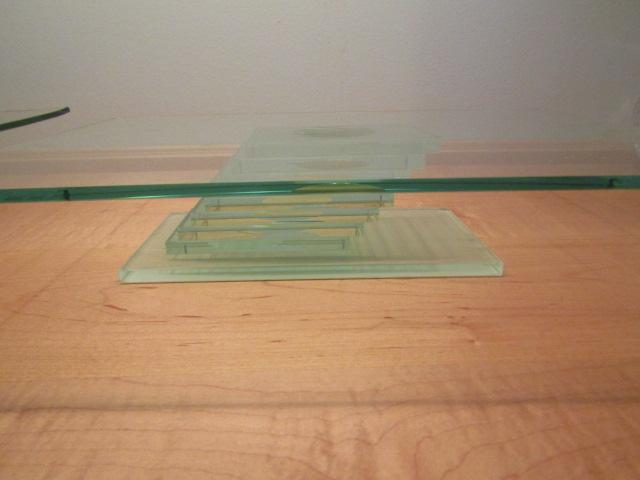 Two Pedestaled Cake/Serving Plates. One is 13 5/8" x 9 1/2". One is 12 1/4" square.