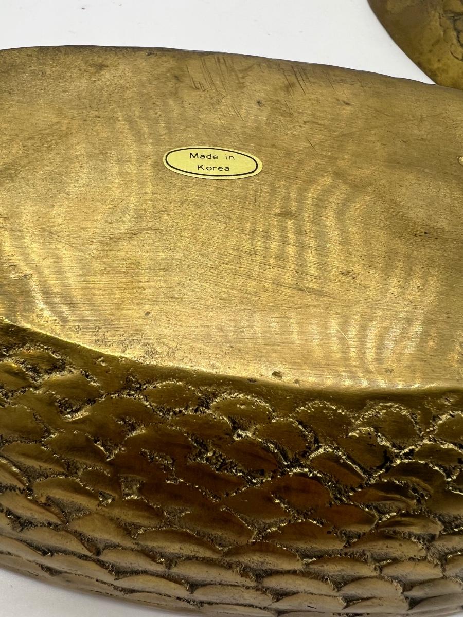 Heavy 12 inches wide and 5 1/2 inches wide. Smaller one is 10 inches long and 4 inches wide.
