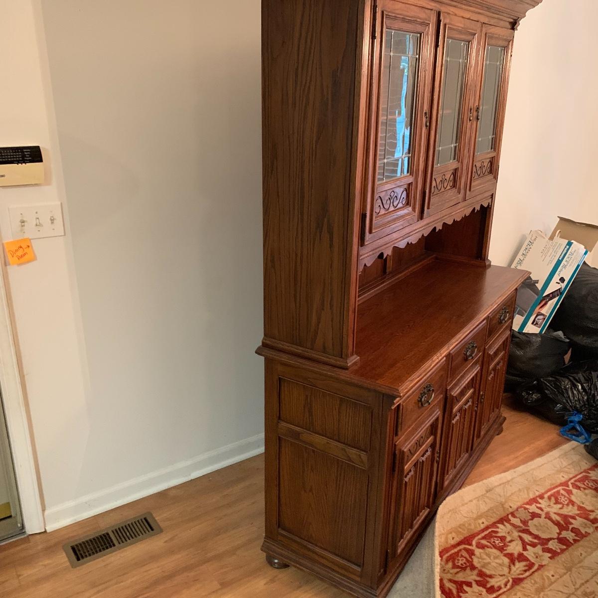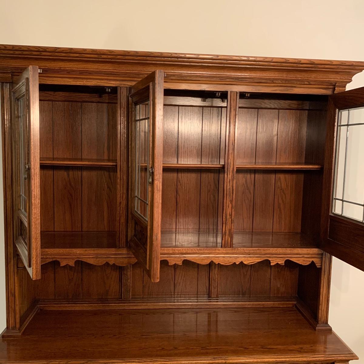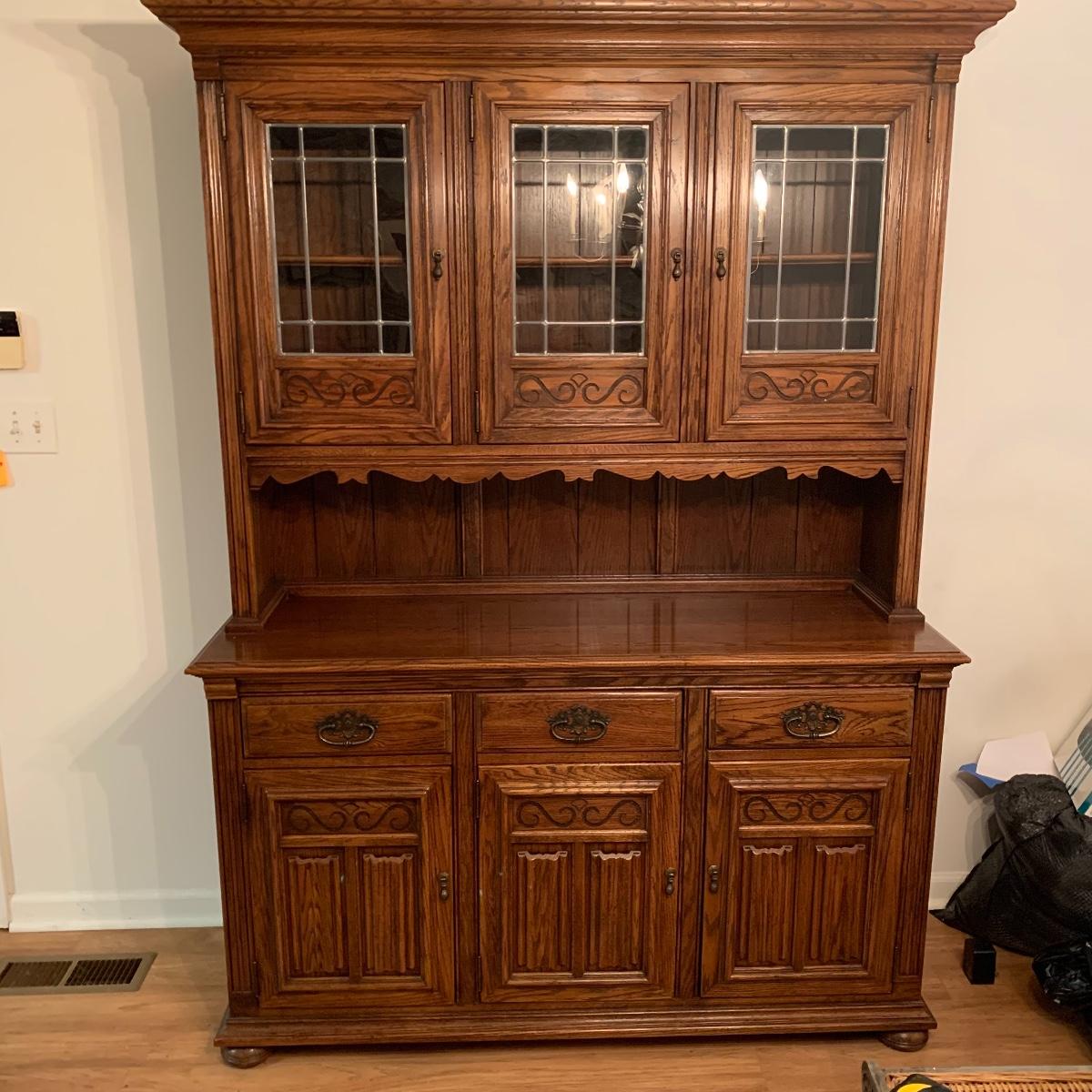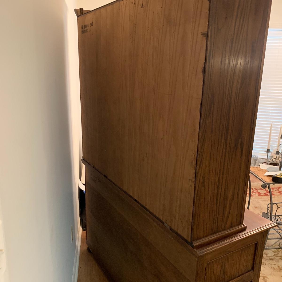 This well made, solid wood with glass panel top doors is a wonderful piece as a China cabinet or just storage. Repurpose this lovely for anywhere in your home. Top piece is not attached and there are no blemishes to note. Top piece has an adjustable shelf. Total measurement is 55”x20”x76”. Local pick up only.