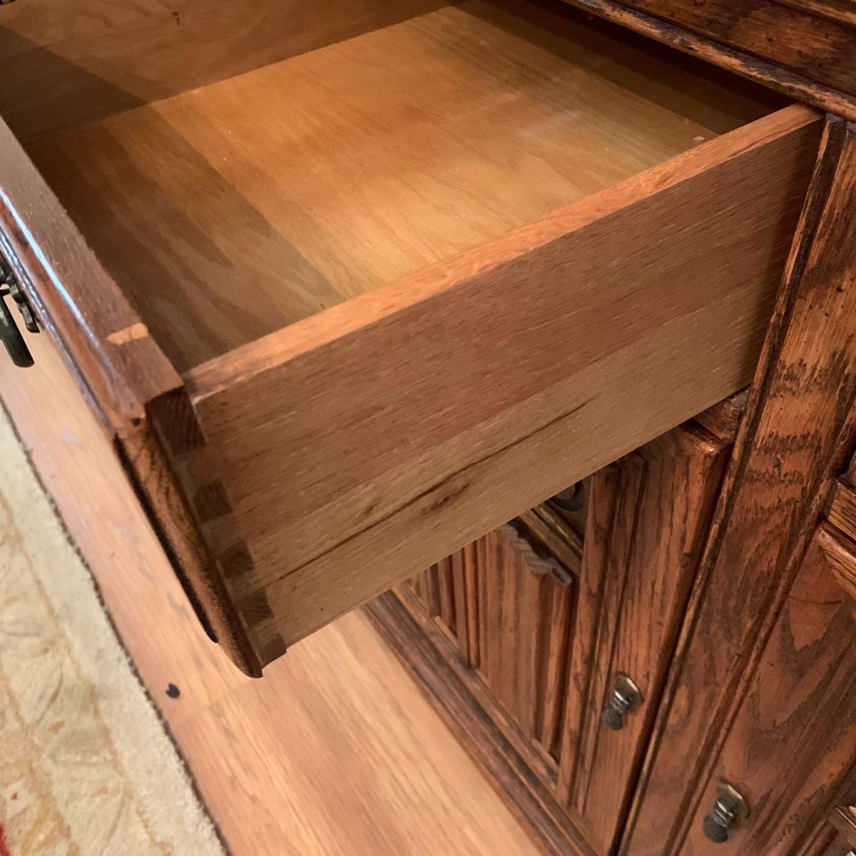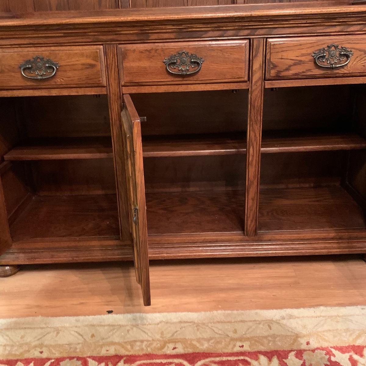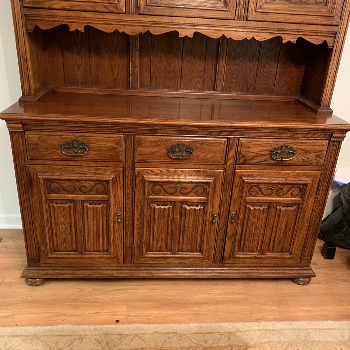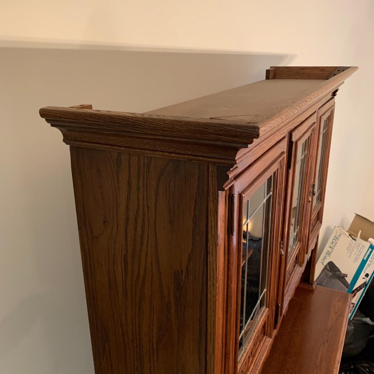 This well made, solid wood with glass panel top doors is a wonderful piece as a China cabinet or just storage. Repurpose this lovely for anywhere in your home. Top piece is not attached and there are no blemishes to note. Top piece has an adjustable shelf. Total measurement is 55”x20”x76”. Local pick up only.