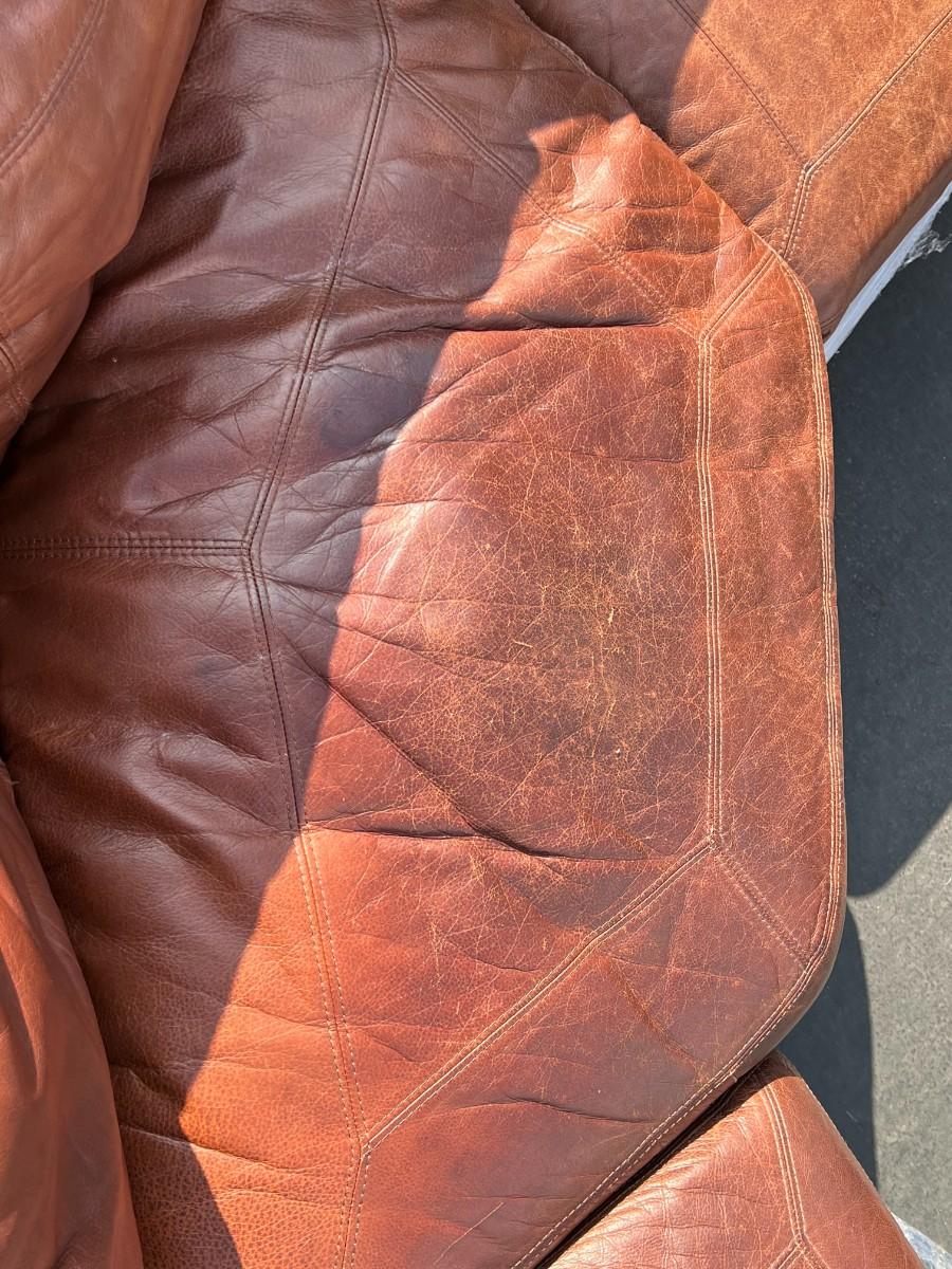There is some light wear to the couch, but there is no significant rips or tears and is in overall good useable condition. Check pictures for more details and for sizing.