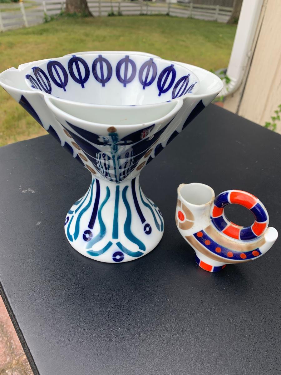 Lotted together since these two pieces were the only Bargadelo pieces with damage. Selling as is, as found in the estate. Please see ALL photos for content, condition, and dimensions.