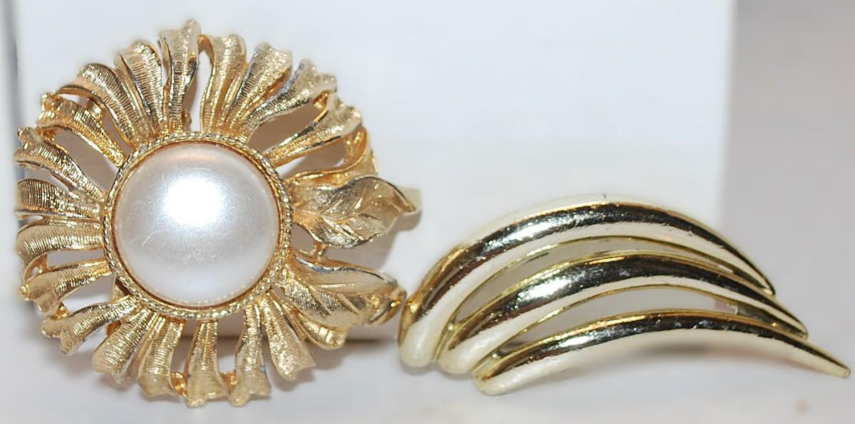 Two Pieces of Sunburst & Swirl BROOCHES (Sun 1¾" Diam.) (Swirl 2" x ¾") on Gold Tone Settings