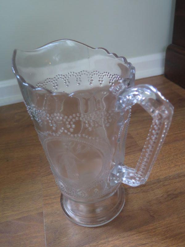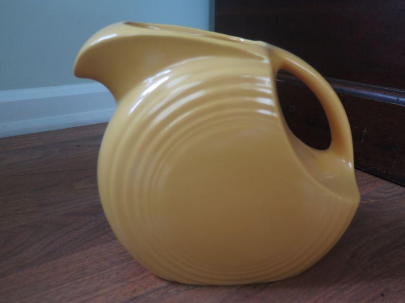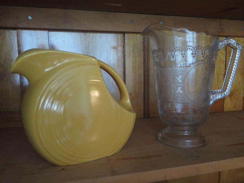 Fiestaware and glass pitcher. **Please read Terms and Conditions before placing a bid. Pick up is Sunday, September 1, 2019 from 10am to 4pm in Williamstown. All sales are final. All sales are as is, where is. Please review all photos. Any props included in photos are not included in listing. All measurements are approximate.