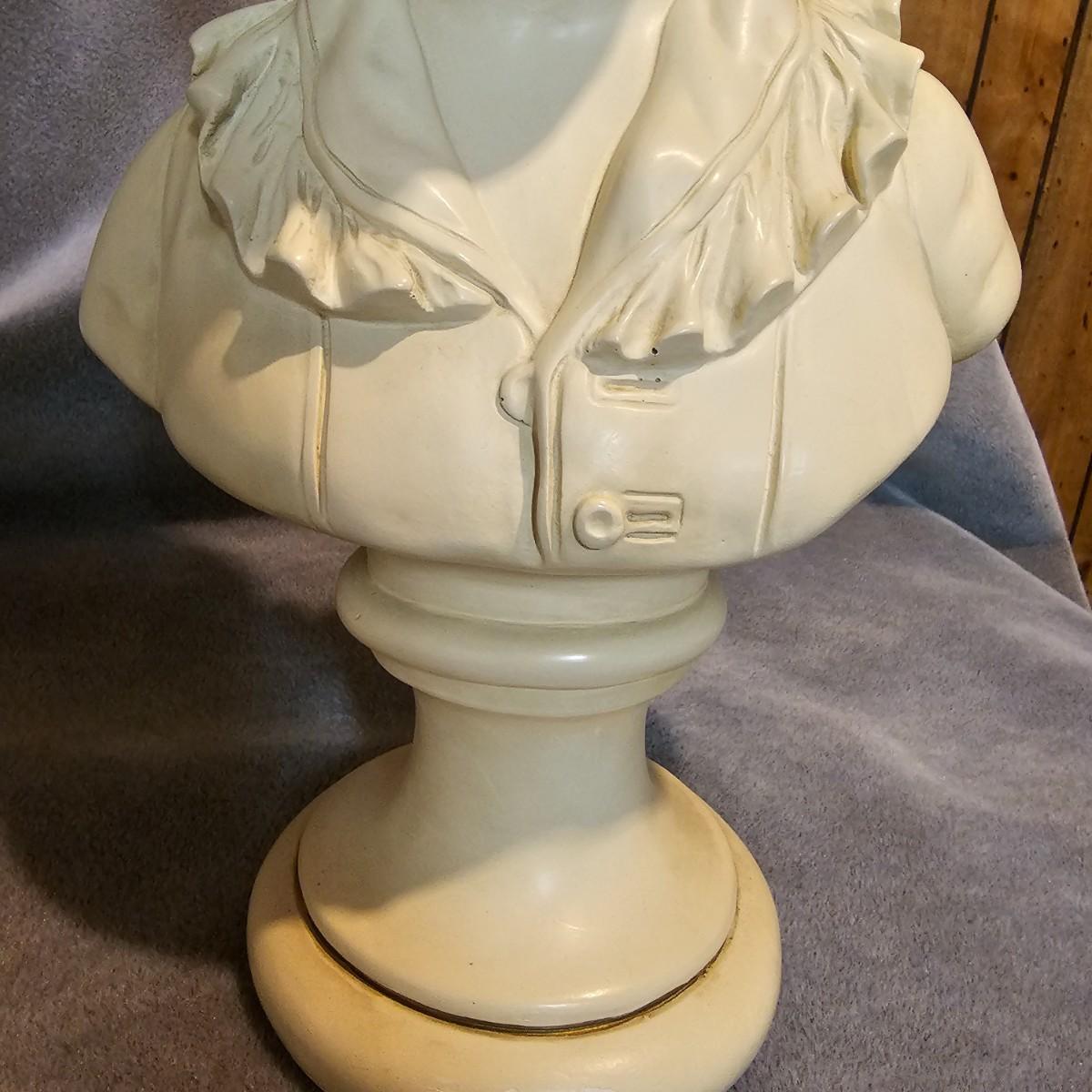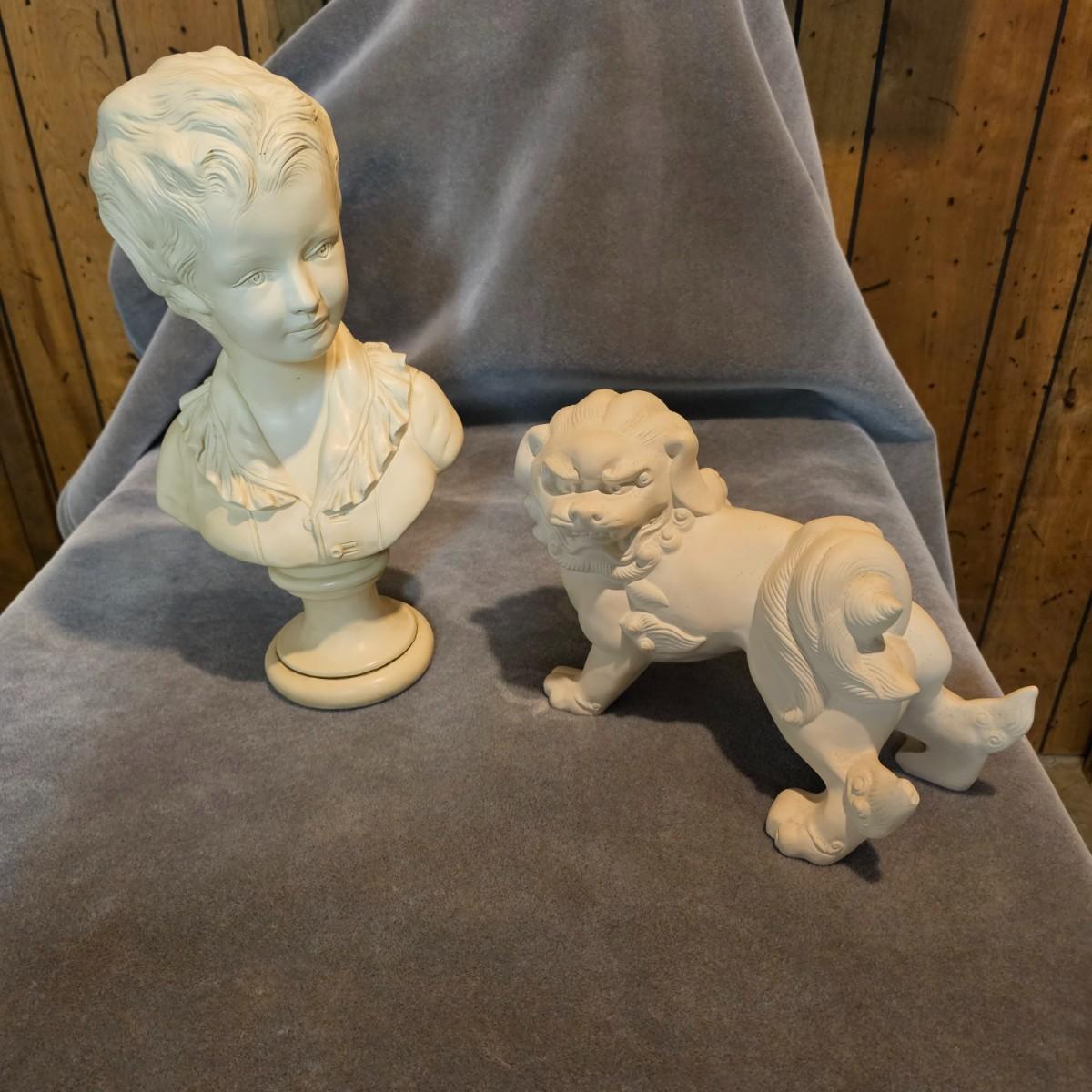 Alexander Backer stamped bust appears to be Chalkware measuring 9" x 16"H. Lot also contains a Chinese foo- dog figure that measures 13" x 9"H. Dog figure is basic plaster cast, ready to be glazed and fired. See photos for details. Shipping available.
