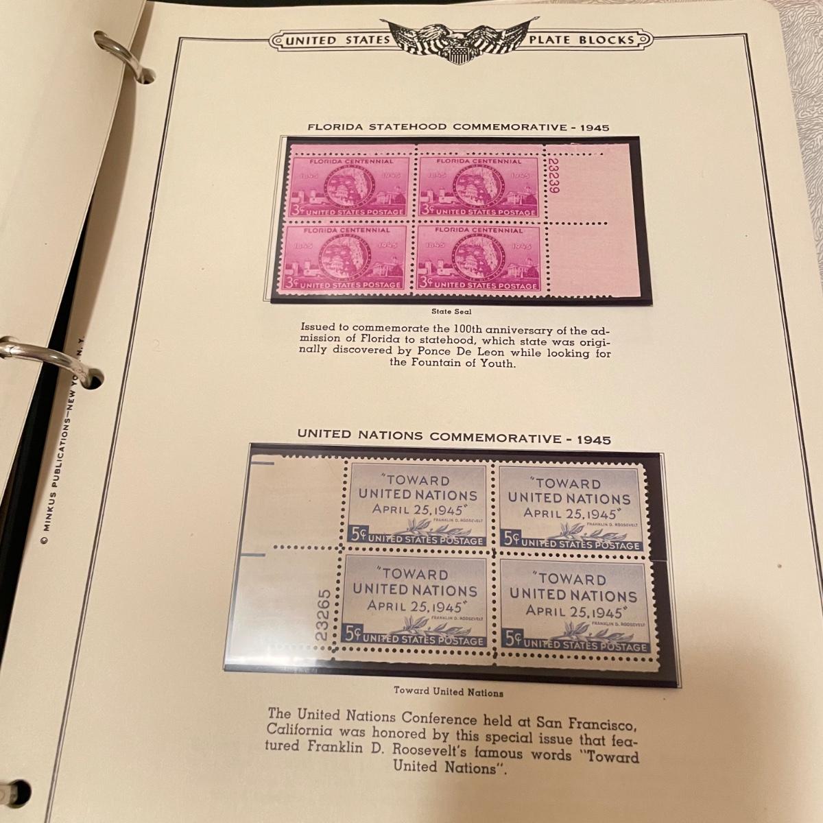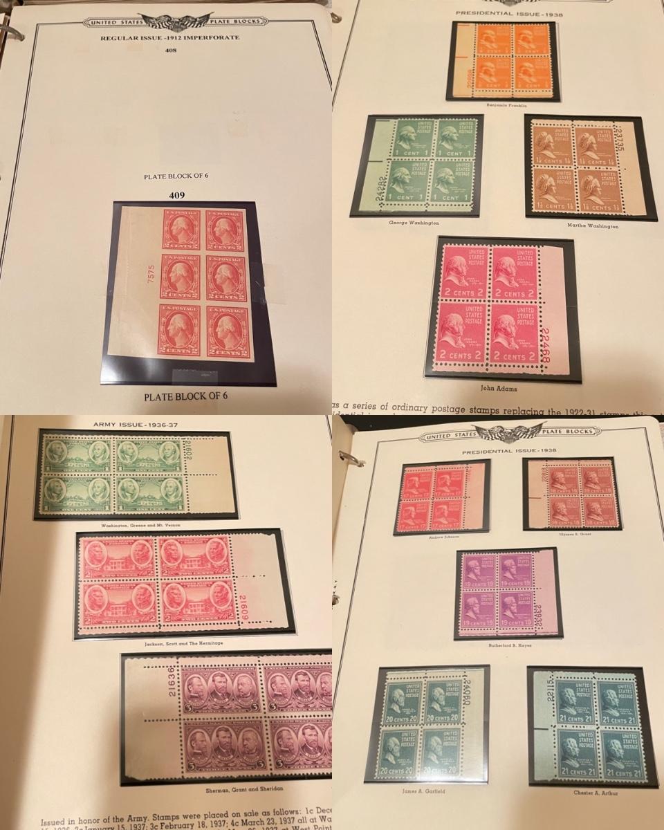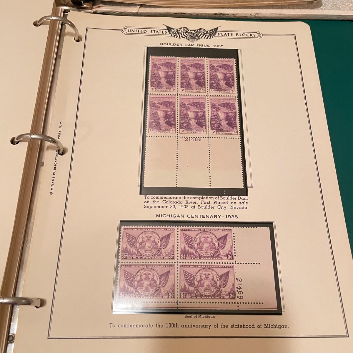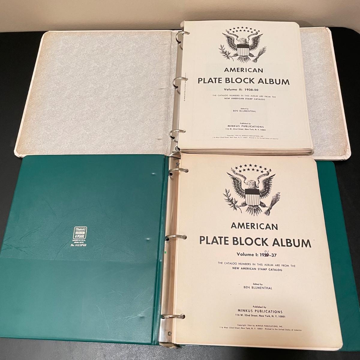 Two plate block albums with dates likely ranging from 1912-1949. The first album is mostly empty until around 1929, 1930-1949 is mostly full. Stamps appear well cared for. See images All sales are final. No returns or refunds. Please bid accordingly. Shipping available.