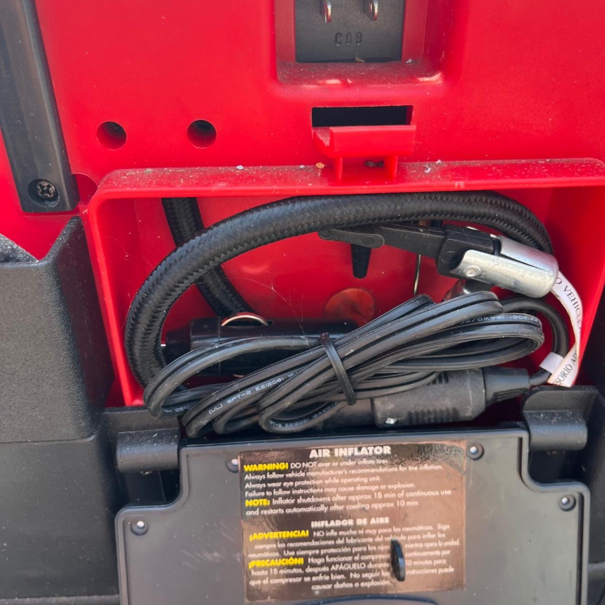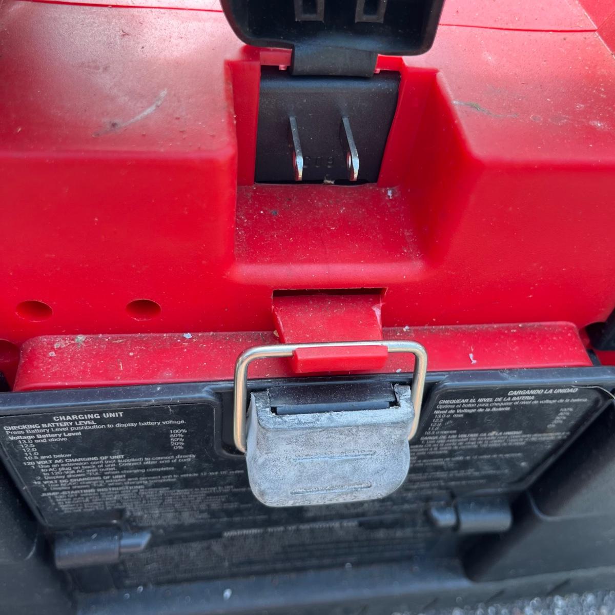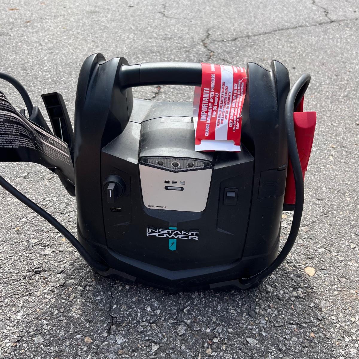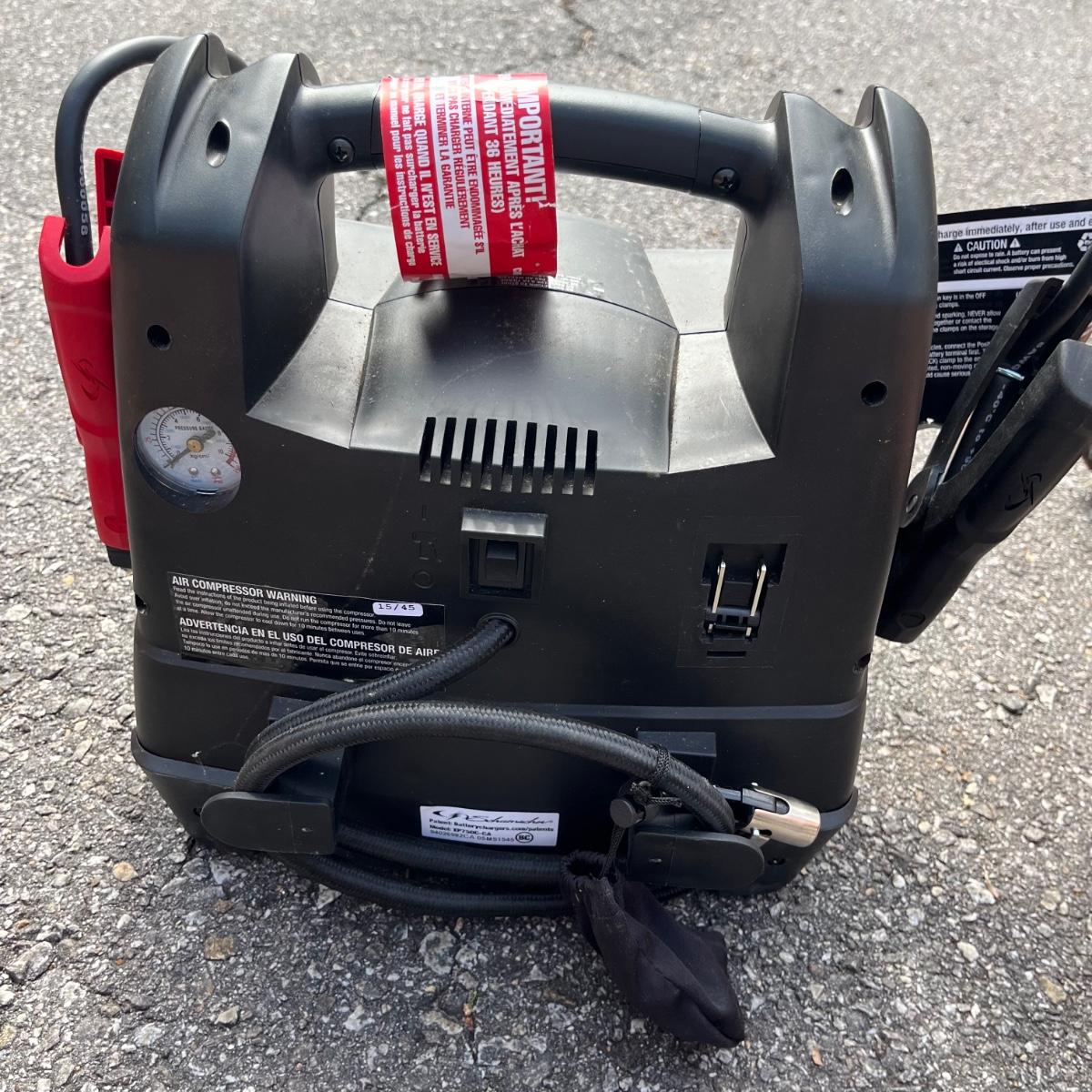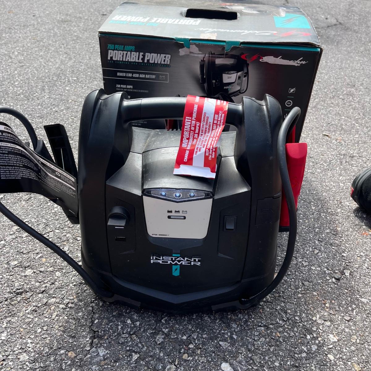 Lot includes a Schumacher portable power system and a Husky portable power system. Both systems powered on when plugged in.
