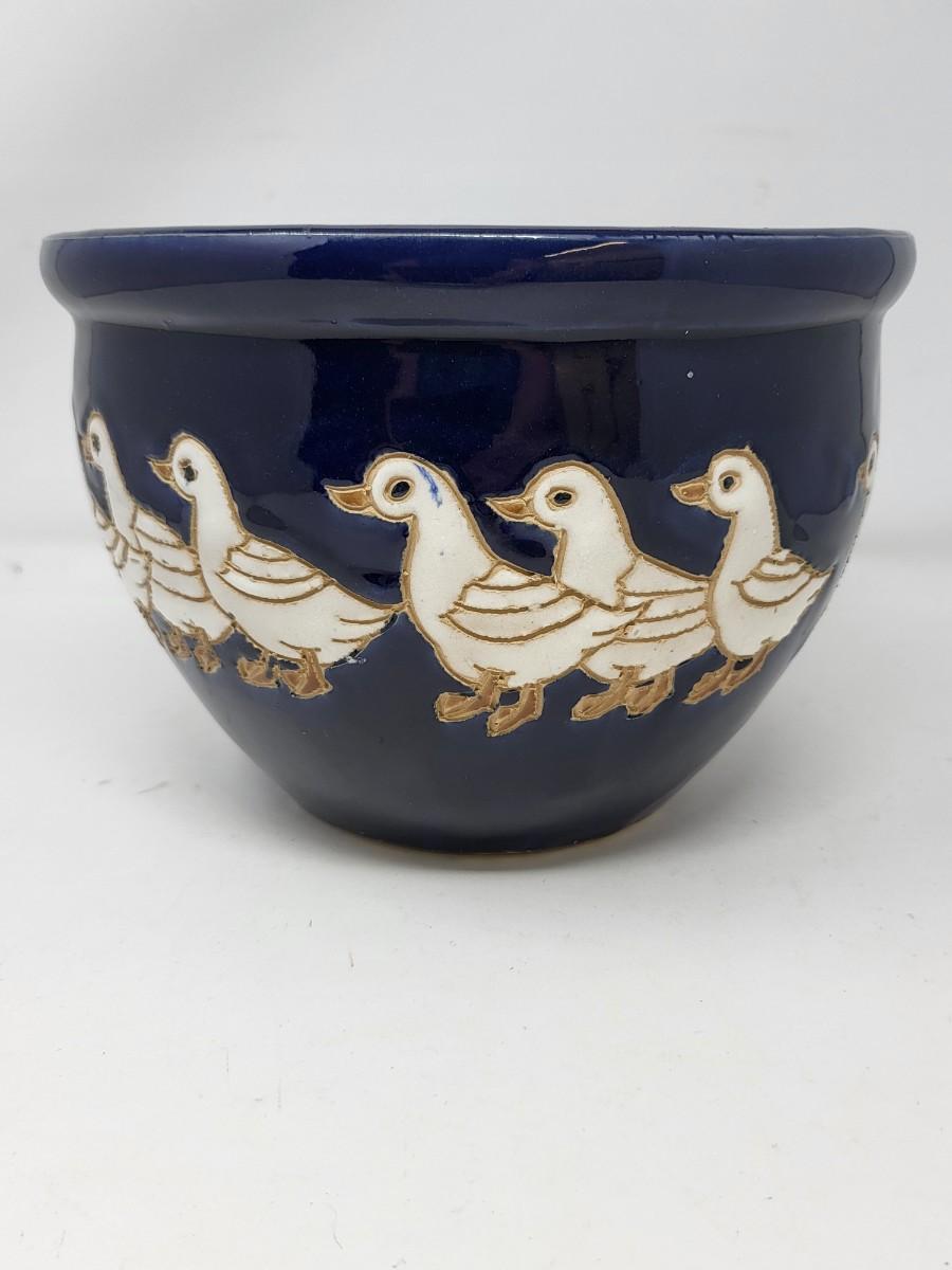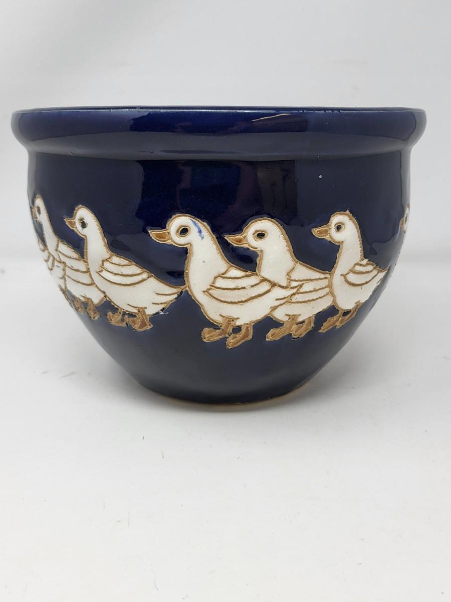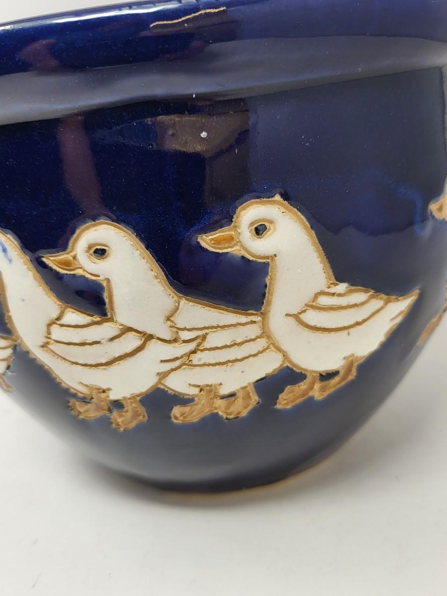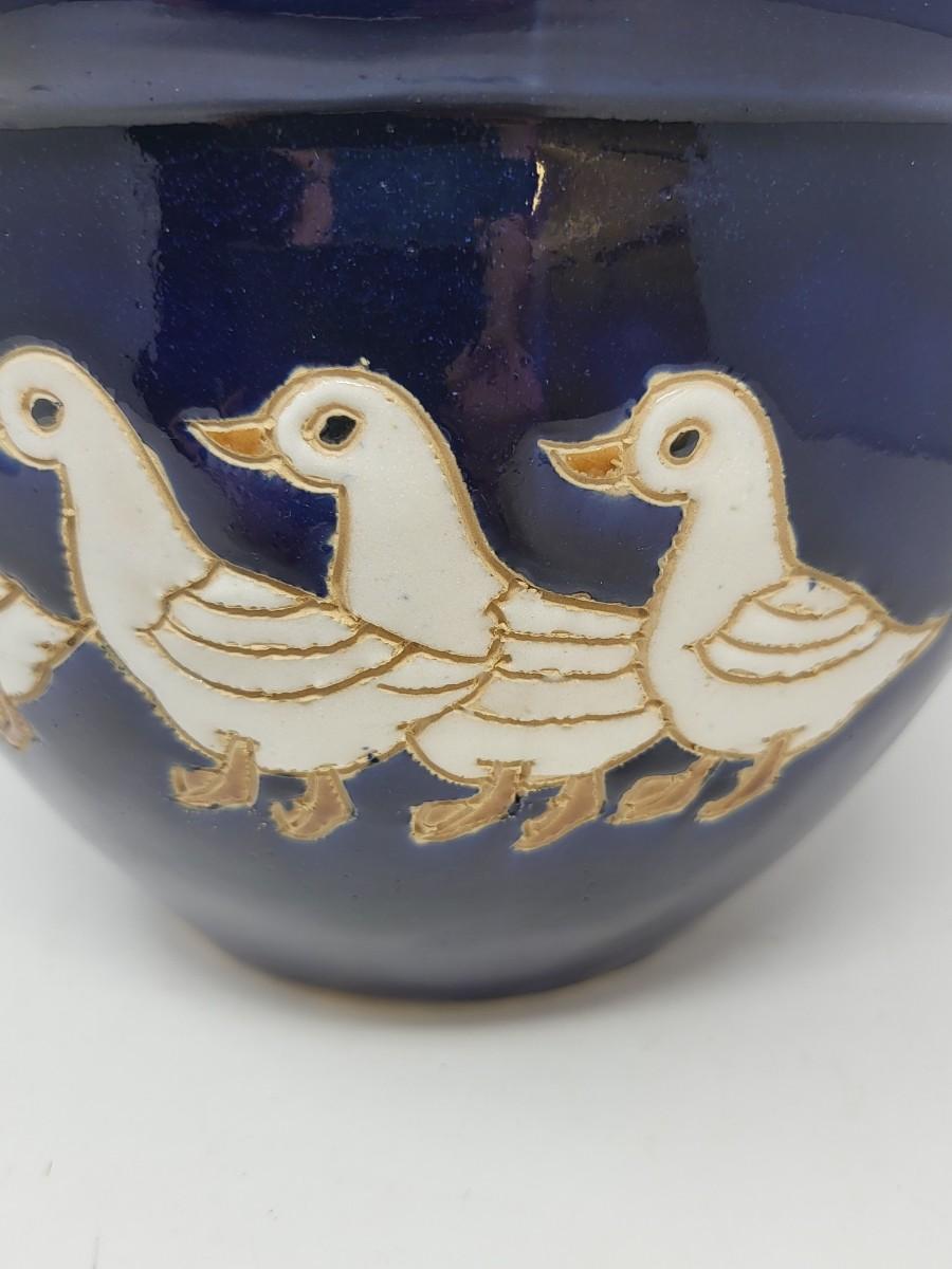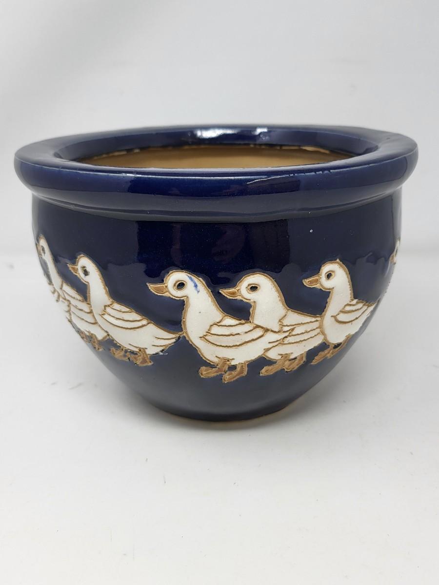 Blue glaze with ducks pot 9" wide x 6.5" tall