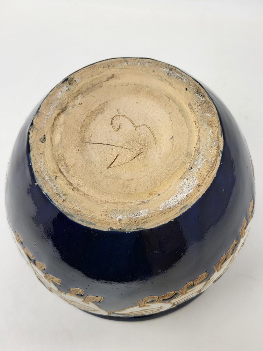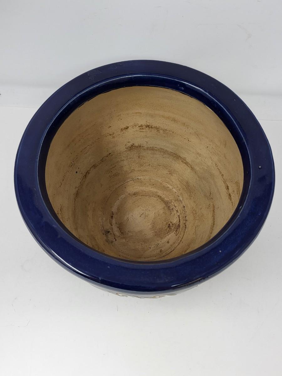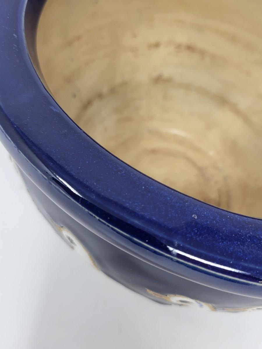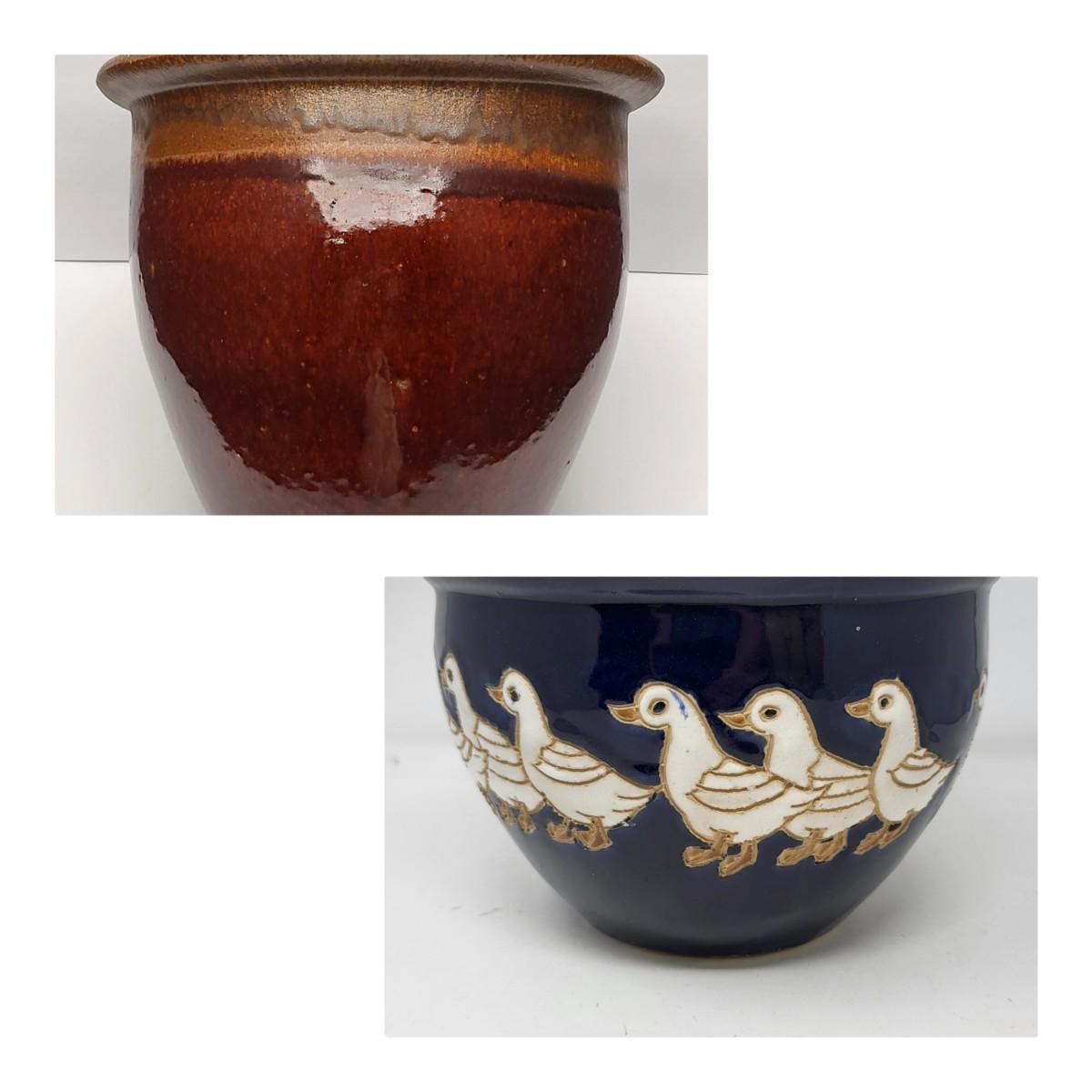 Blue glaze with ducks pot 9" wide x 6.5" tall