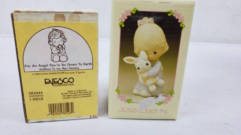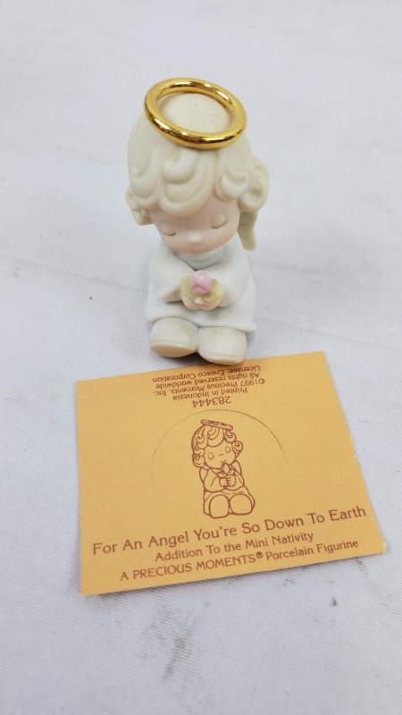 Two Precious Moments Statues "Jesus Loves Me" & "For An Angel You're So Down To Earth" Mini Nativity, with Box