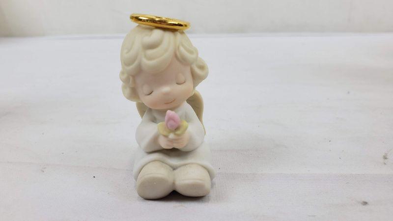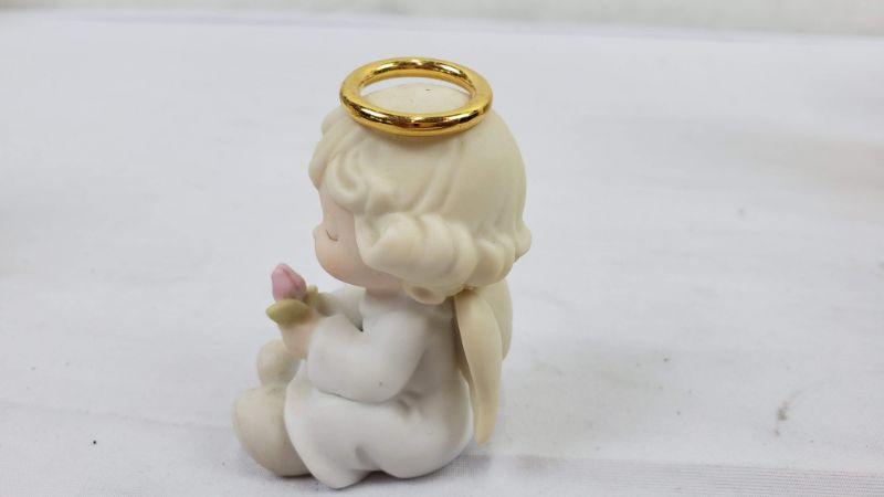Two Precious Moments Statues "Jesus Loves Me" & "For An Angel..." Mini Nativity