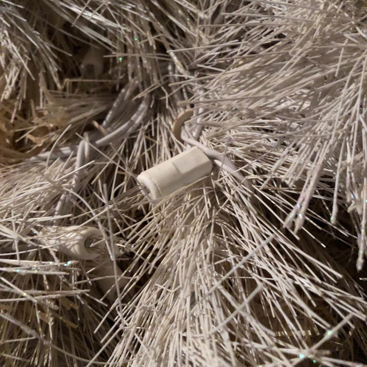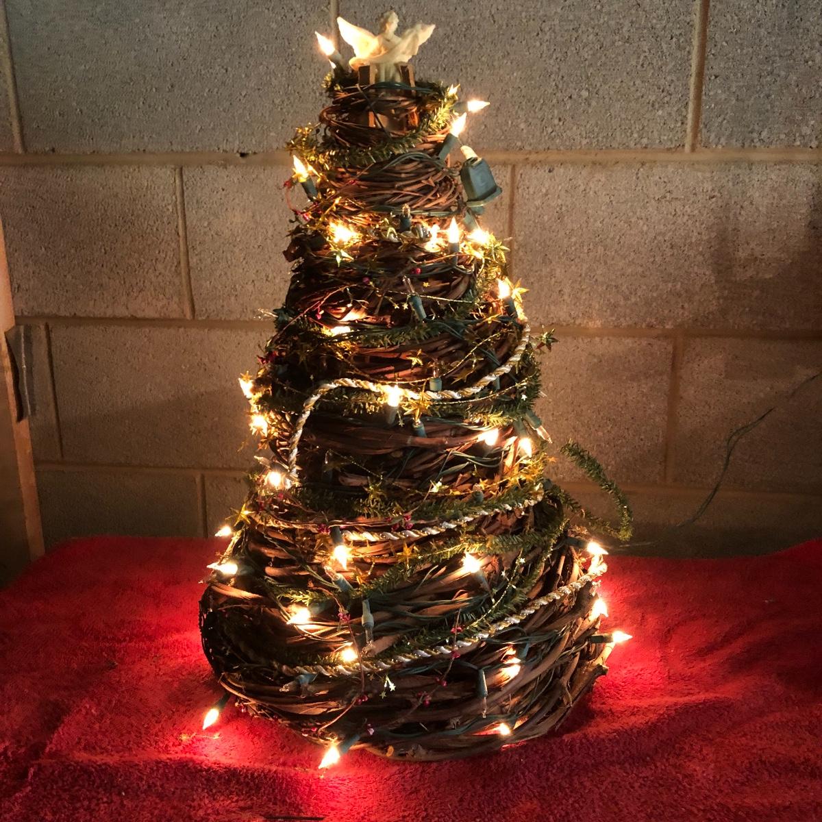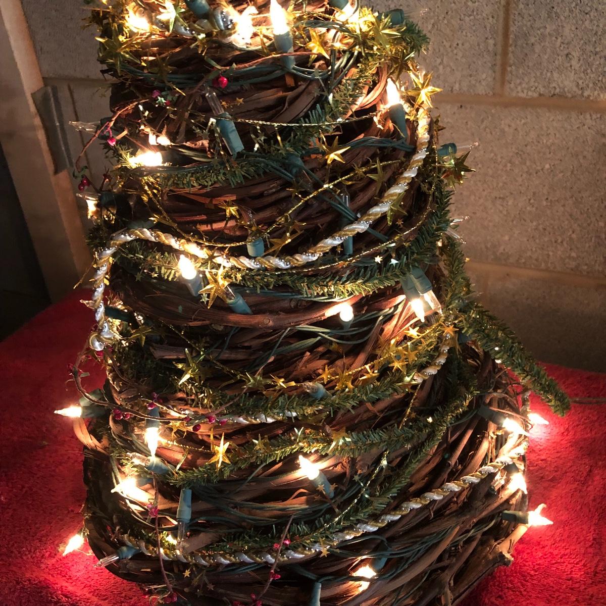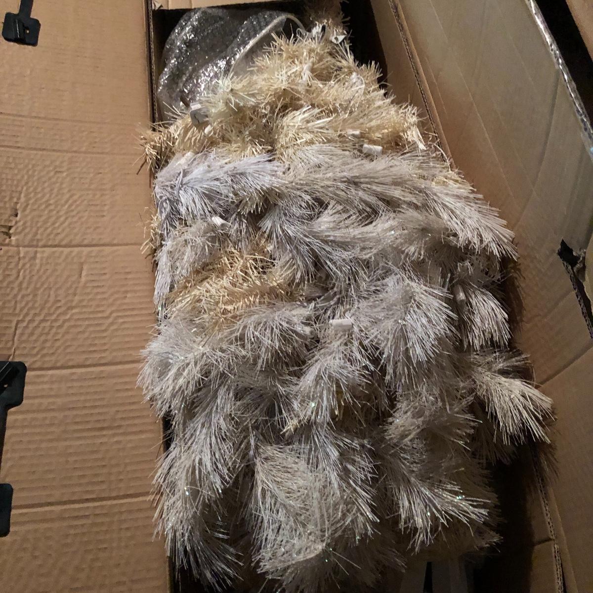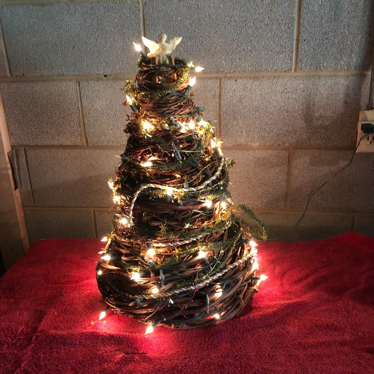 The wooden pre-lit tree is about 22” tall. It lights up when plugged in and is made of wood and twigs. The Jaclyn Smith tree is "clear" color, 7’ tall and pre-lit however was not tested nor assembled. Local pick up only.