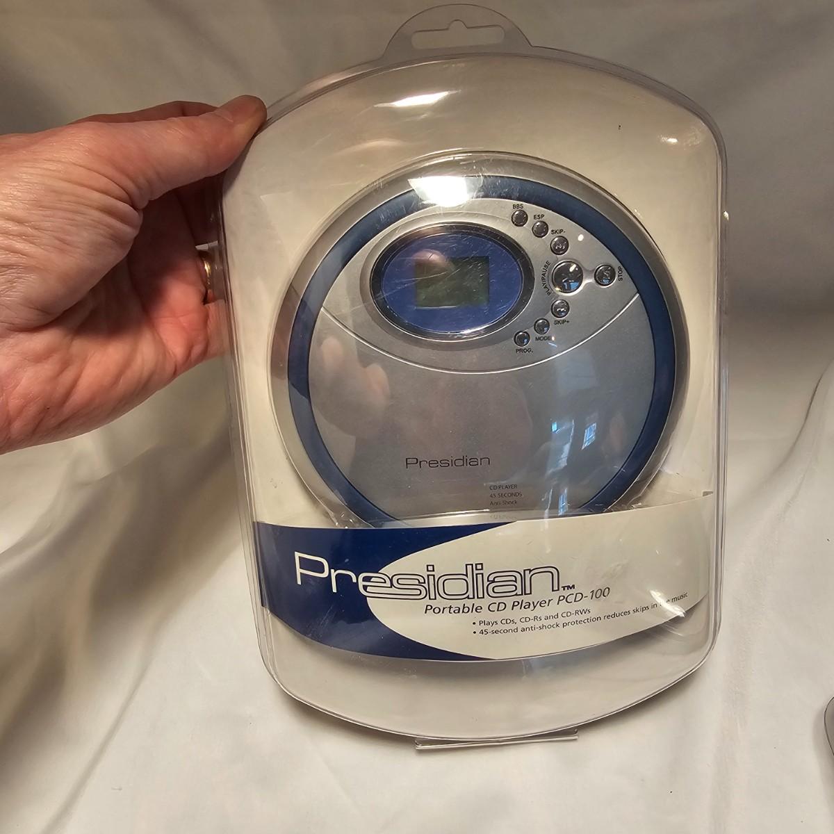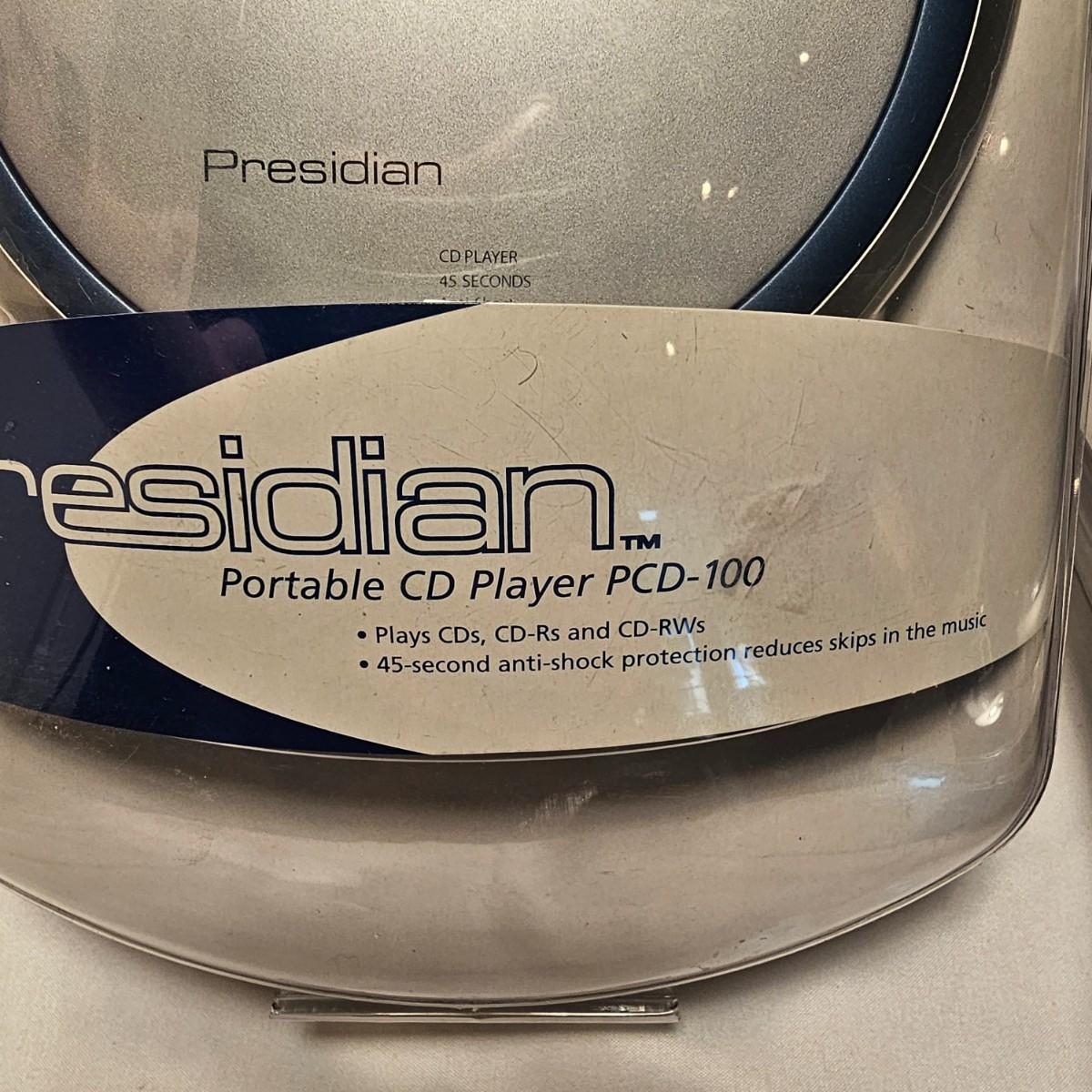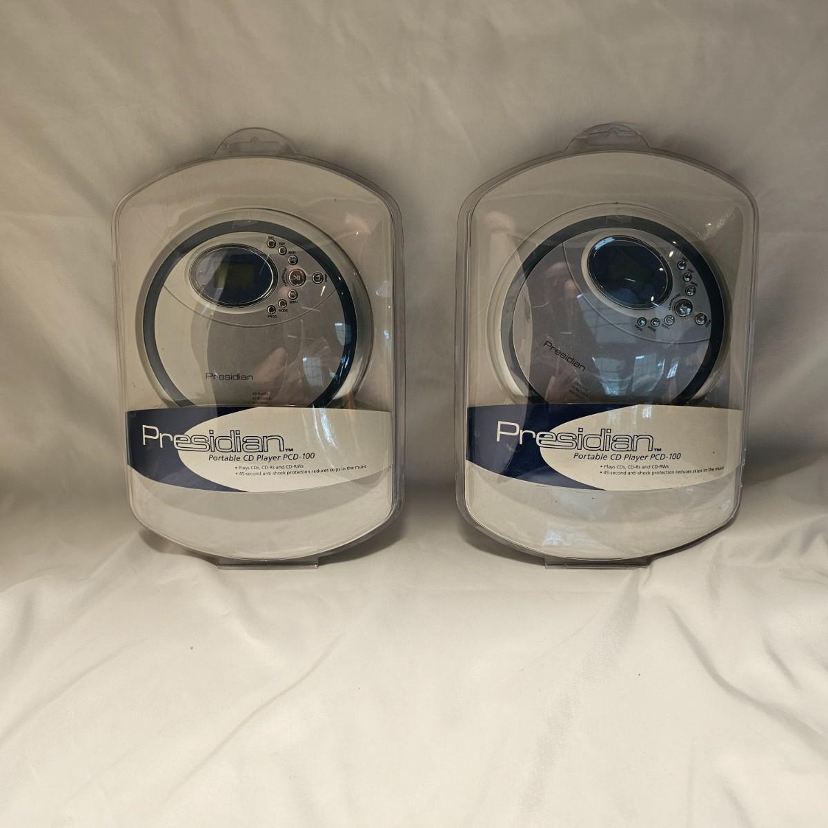 A pair of personal CD players with headphones. Presidian brand, both in original packages. Battery or adapter powered, not included. Items not tested. See photos for details. Shipping available.