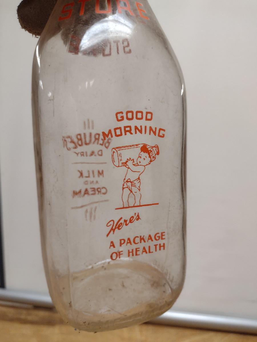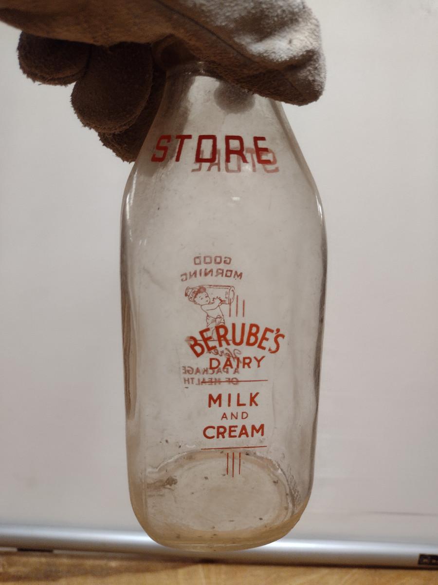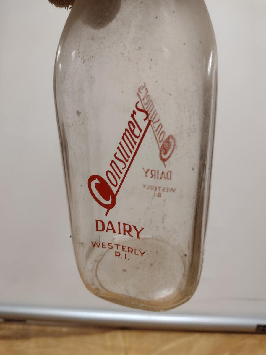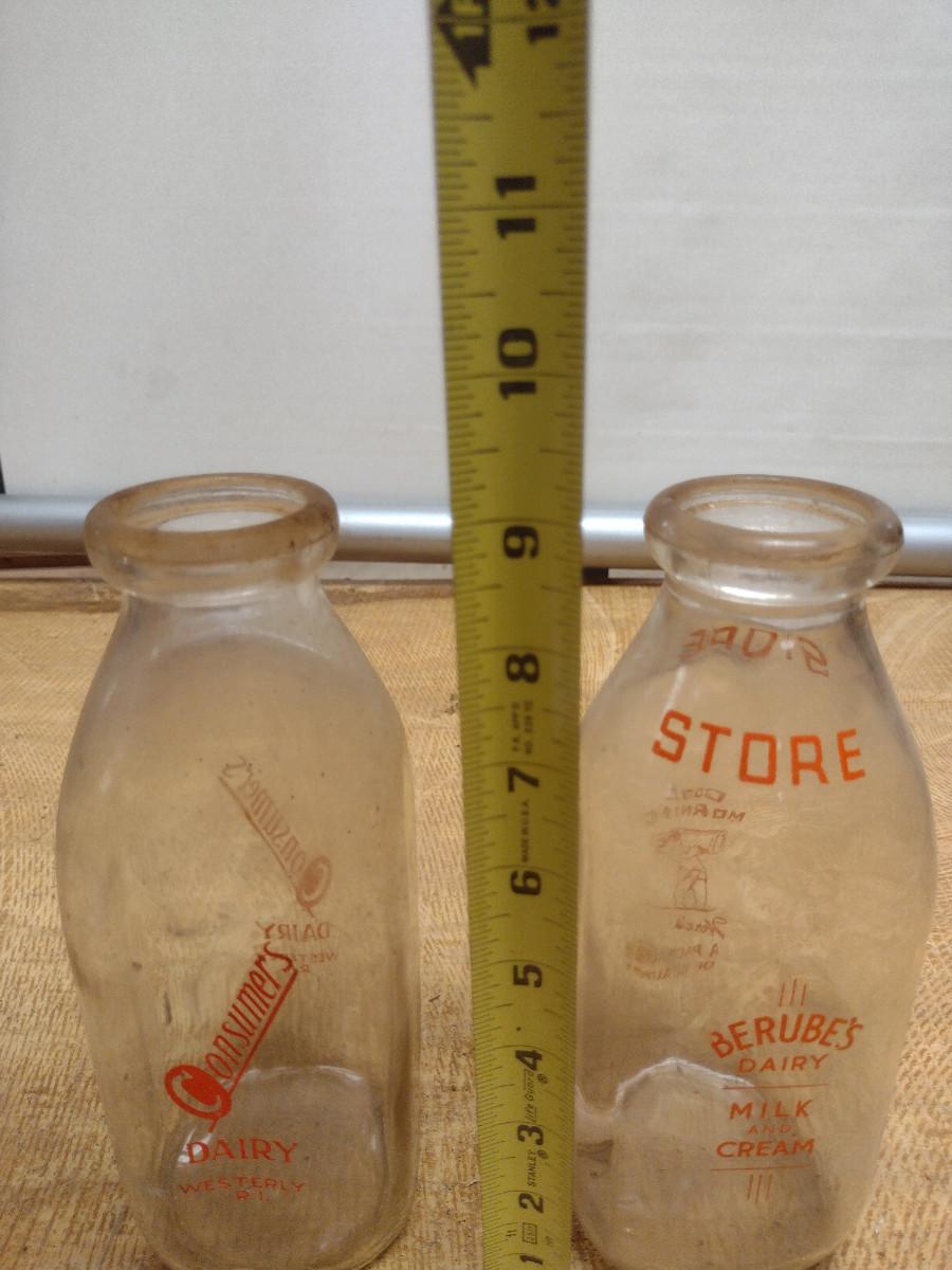 Two Quart Size Painted Milk Bottles (#6). Stored in non-climatized basement so expect item may need to be cleaned from dust, insects, etc. Shipped in as is condition