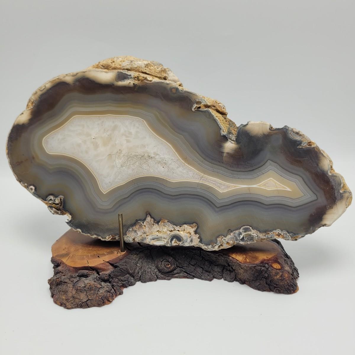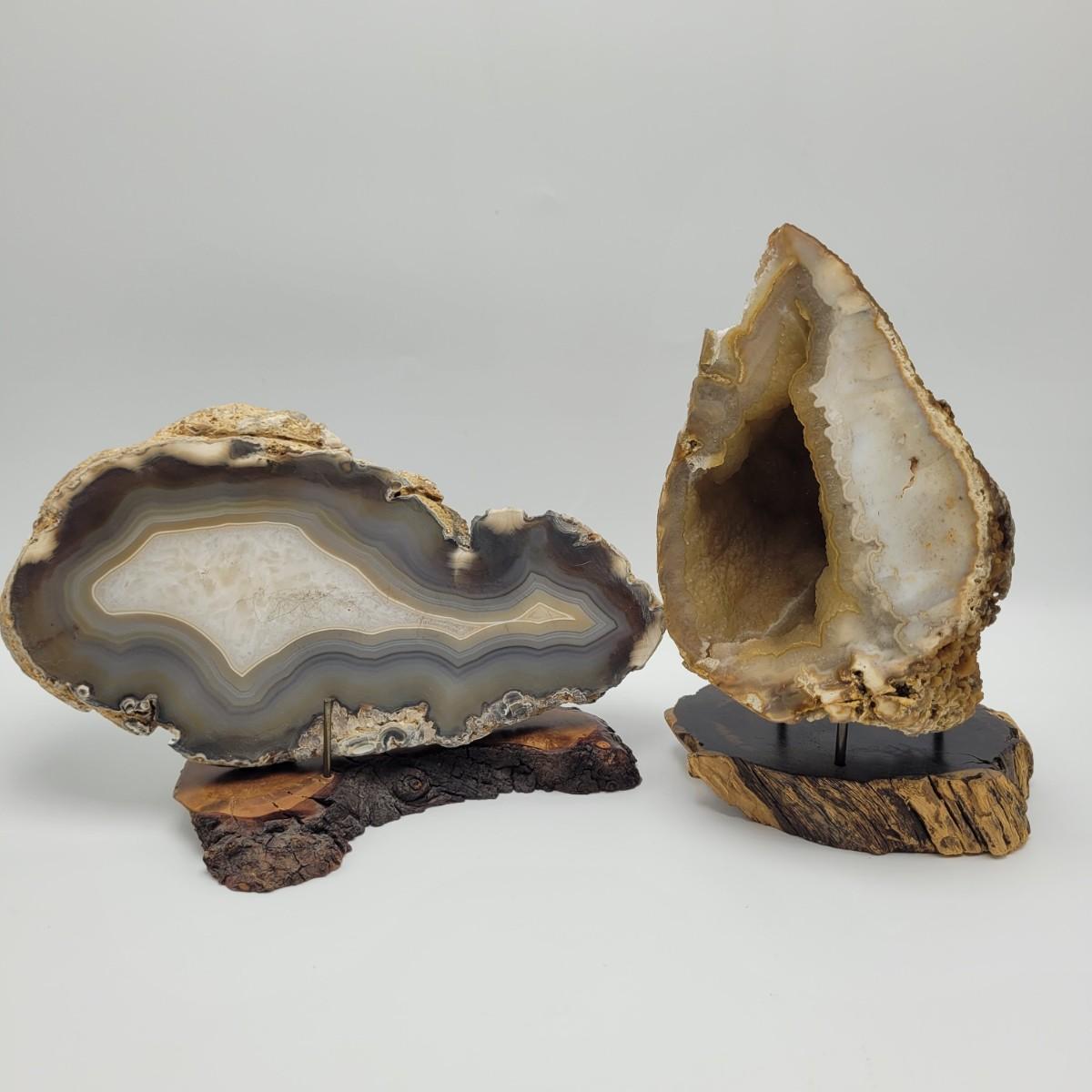 Two Quartz Agate in Wooden Displays (B2-EL)