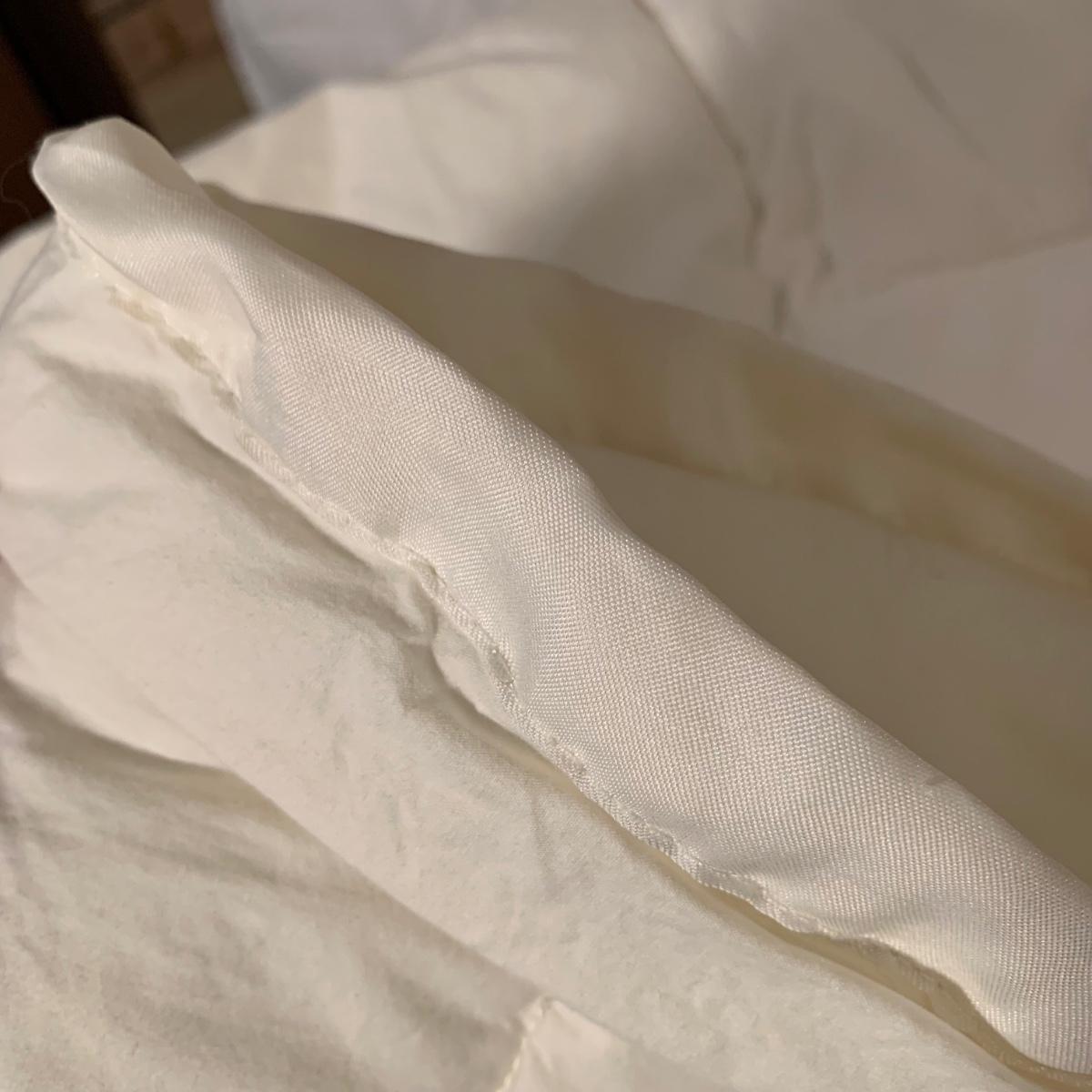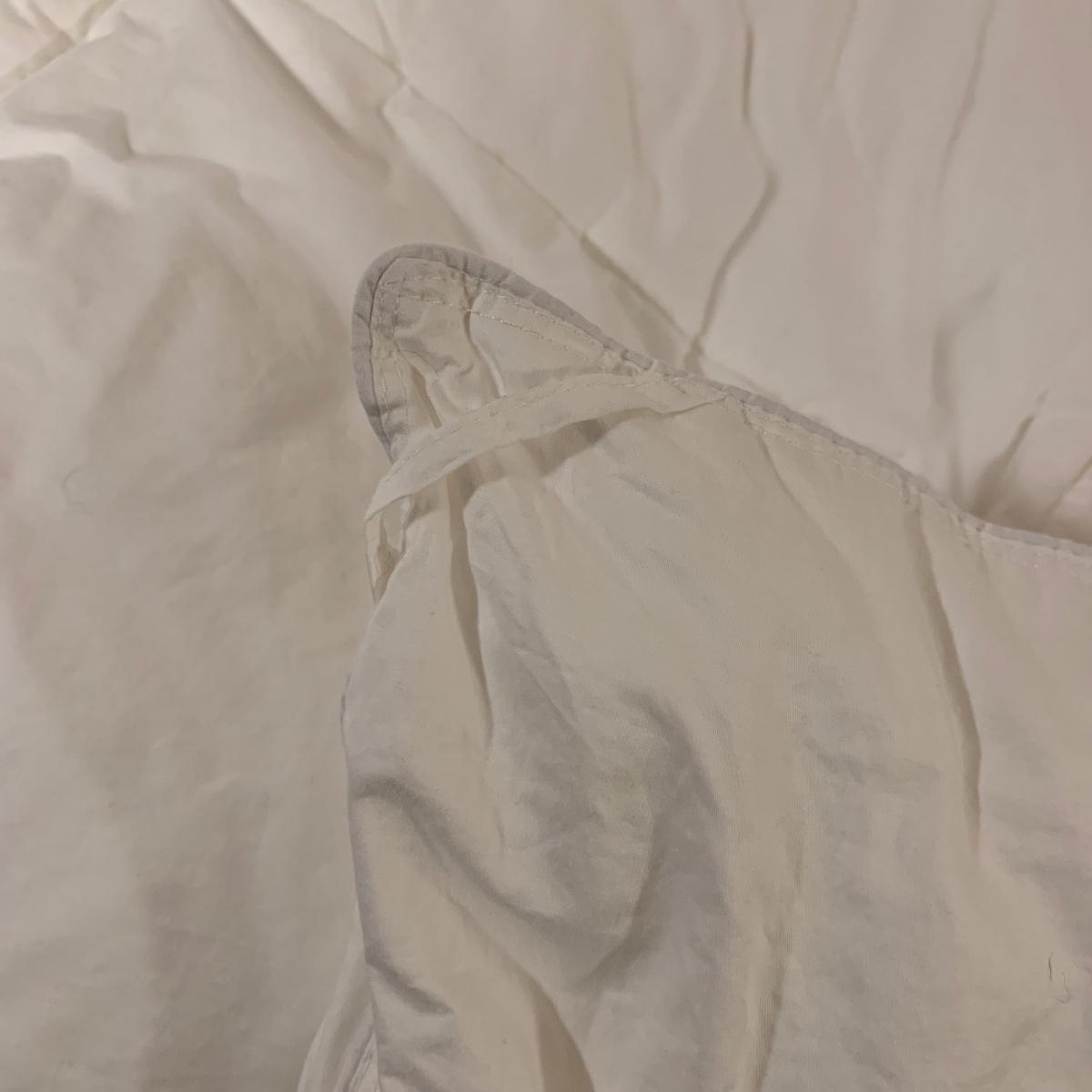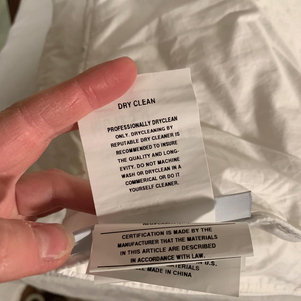 Set of two Queen size PrimaLoft alternative down duvets/comforters from The Company Store. One comes in a fabric storage bag. One is white and one is ivory. The white one has corner loops. The ivory has sateen edges.