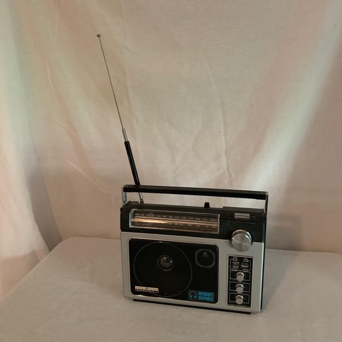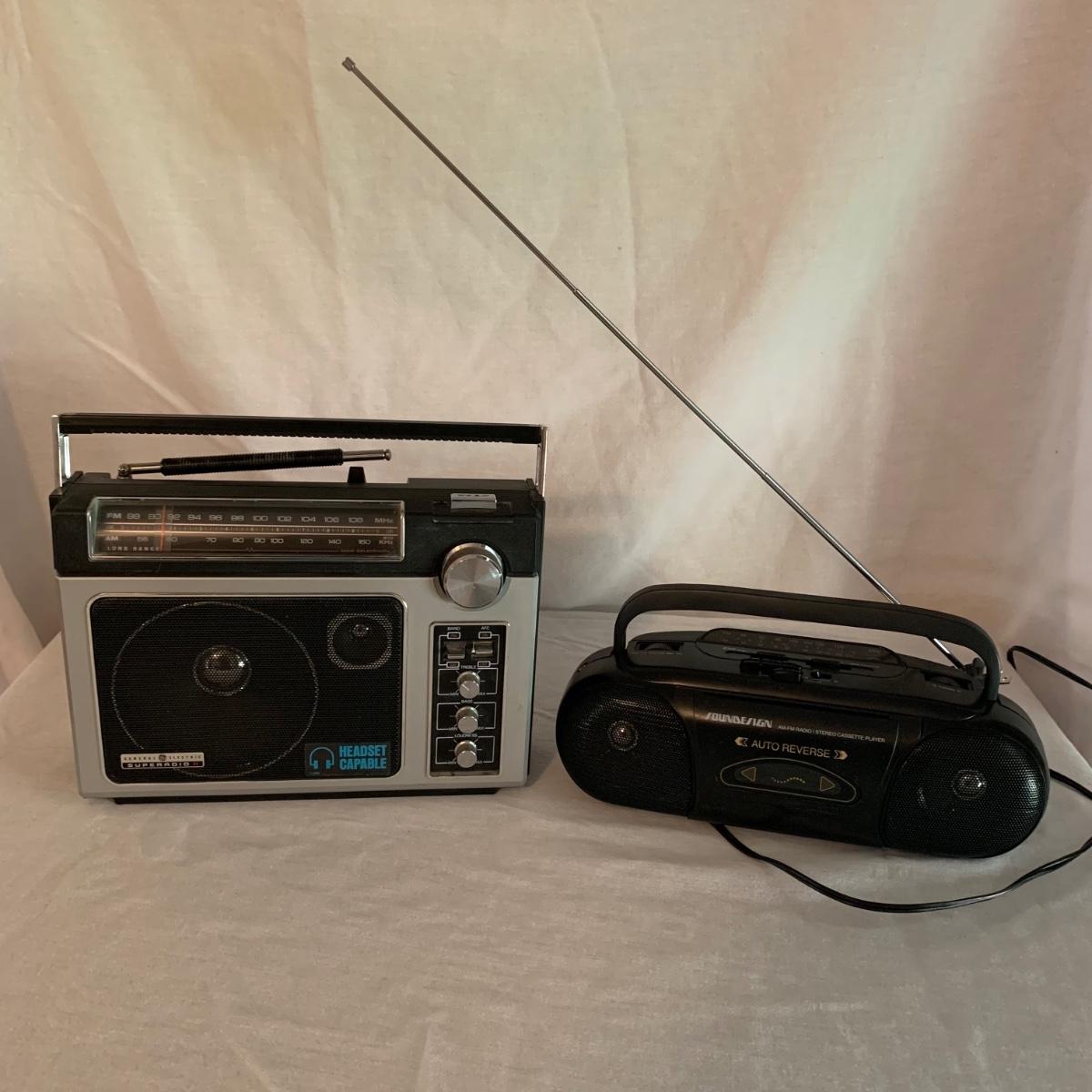 This lot includes two radios. One is a General Electric Superadio, Model No. 7-2885D. The other is a Soundesign AM-FM Radio/Stereo Cassette Player. Both radios functioned when plugged in. They both have the option to be battery powered. The Soundesign is 13” long. The GE is 13” x 4” x 9”. Shipping available.