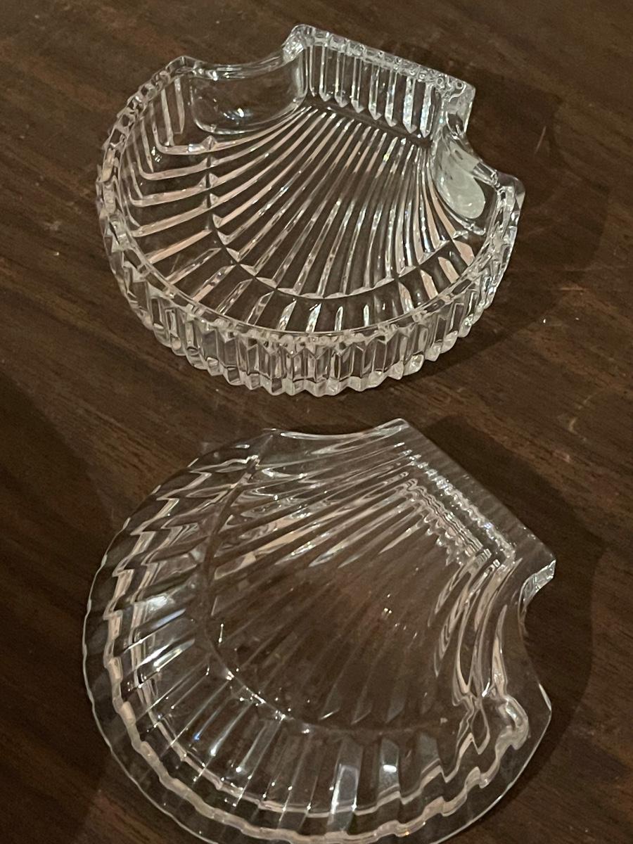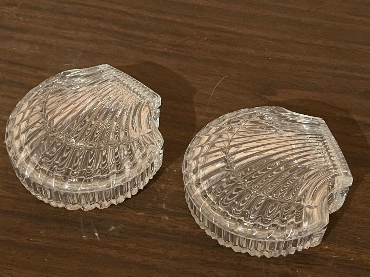 Two Rare Waterford Crystal Scallop Seashell Jewelry Trays with Lids