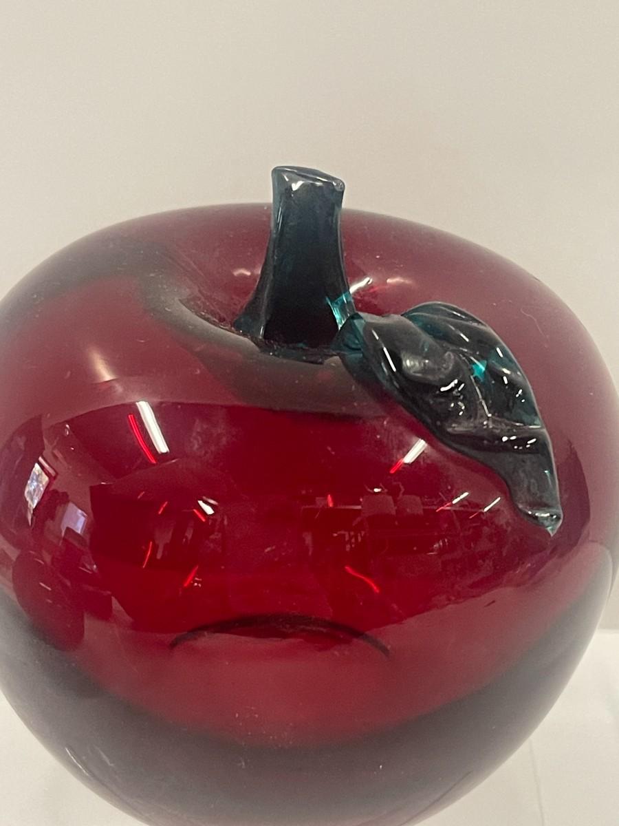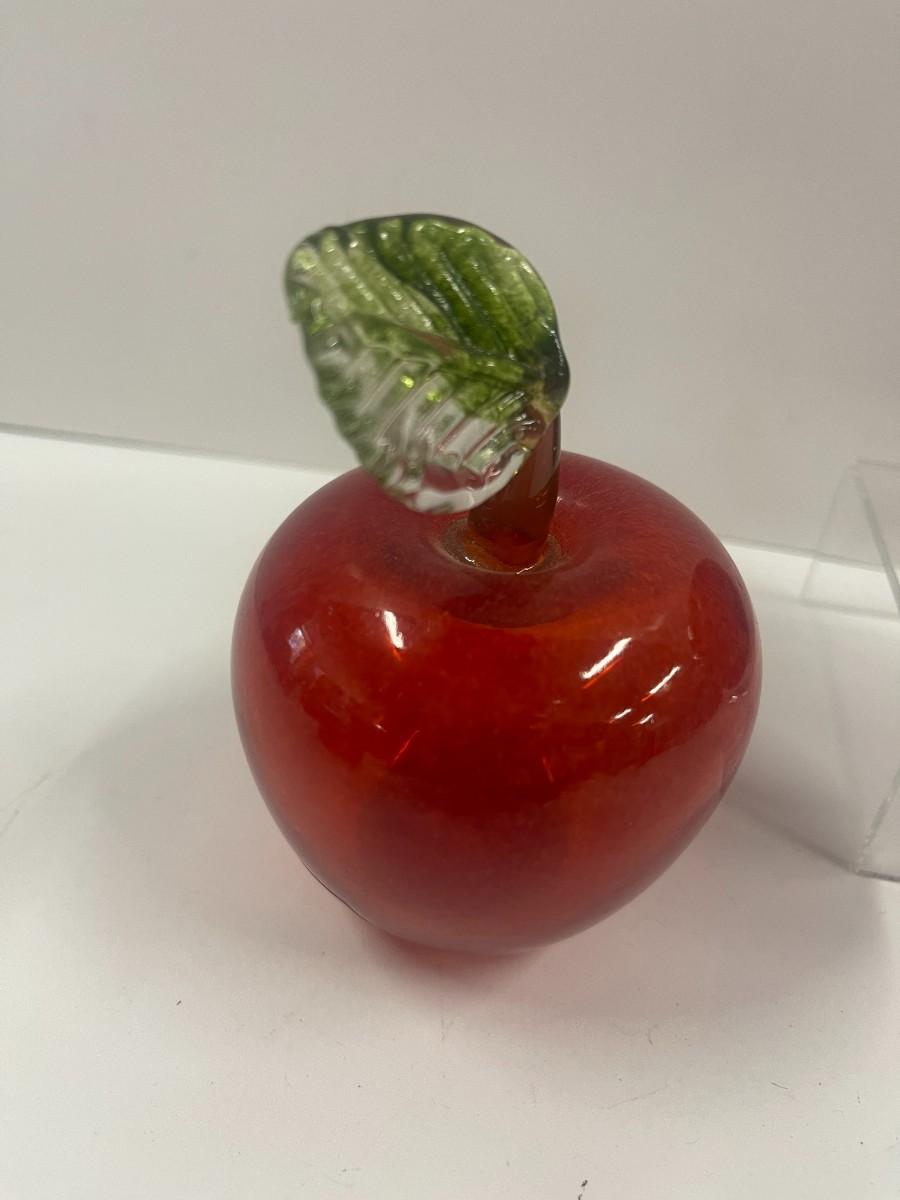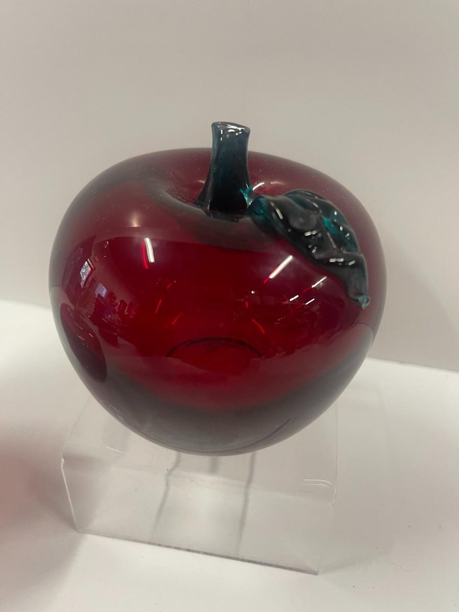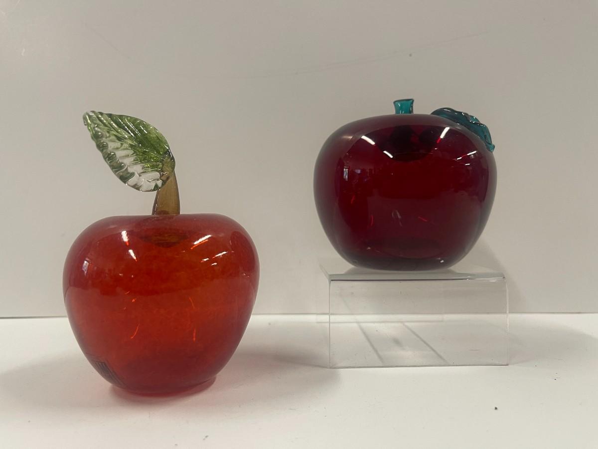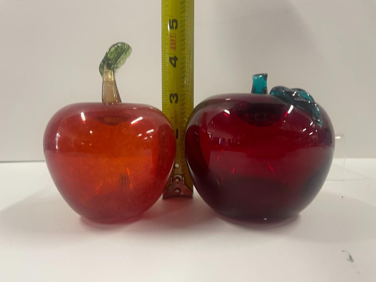Two Red Art Glass Apple Paperweights