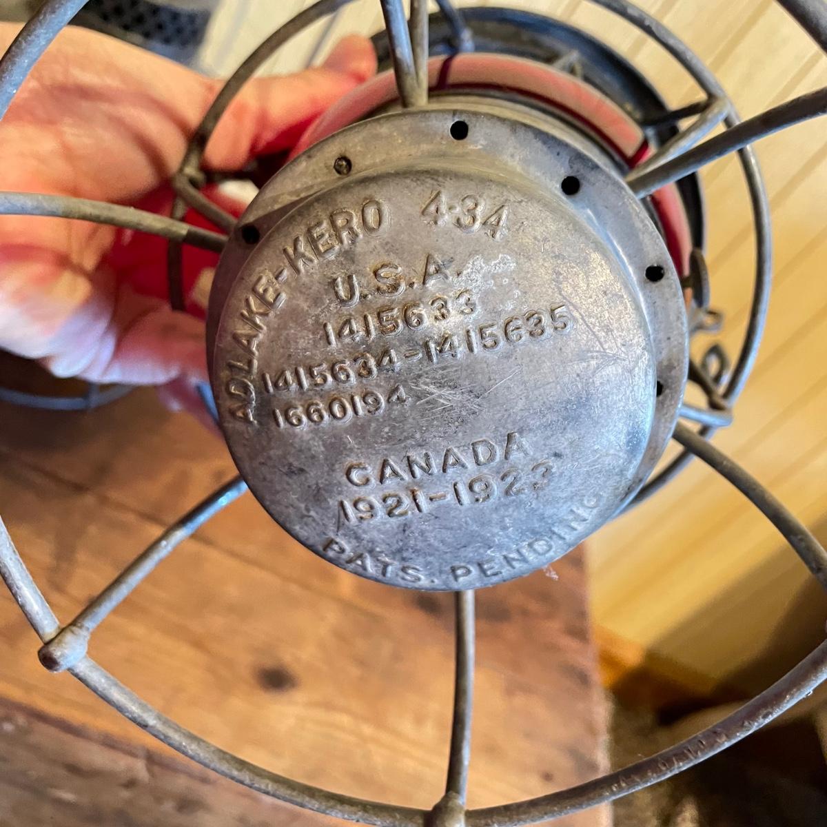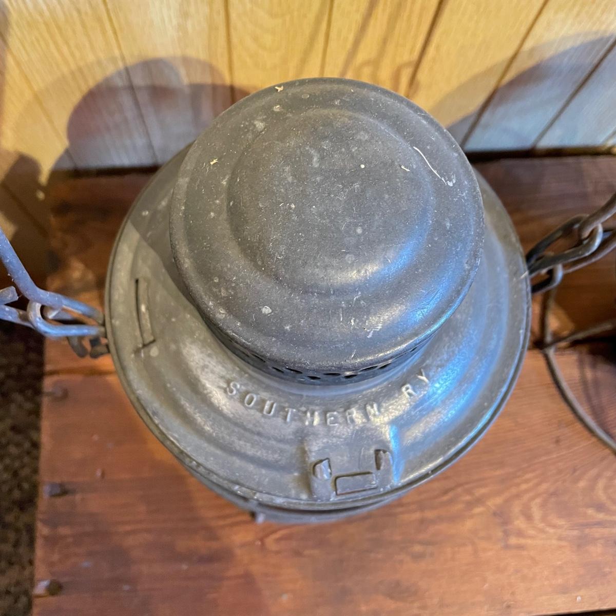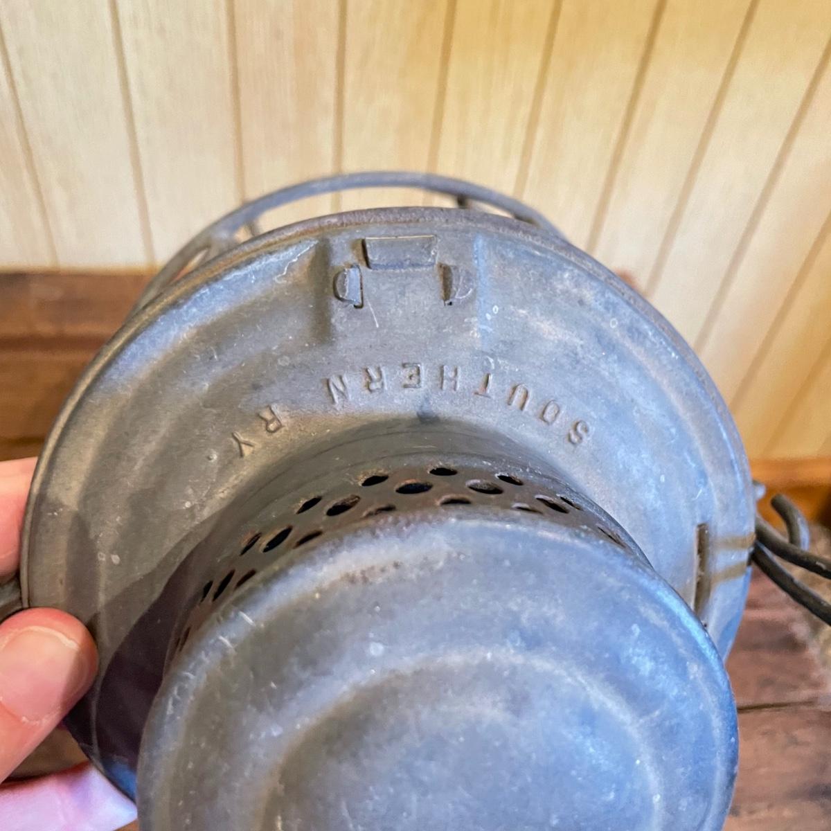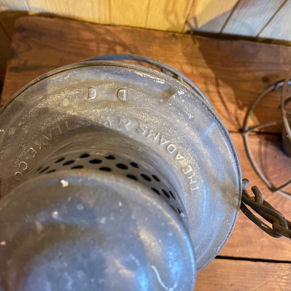 Two red globe lanterns by Adams & Westlake. Both lanterns are marked 1921-1923 Canada. The lantern on the right has Southern RY stamped on its globe. Both lanterns have a 6.5” diameter, the right’s handle is 16” high and the left is 14” high. See images. Shipping available.