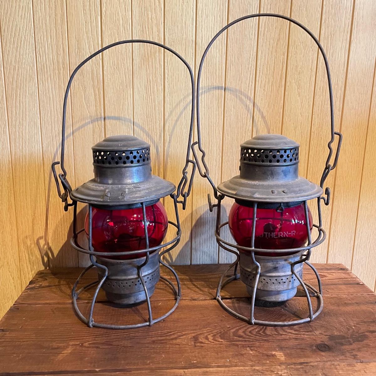 Two Red Globe Adams & Westlake Southern Railway Lanterns (FR - SS)