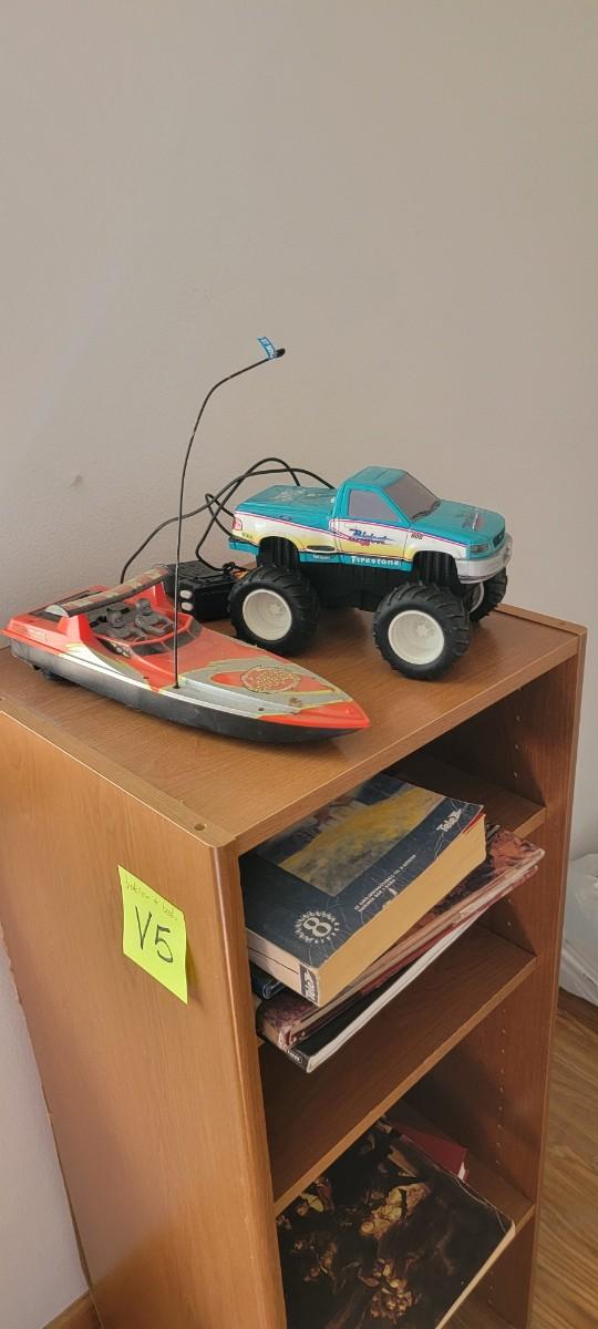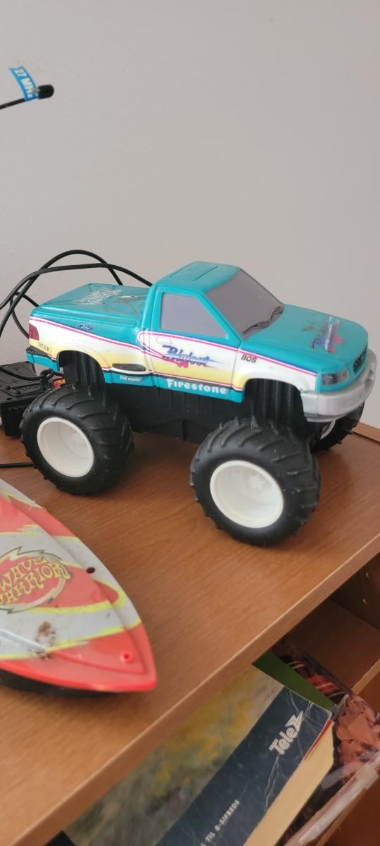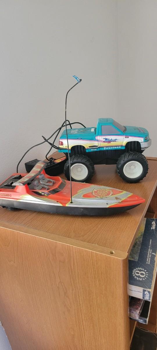 Remote control Wave Warrior boat missing remote. Firestone truck Big Foot truck.