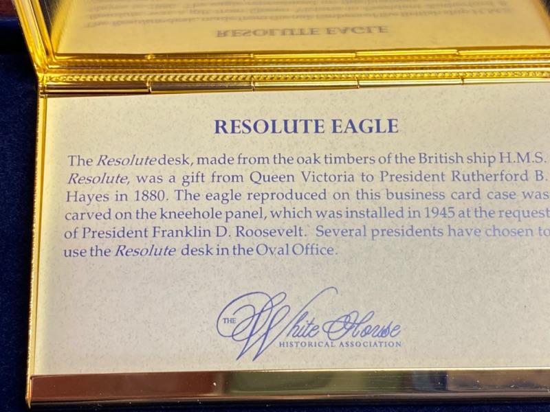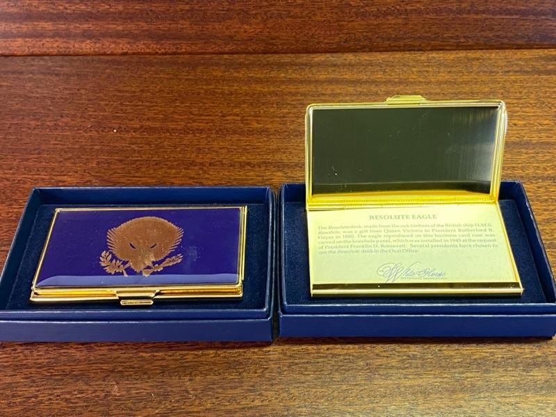 Perfect for the buisness person, two business card cases with the famous eagle carved on the Resolute desk.