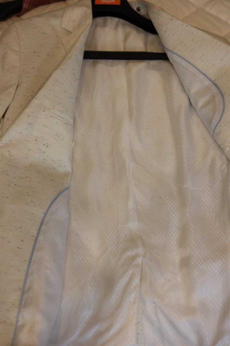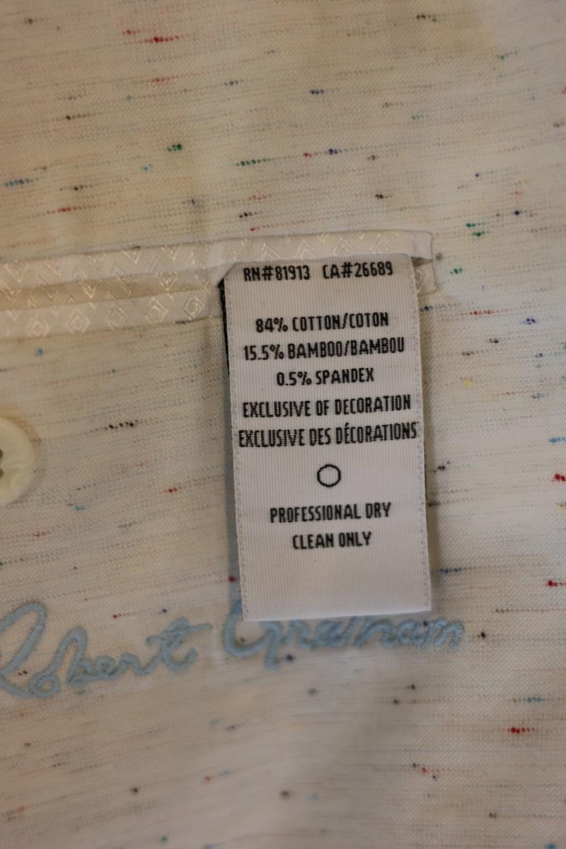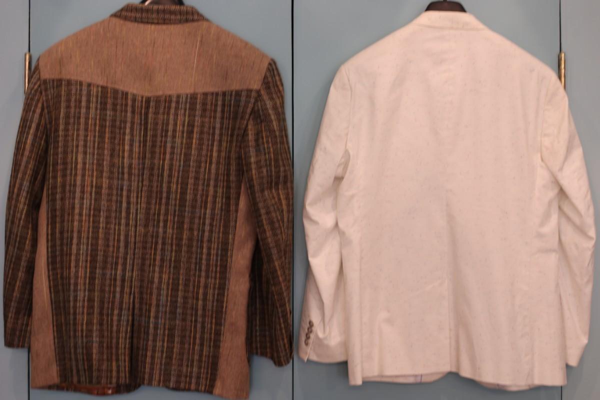 The white one has a little discolor in the inside of neck. Will need dry cleaning. The stripe is in perfect condition.
