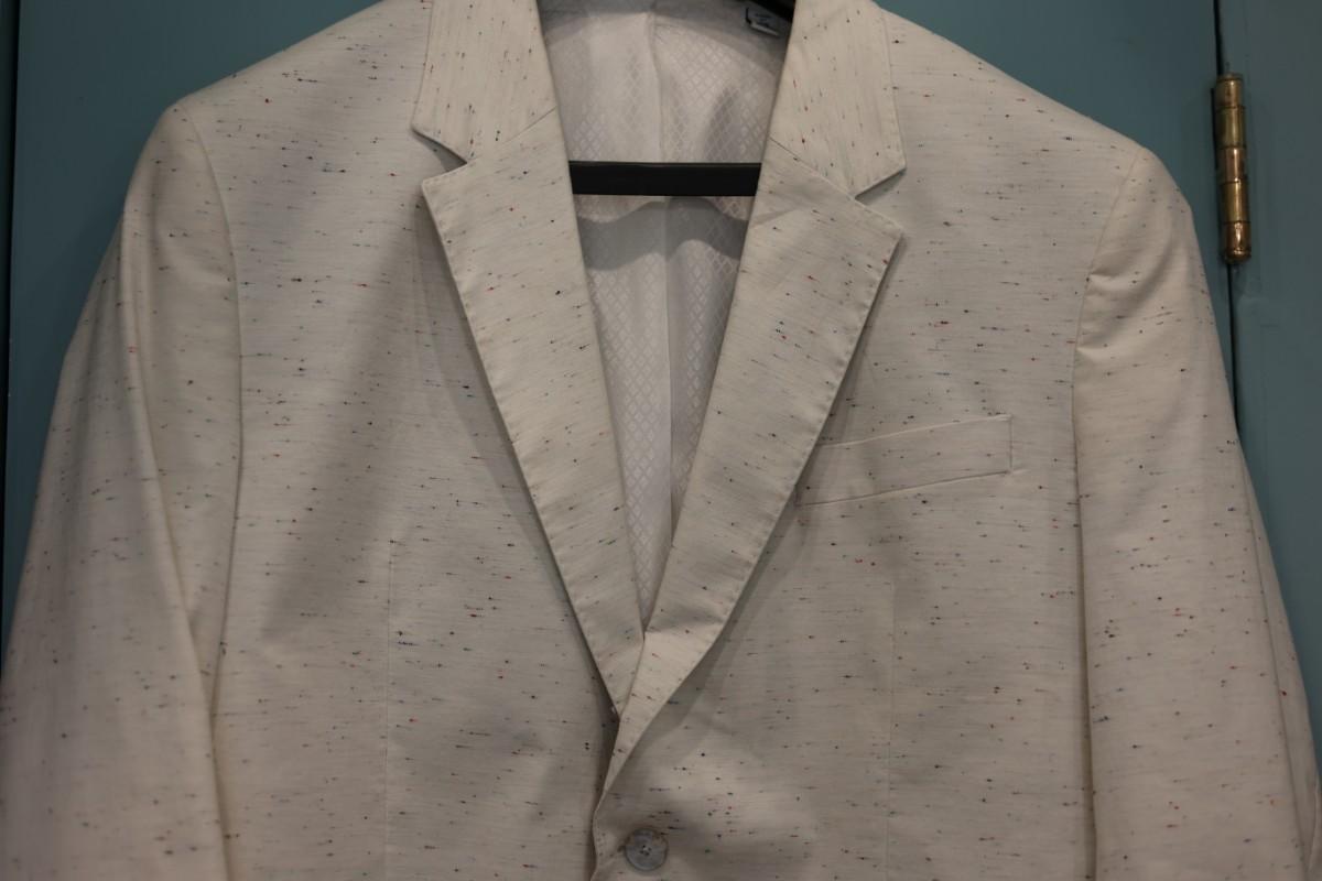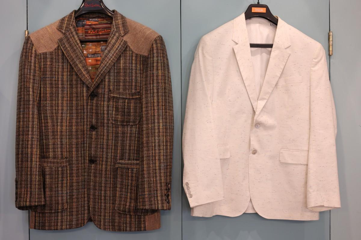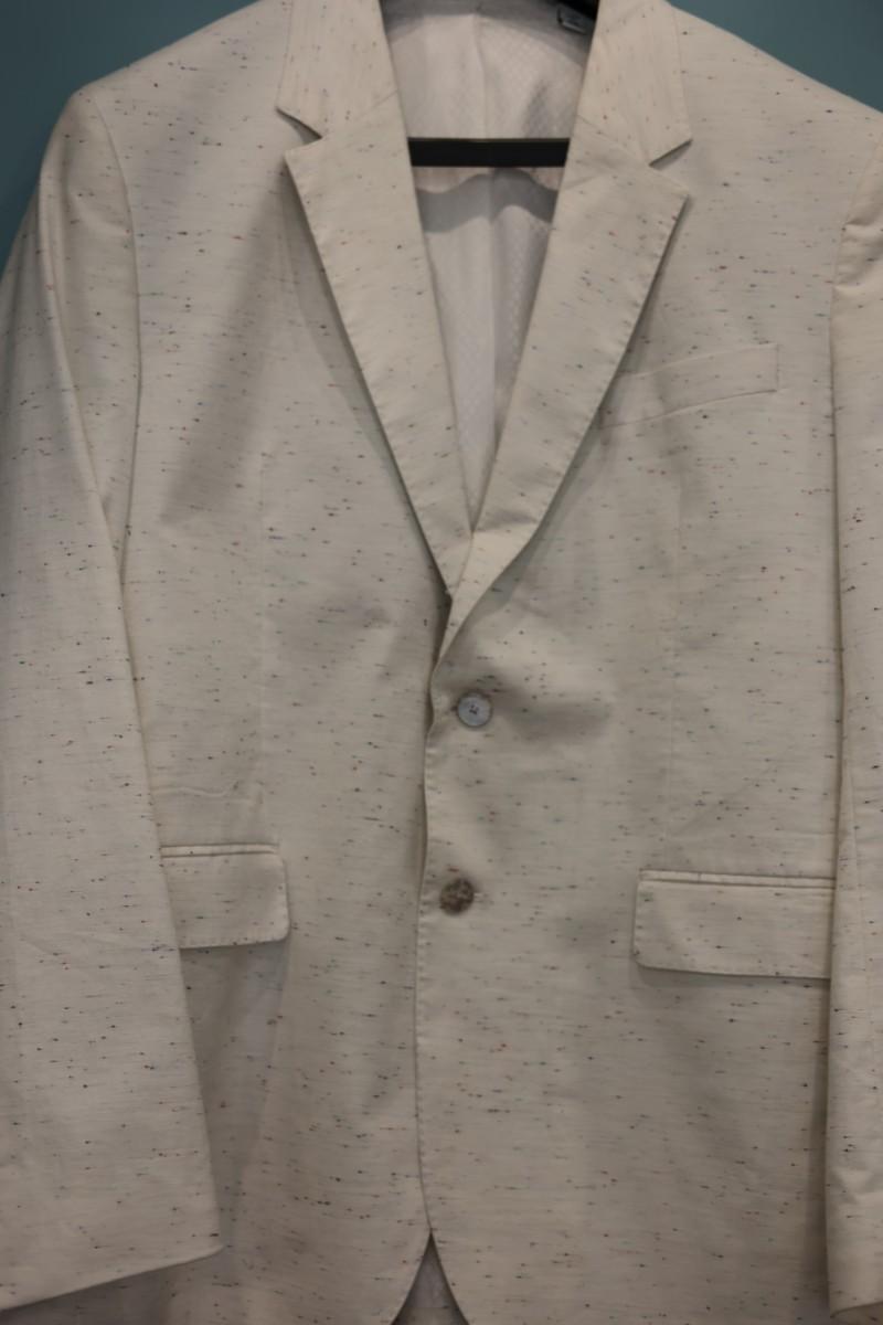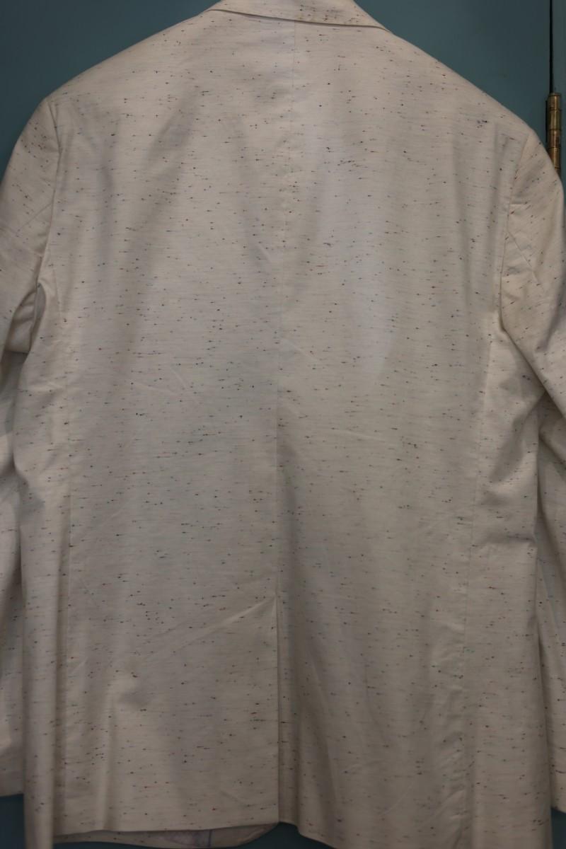 The white one has a little discolor in the inside of neck. Will need dry cleaning. The stripe is in perfect condition.