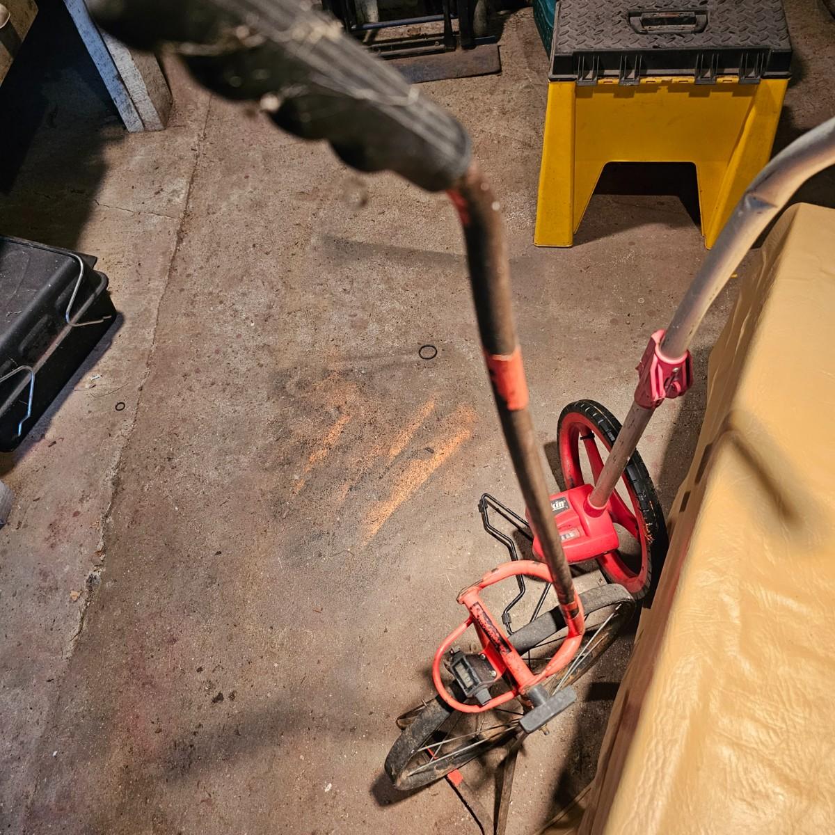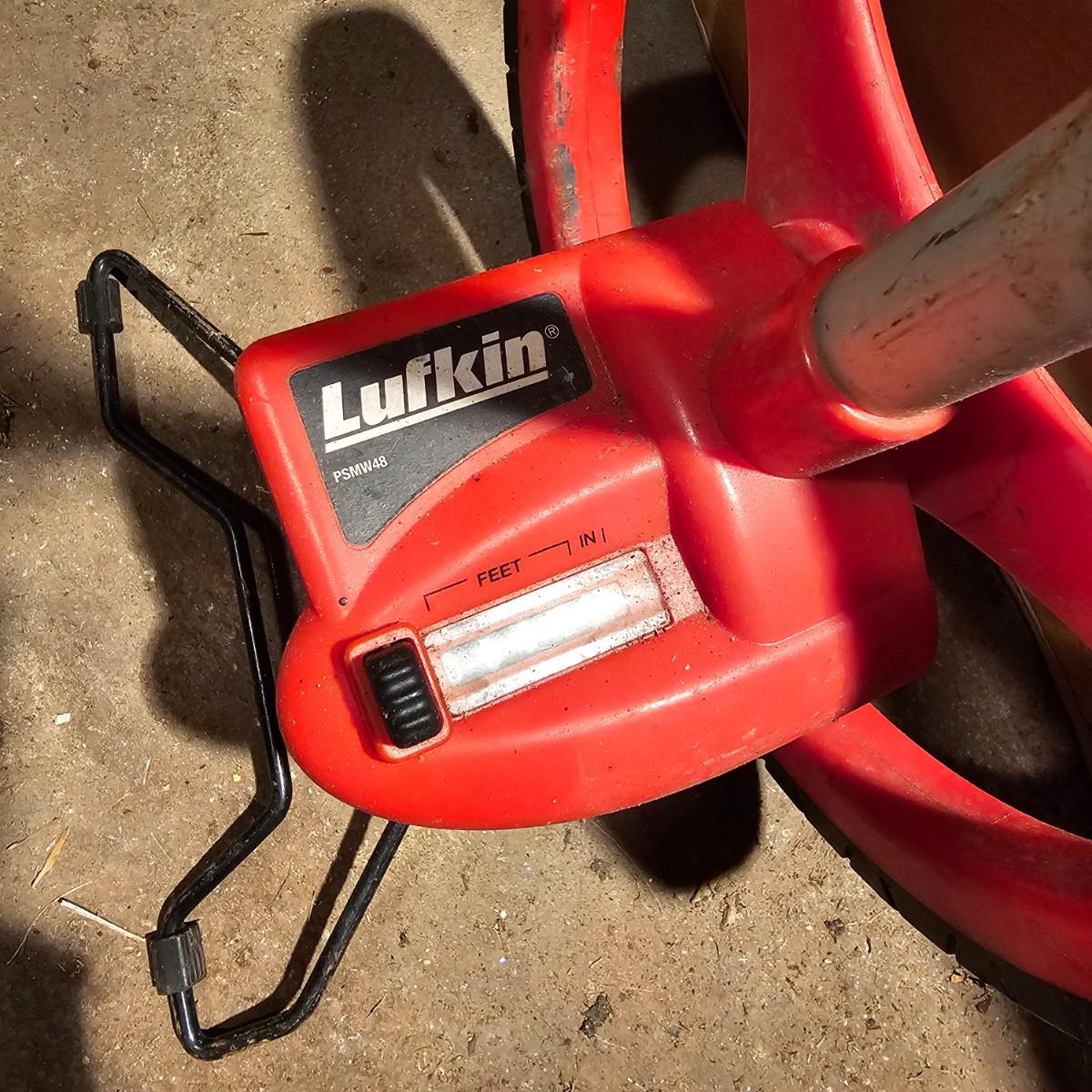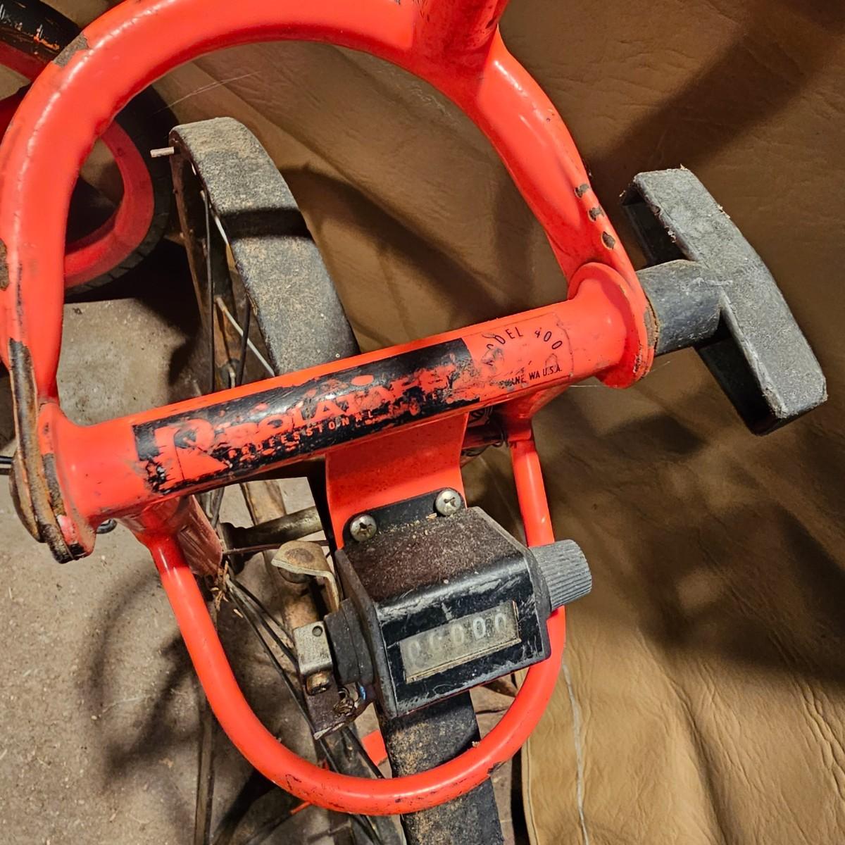 One Lufkin and one Rolatape walking style measuring wheels. Distances show in windows as you walk along, can be reset for next job. Largest item is 25" x 9" x 45"H. See photos for details. Local pickup only.