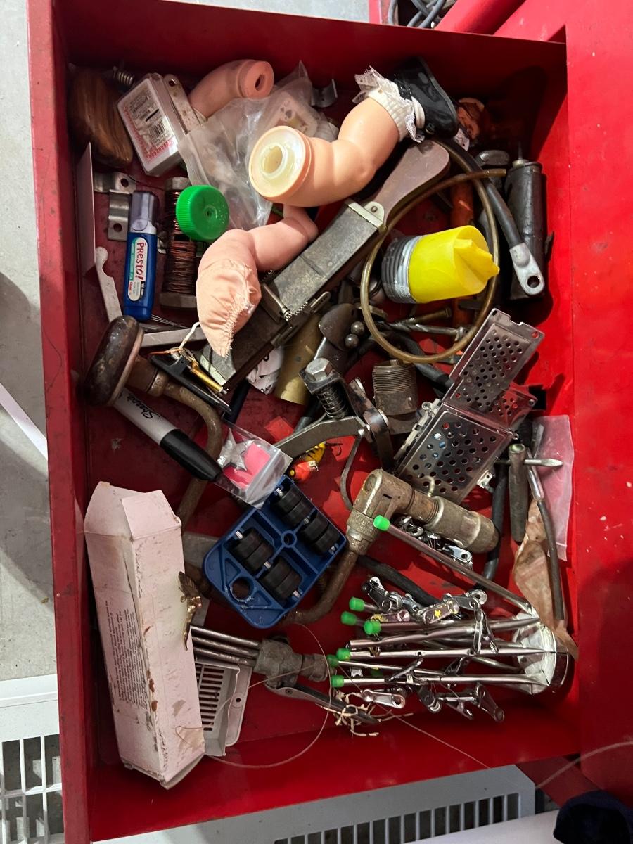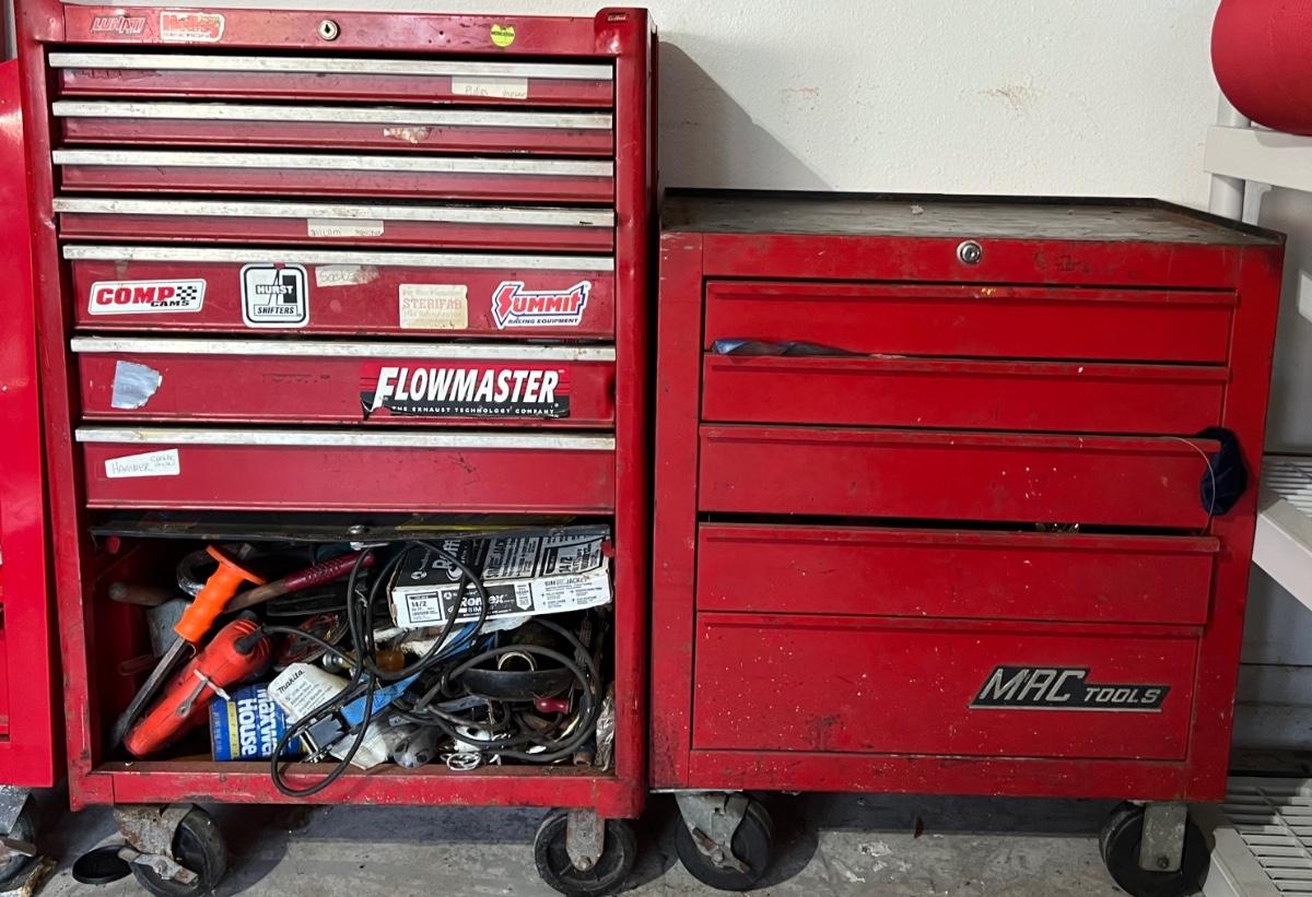 Two bottom chests. Includes contents, as pictured. One is Mac, and one is missing the logo. Measurement of largest: 33.5" x 27.5".