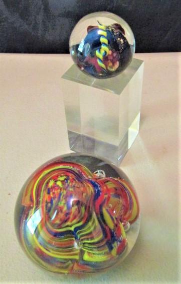 Two Round Paperweights- One is 2 1/4" Across, One is 1 1/4" Across