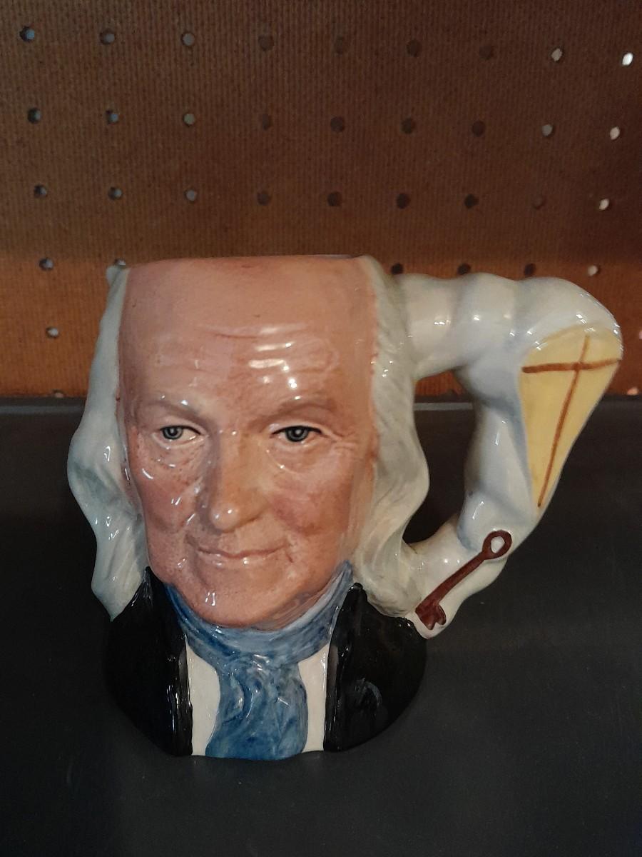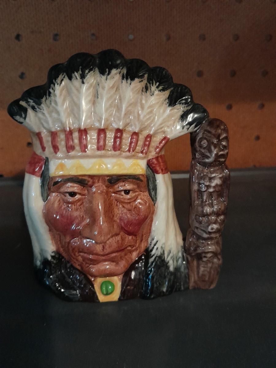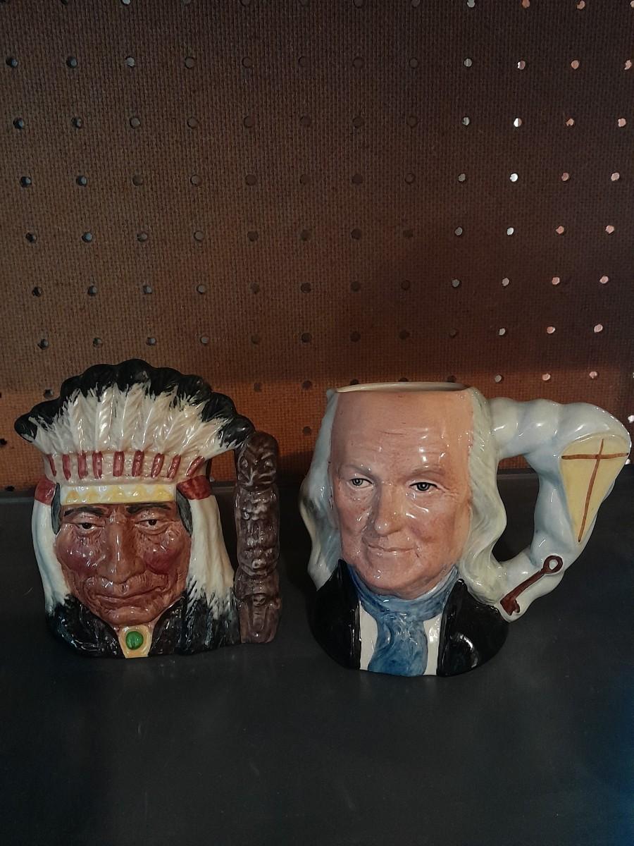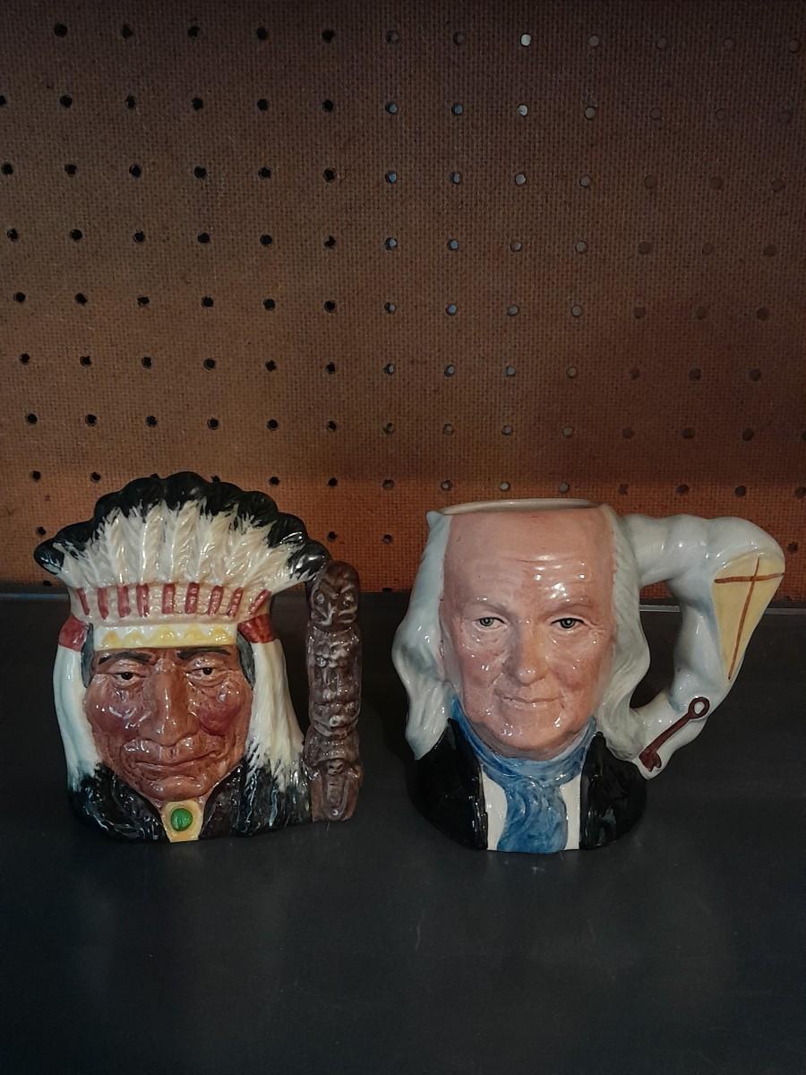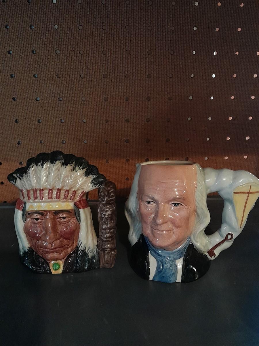 TWO ROYAL DOULTON CHARACTER JUGS NORTH AMERICAN INDIAN & BENJAMIN FRANKLIN APPROX. 6 3/4"