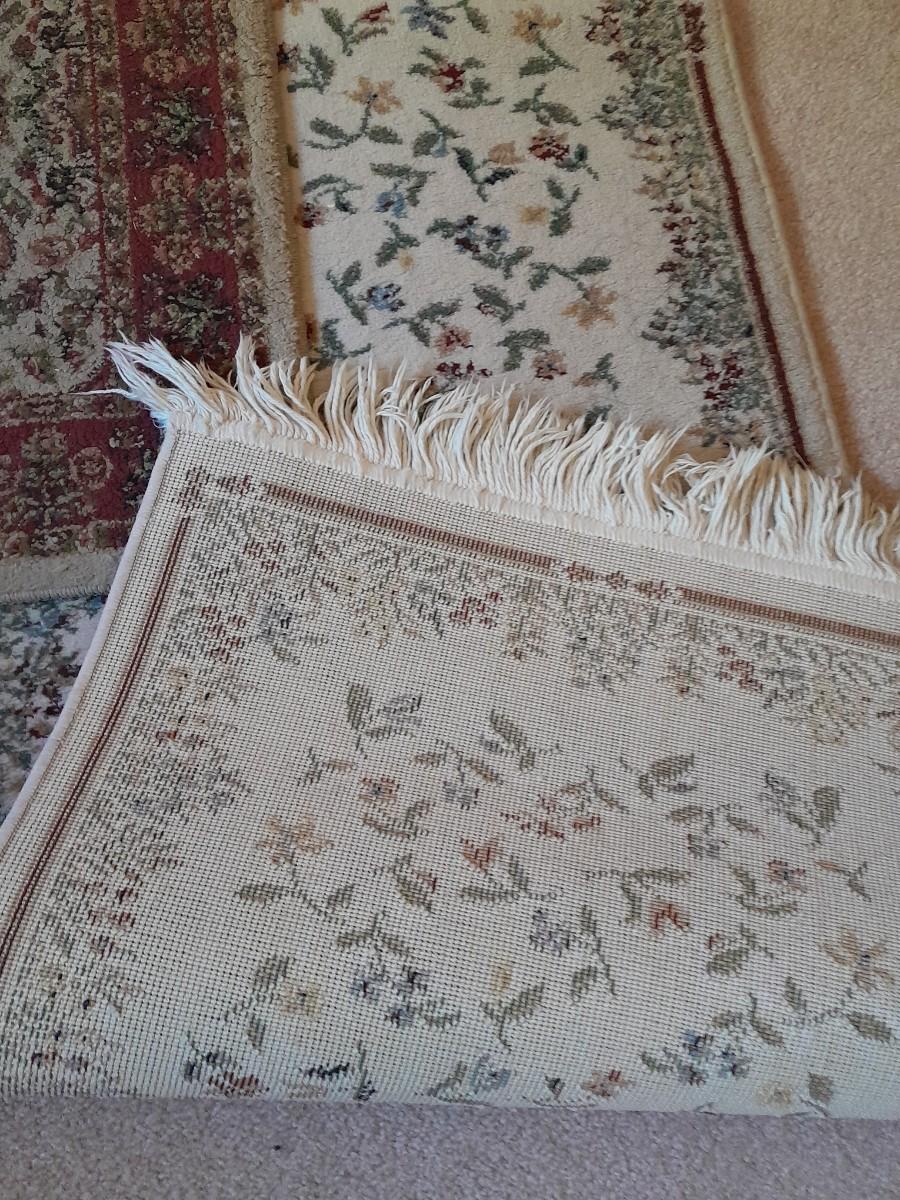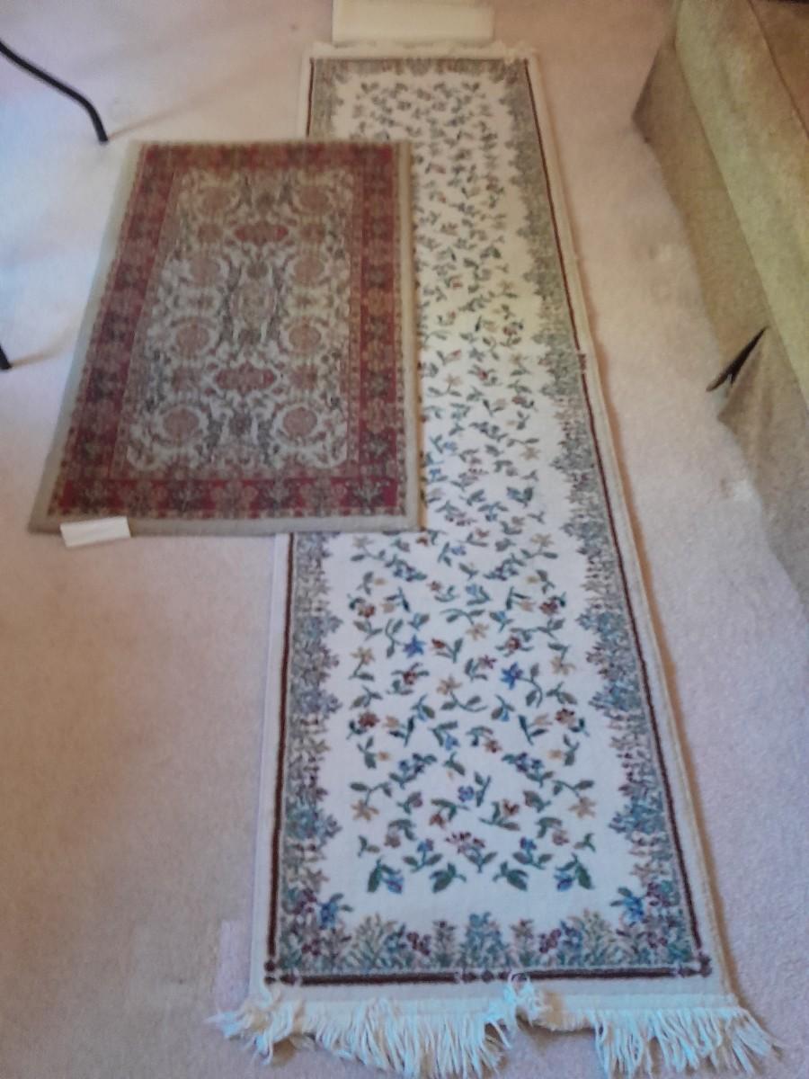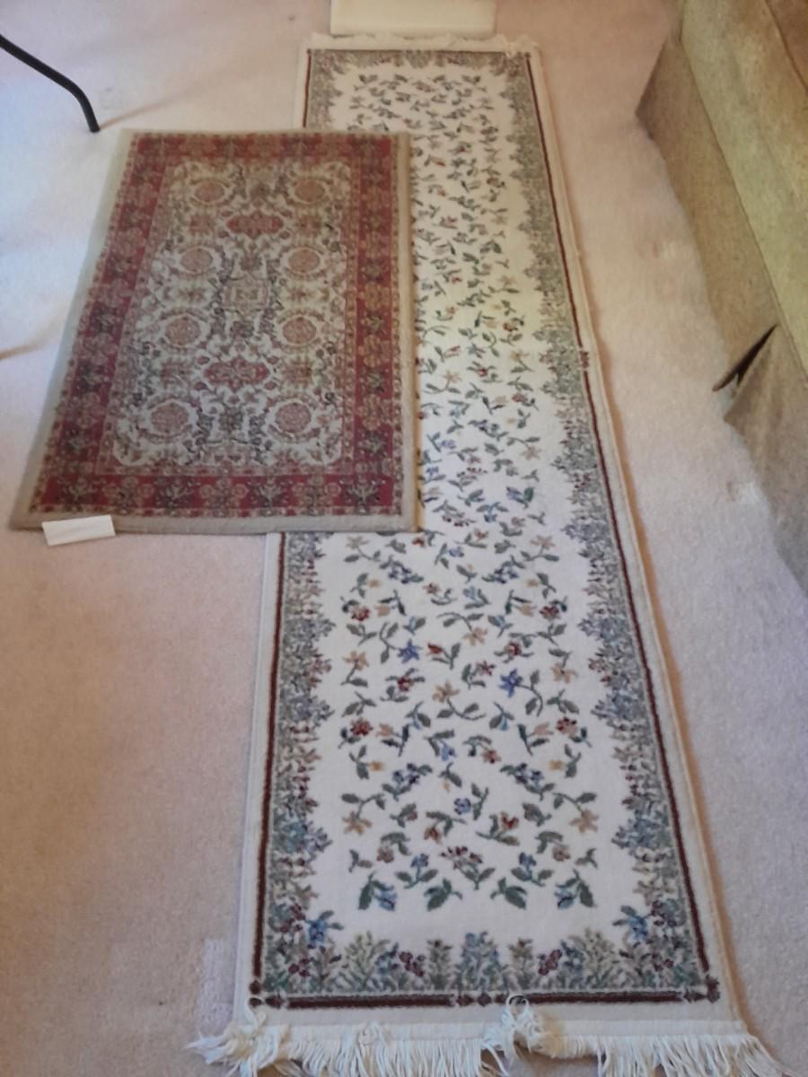 TWO RUGS, ONE RUNNER RUG AND ONE THROW RUG RUNNER RUG IS 92" X 23"
