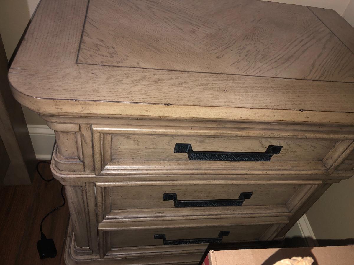 These two end tables are brand new and come with a power hook up panel for all your devices. They have 3 drawers each. They measure 30 x -8 x 30