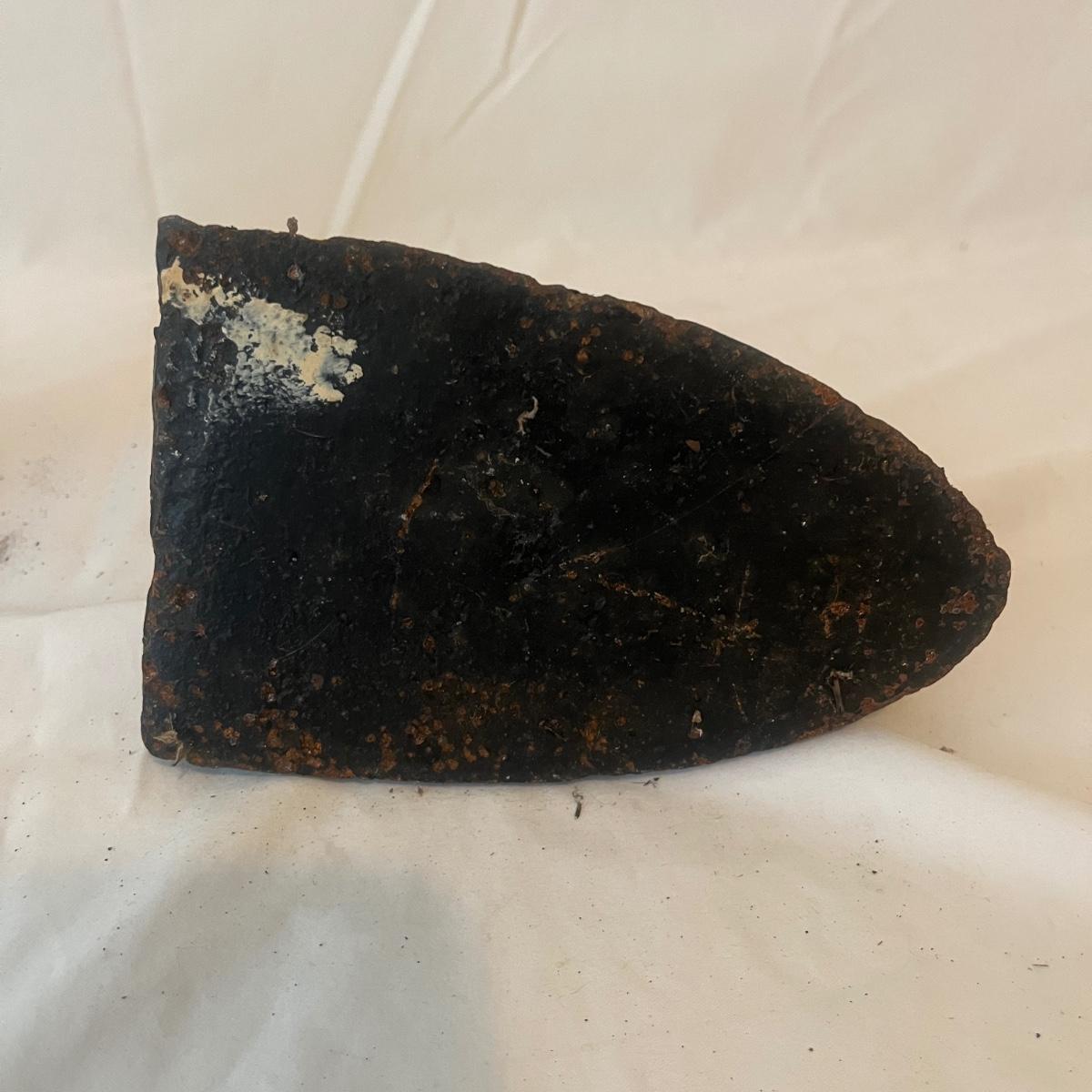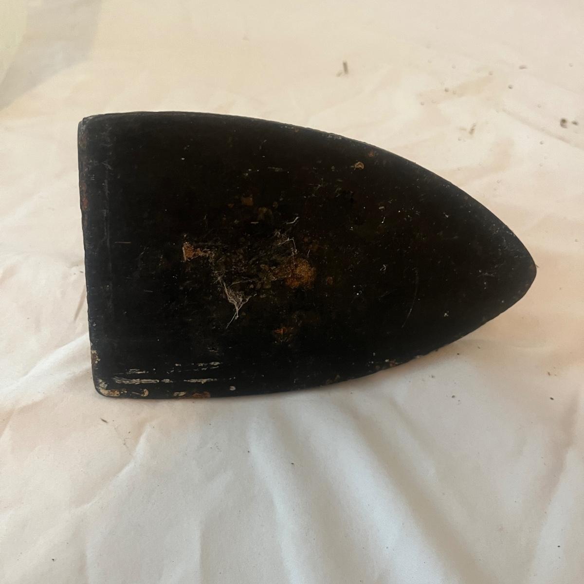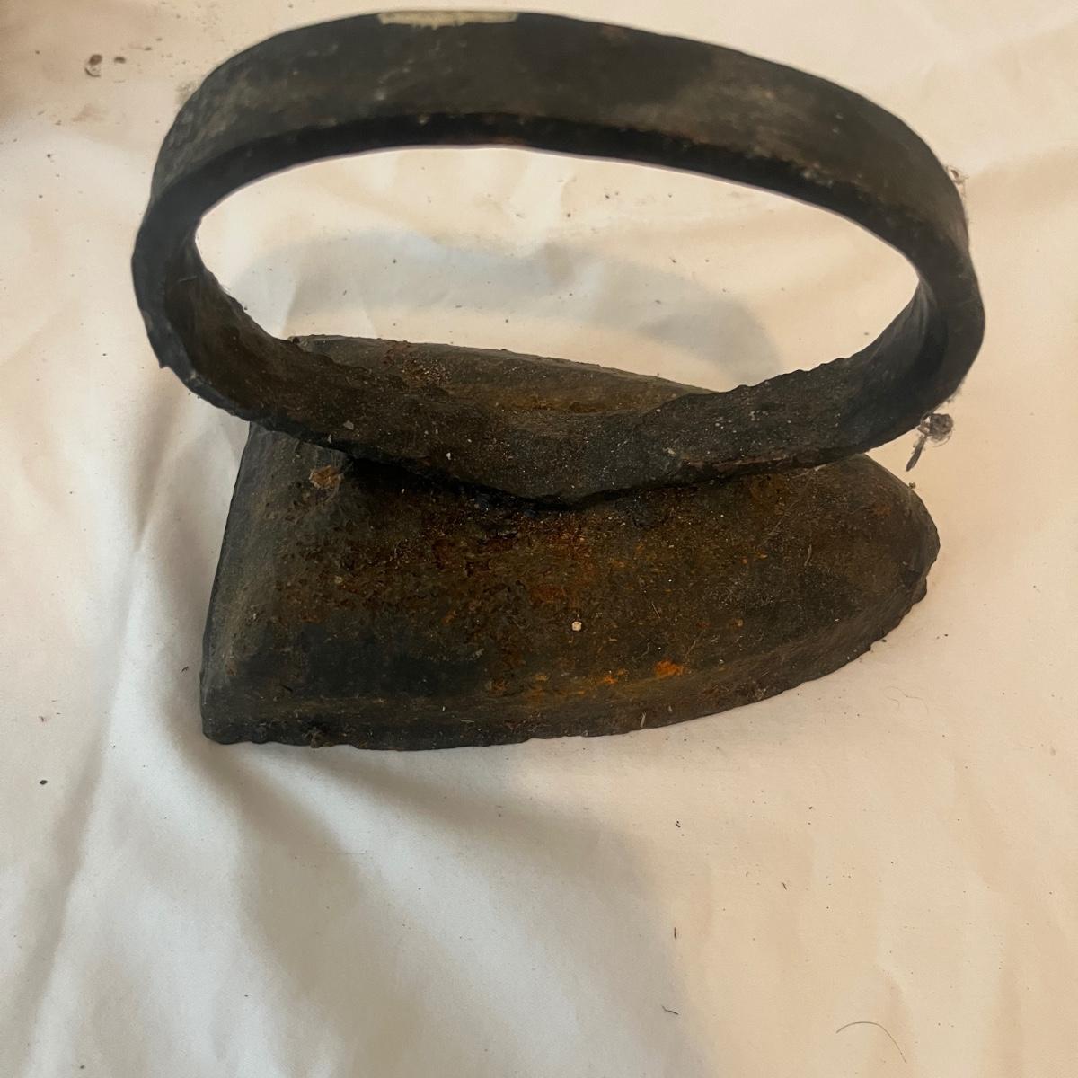 Lot includes two iron sad irons. Irons measure 4” x 4.5” x 6.5”H. Irons have rust, but appear solid, see pictures.