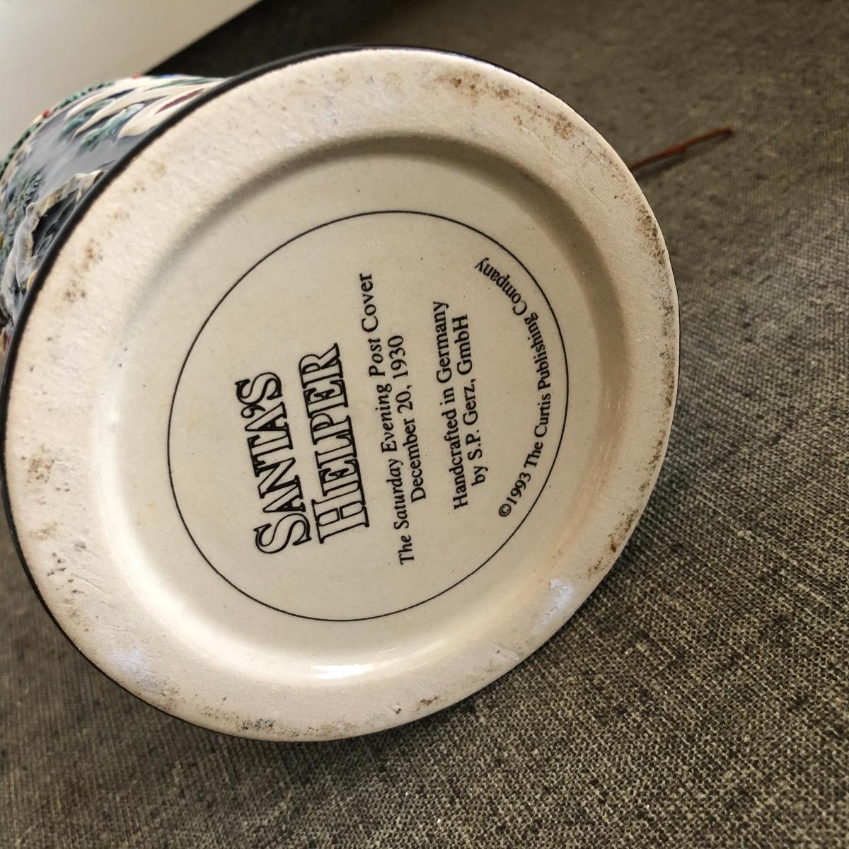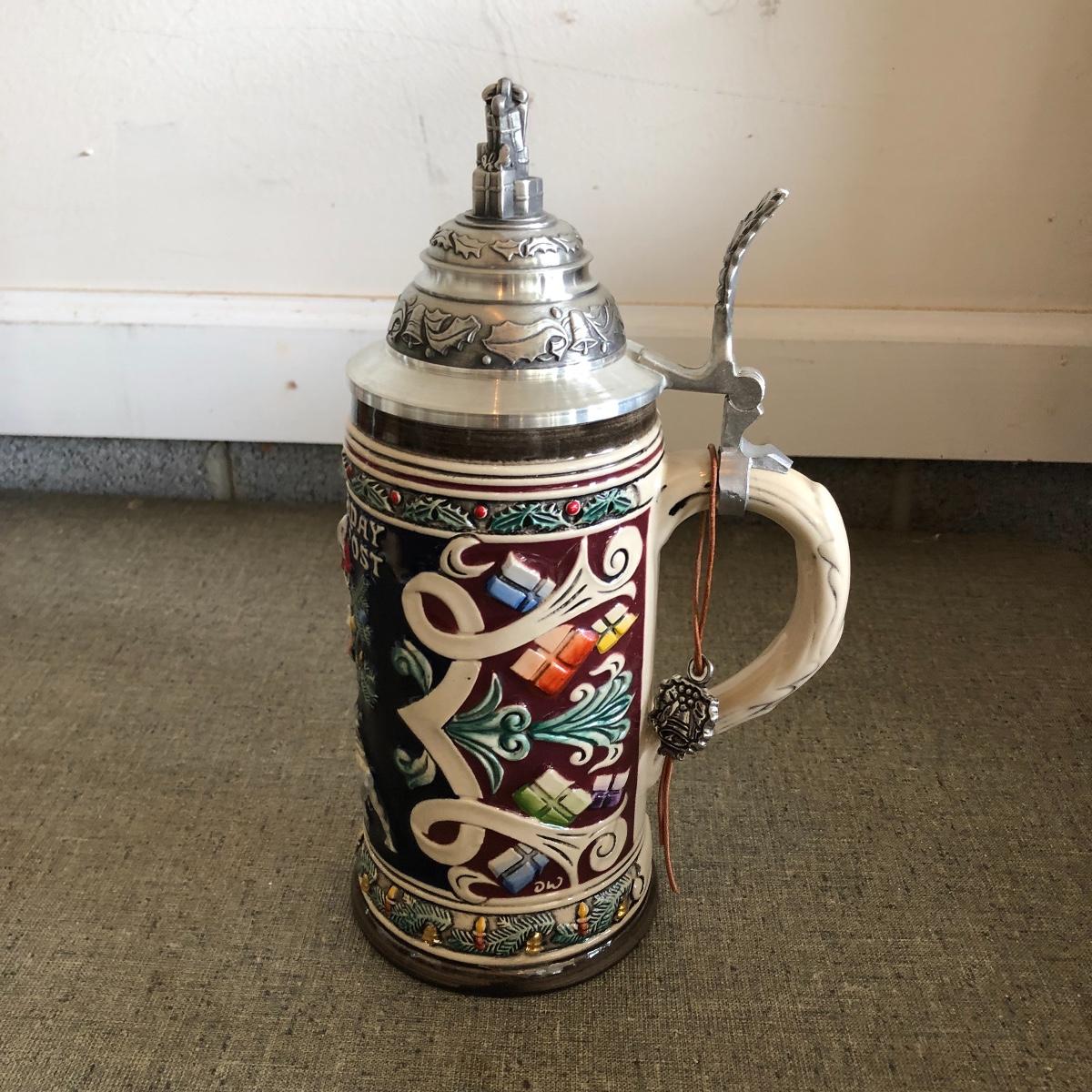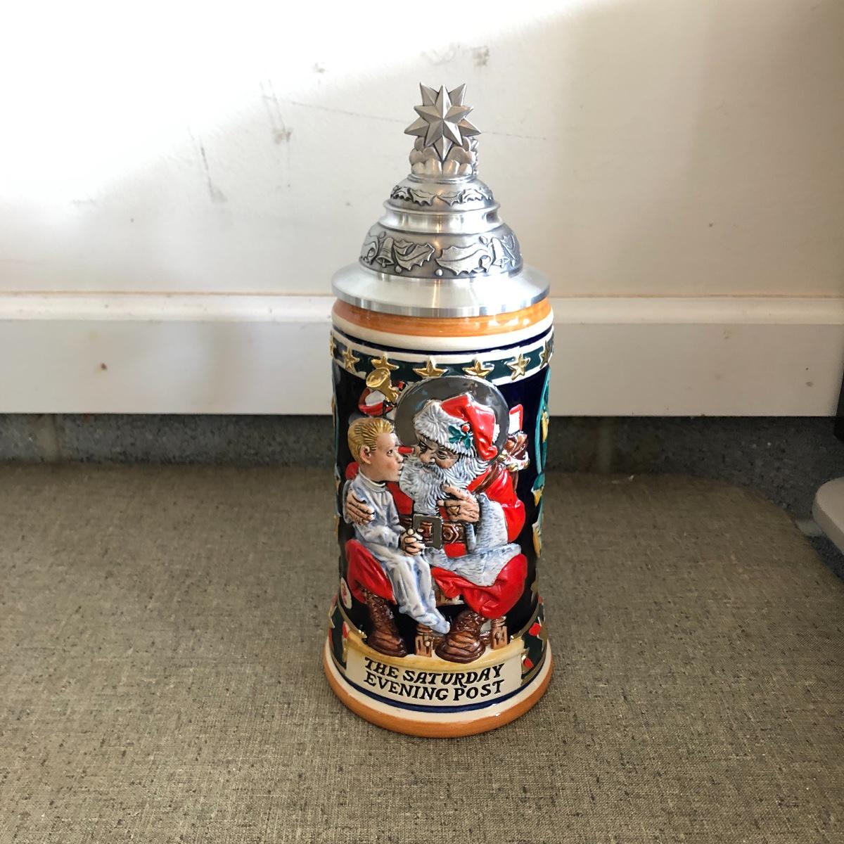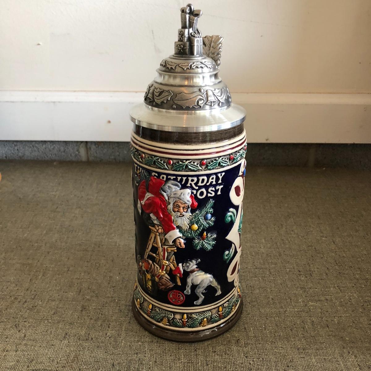 Lot includes pair of Saturday Evening Post Cover Steins. They are titled “ All I Want For Christmas and Santa’s Helper”. Both are handcrafted in Germany by S.P. Gerz. Largest Stein measures 4.25”D x 11” tall.
