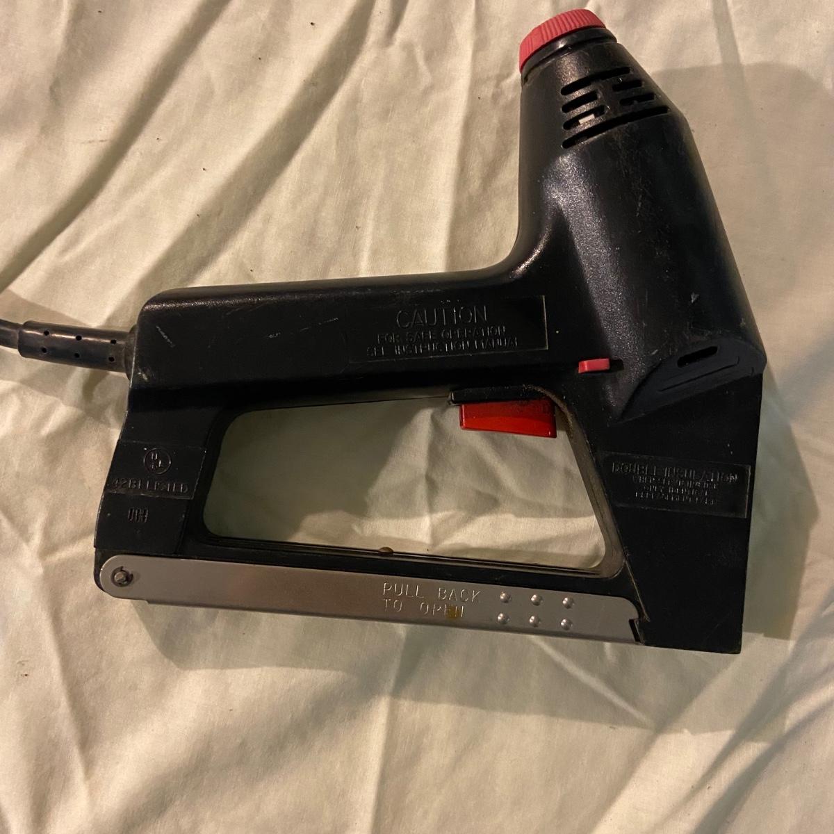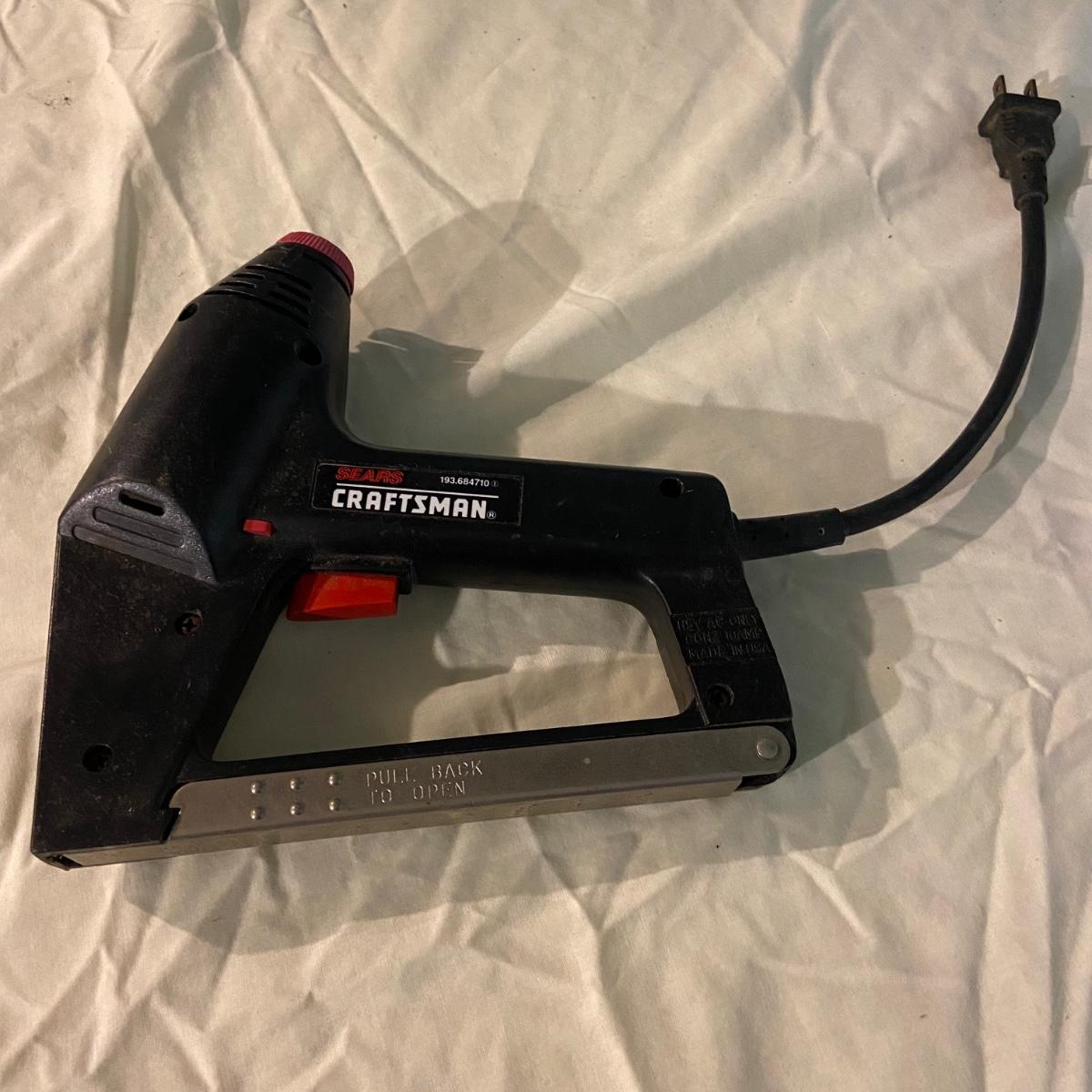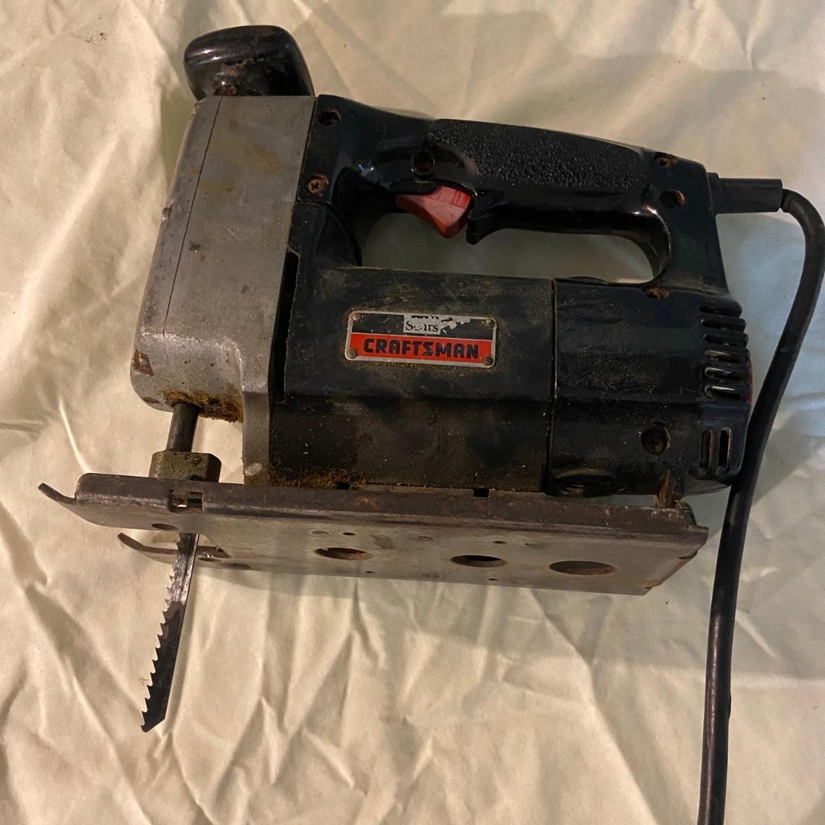 This lot includes a total of three items, all three of which get plugged in and do power on. The first is a ‘SEARS Craftsman’ staple gun. The gun itself is about 7.5” long. The second is a ‘Black and Decker’ sable saw that measures 18” long. The last item is a ‘SEARS Craftsman’ handheld scroll saw. This saw is approximately 9” long. Shipping available. Shipping can be costly. We suggest contacting our preferred local shipping provider, Postage Express, with dimensions and getting an estimate before bidding: (828) 255-9250 or shipping@postageexpressnc.com.