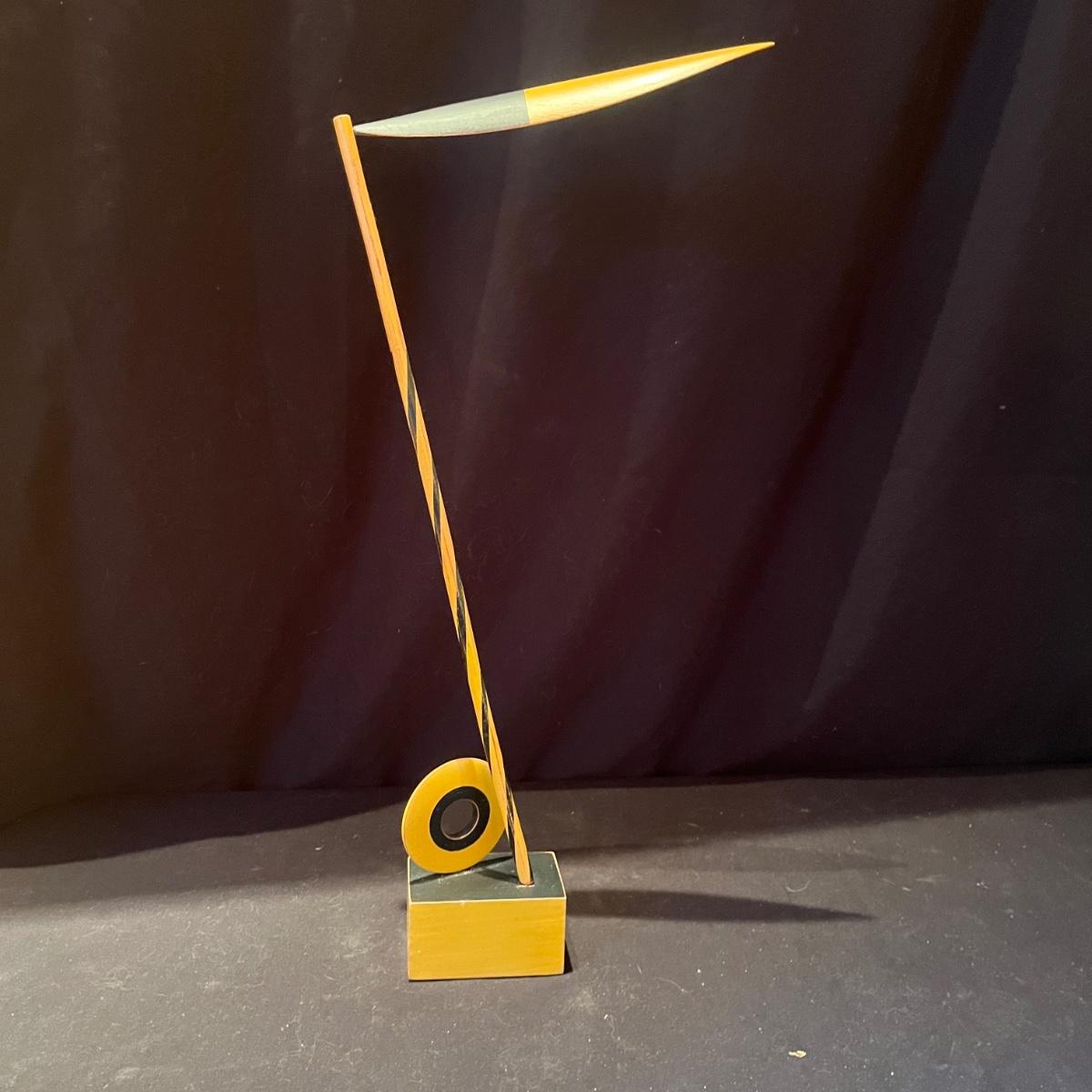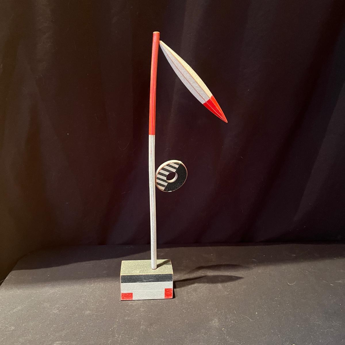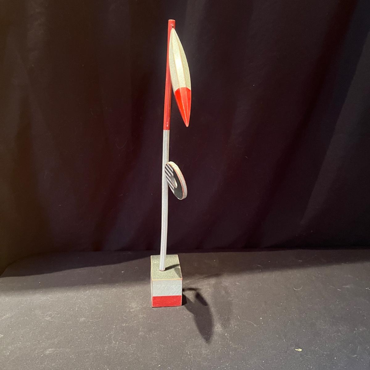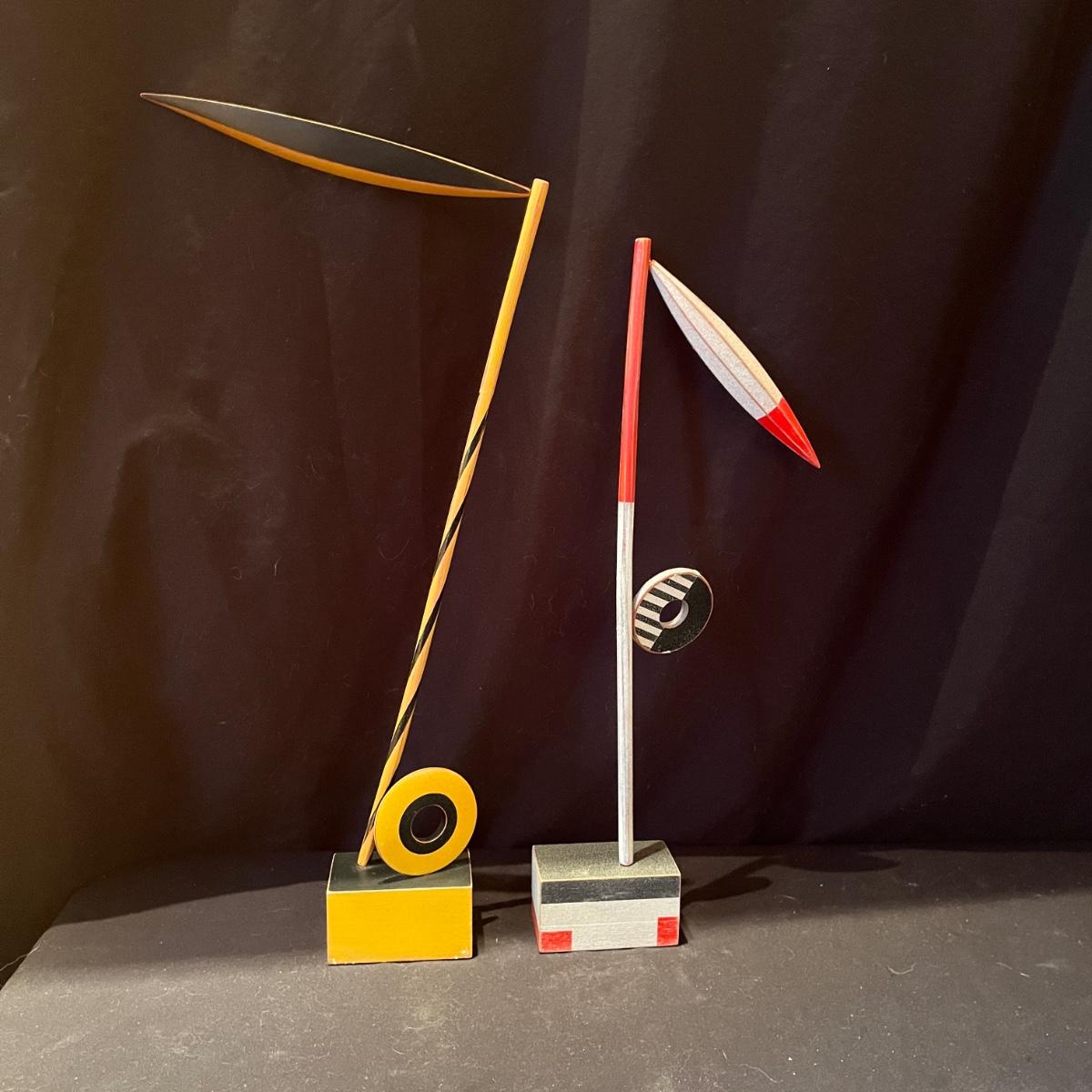Lot includes two signed Sean O’Meallie painted wood artworks. Tallest piece measures 9” x 2” x 20”H.