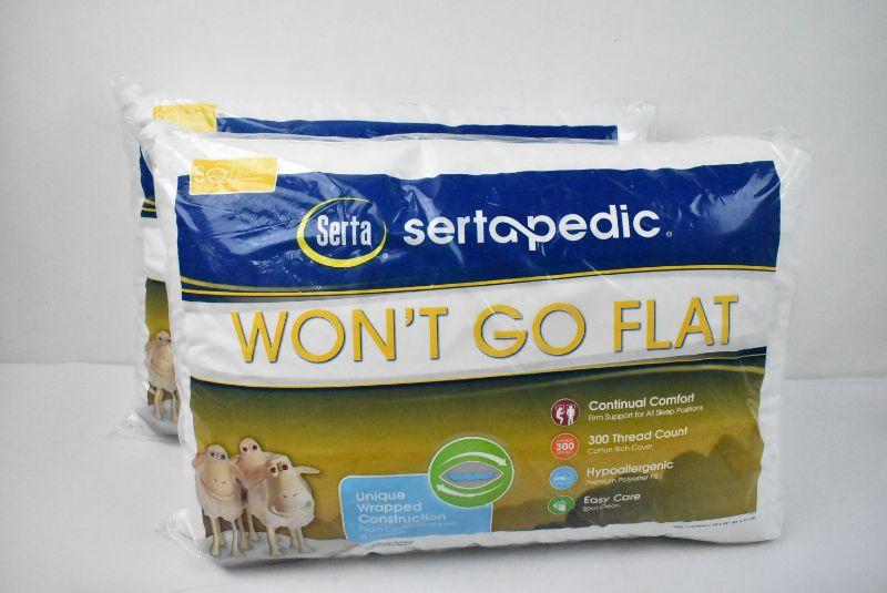 Two Sertapedic Won't Go Flat Pillows, Standard/Queen - New