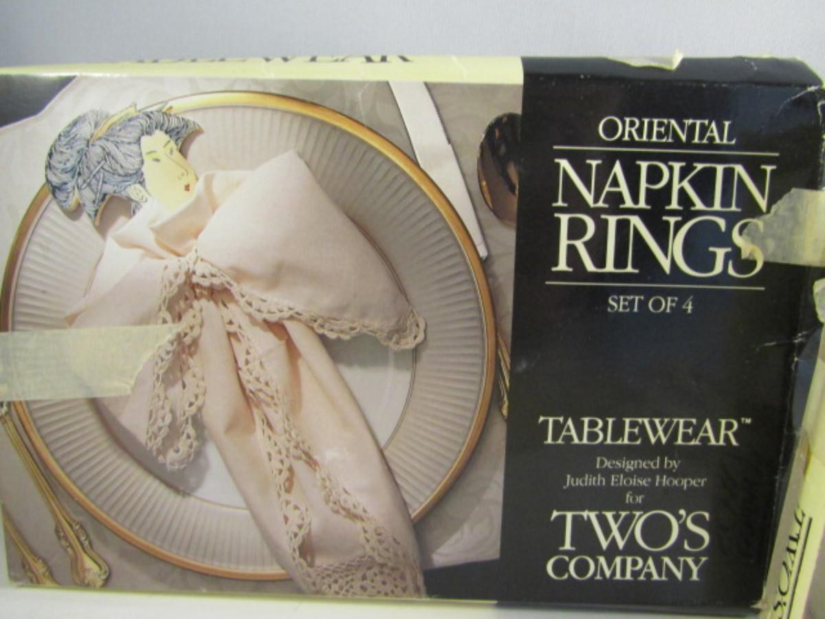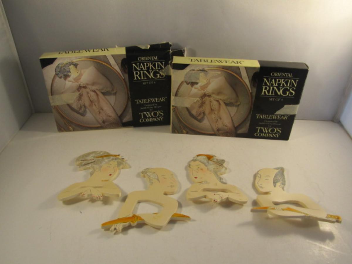 Two Sets of Asian Design Napkin Rings (Eight Pieces Total)
