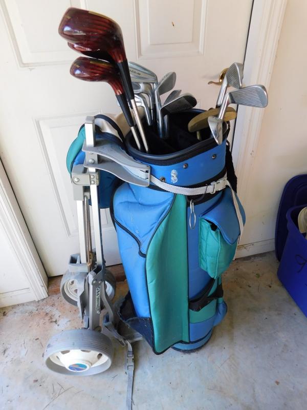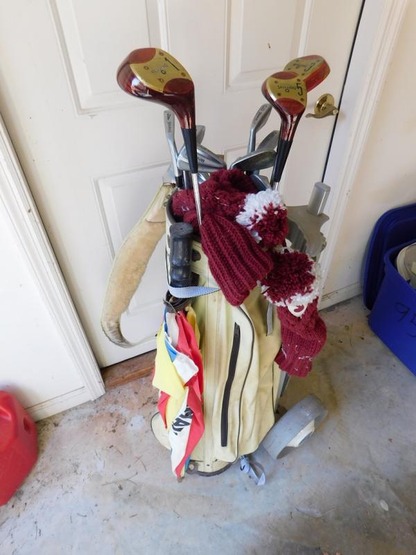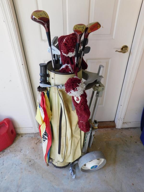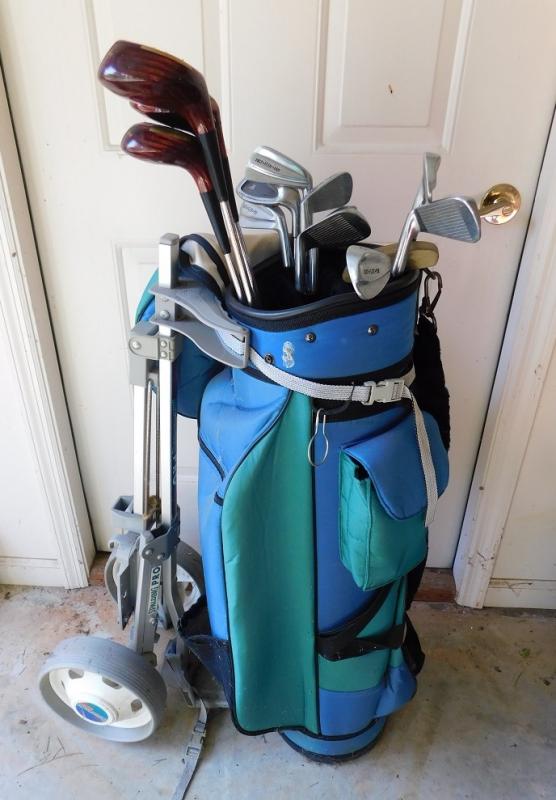 Two Sets of Golf Bags, Clubs, and Pull Carts plus any item in the bags