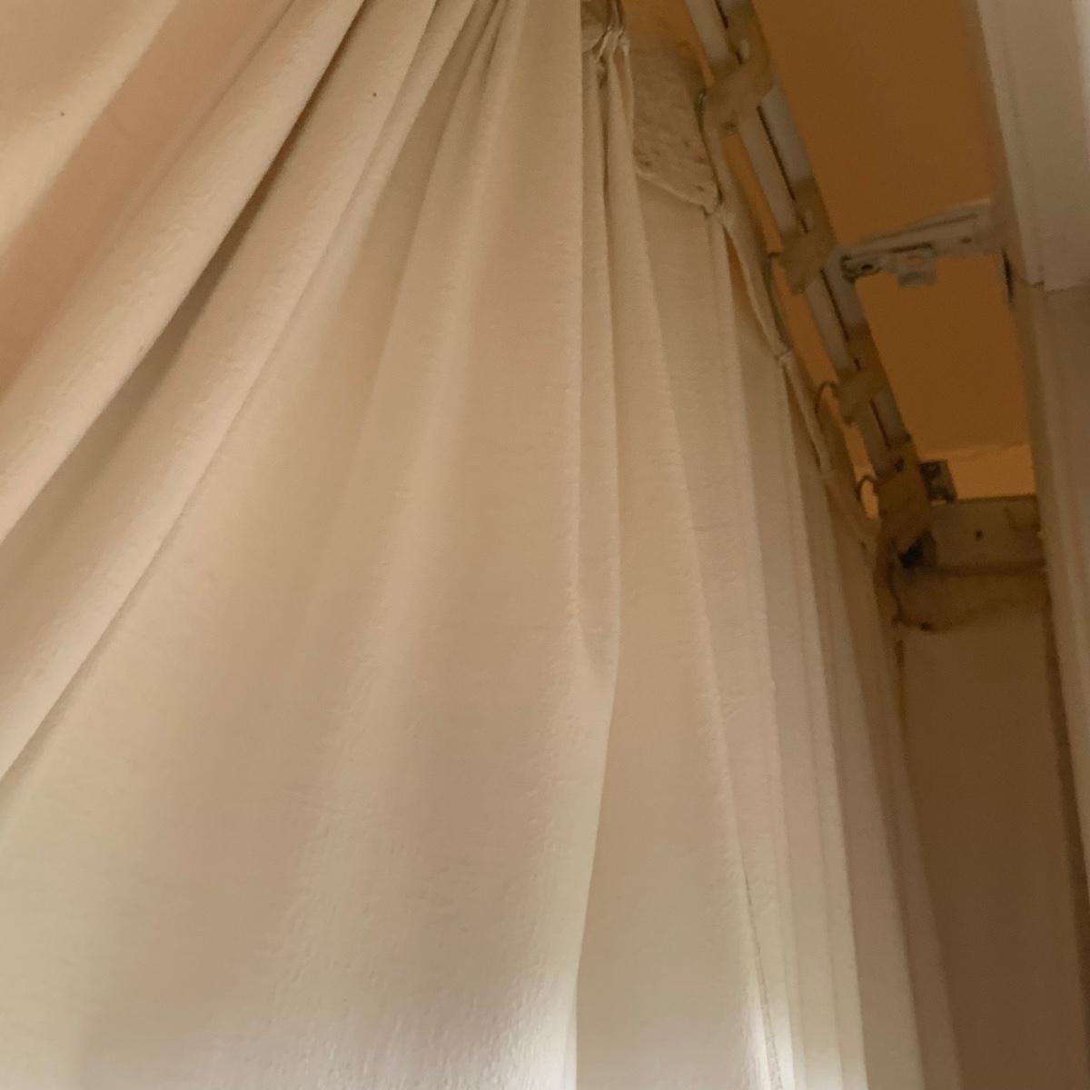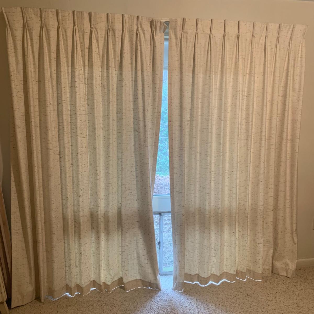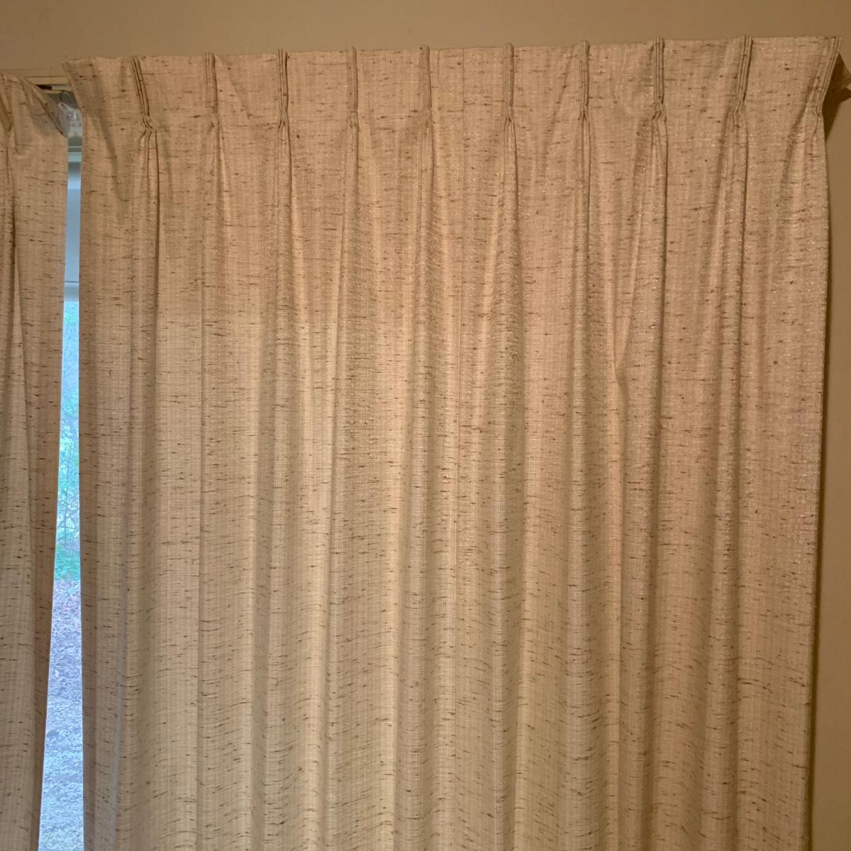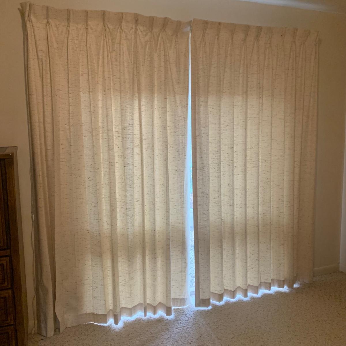 Two matching sets of curtains, four panels total. Tags state the are from JC Penney. They are a linen color. Each panel is approximately 62” wide x 83” long. Rods and all hardware are included and will need to be removed by the winning bidder. Please bring appropriate tools and a step ladder.