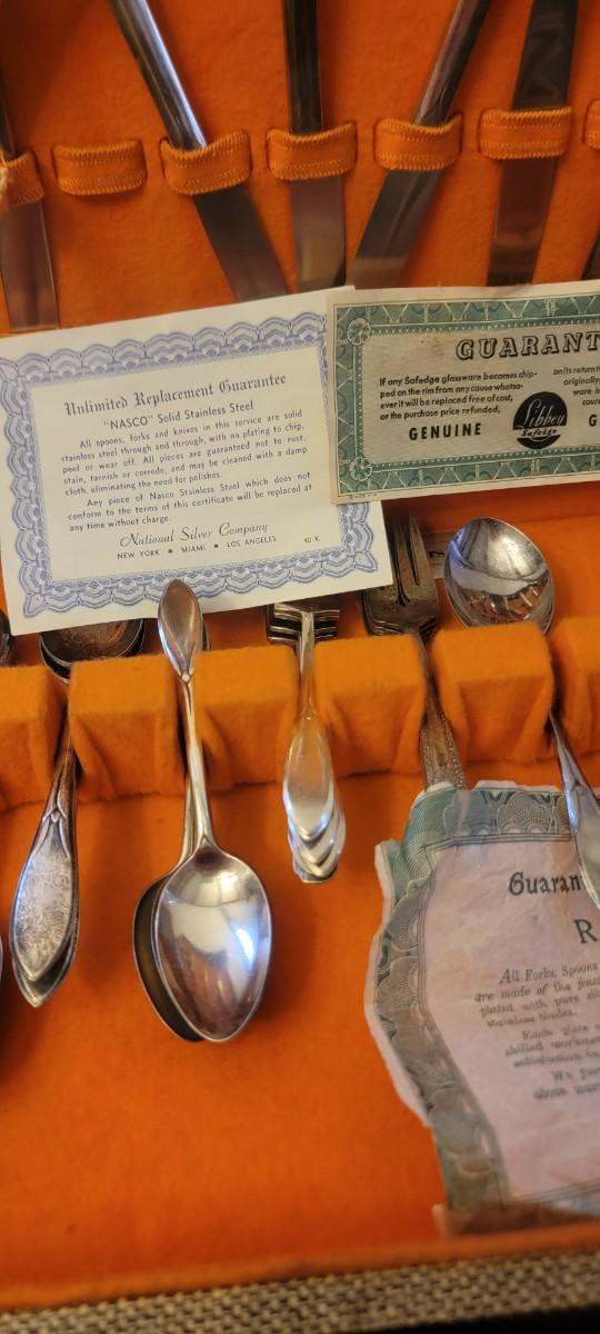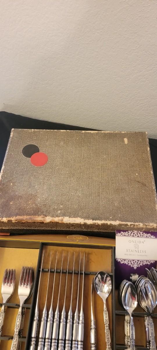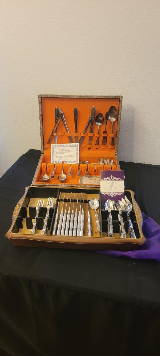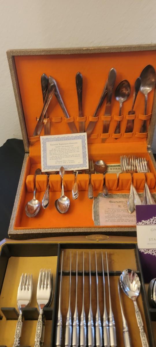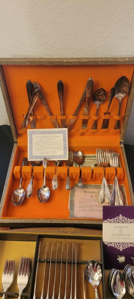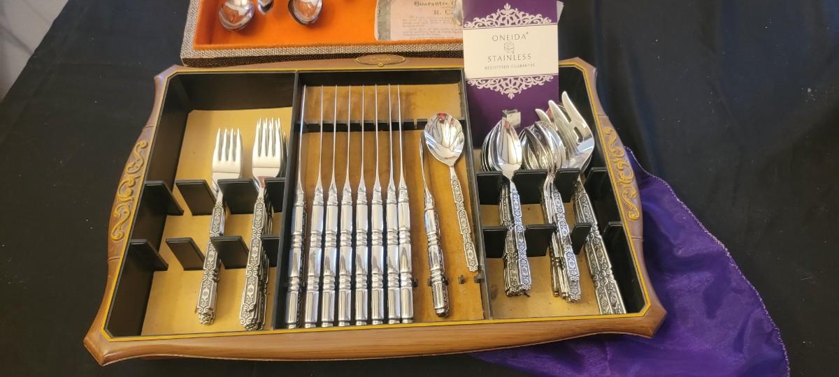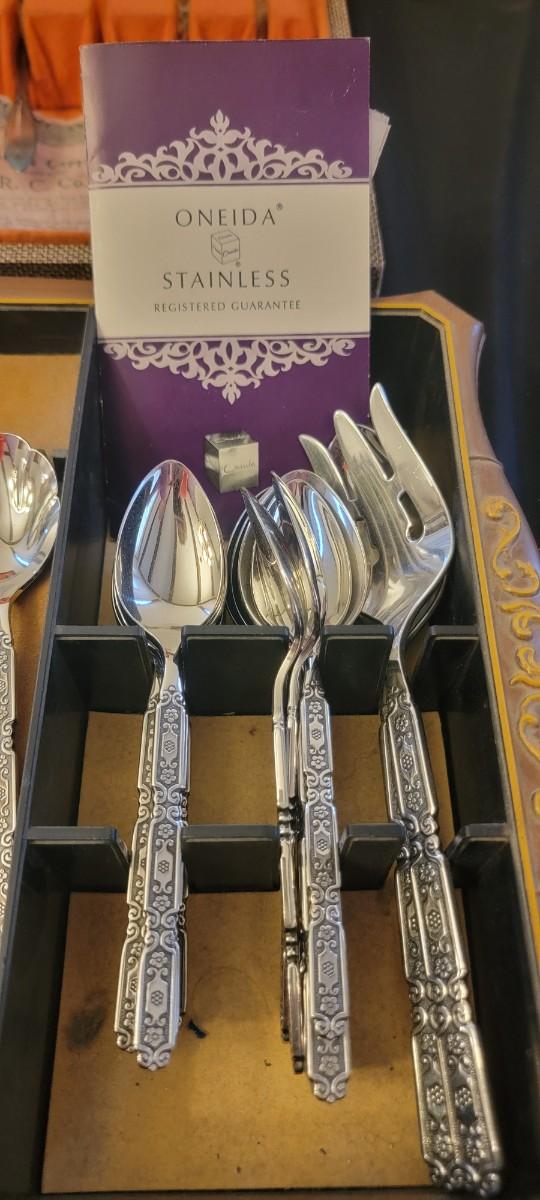 Oneida tray of Oneida stainless, Wm Rogers silverware in case