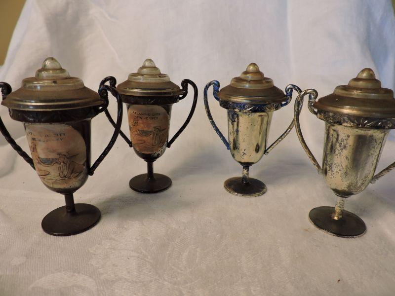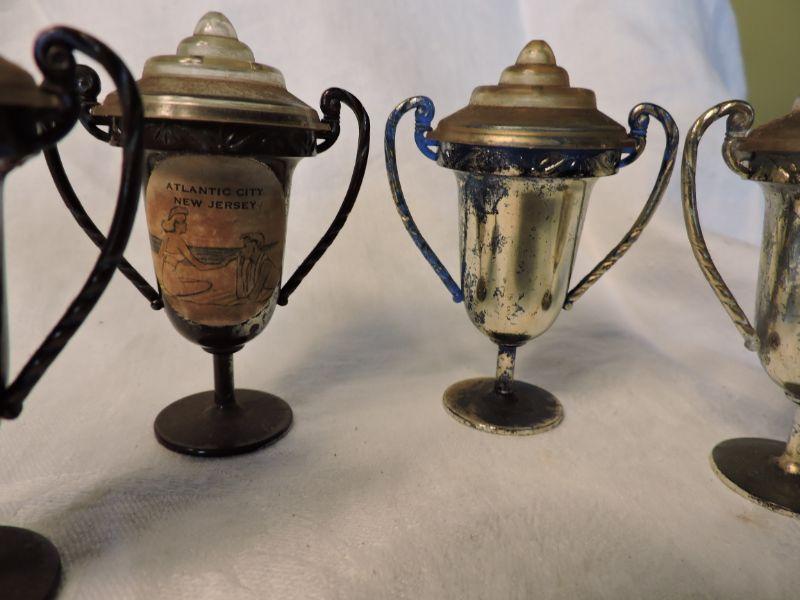 Two Sets of Trophy molded plastic Salt and Pepper Shakers. These rock back and forth. **Please read Terms and Conditions before placing a bid. Pick up is Wednesday, September 25 from 4pm to 7pm and Saturday, September 28 from 9am to 1pm in Williamstown, NJ. All sales are final. All sales are as is, where is. Please review all photos. Any props included in photos are not included in listing. All measurements are approximate.