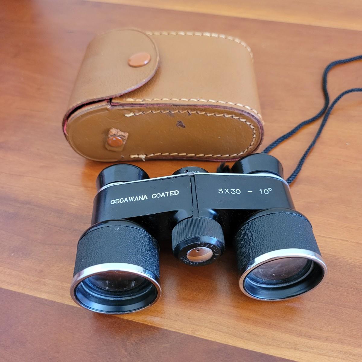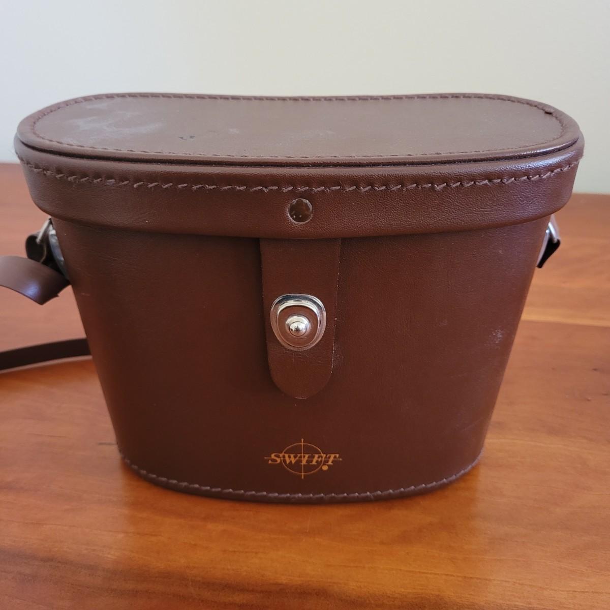 This lot includes two pairs of binoculars. The larger pair is a Swift brand Audubon wide field view 8.5 x, 44. It includes leather carrying case with strap and lens covers. The second smaller pair does not have a brand name, but is printed with Oscawana coated 3 x 30 -10°. They include a leather carrying case and strap.