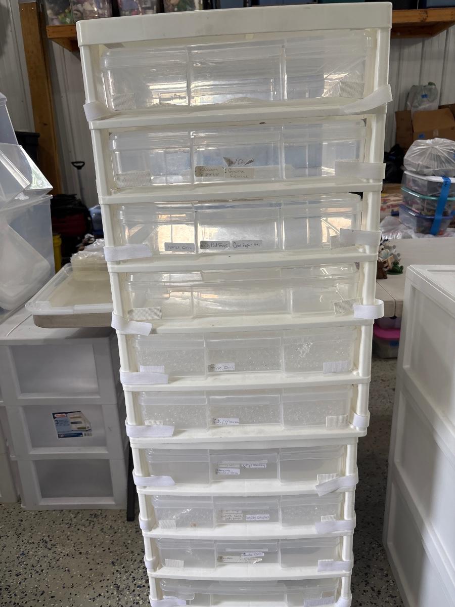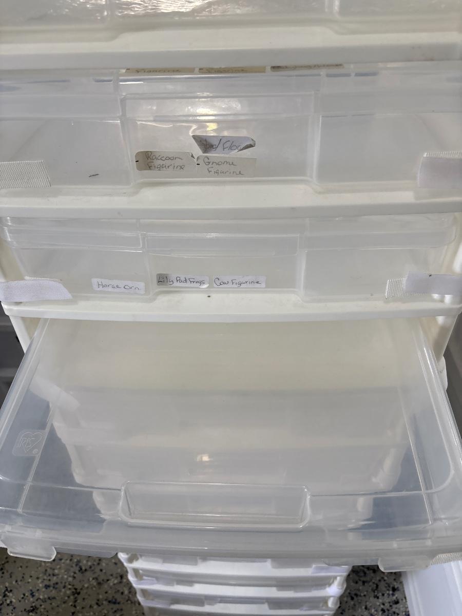 Two sets of plastic storage drawers 16” x 14” x 5”
