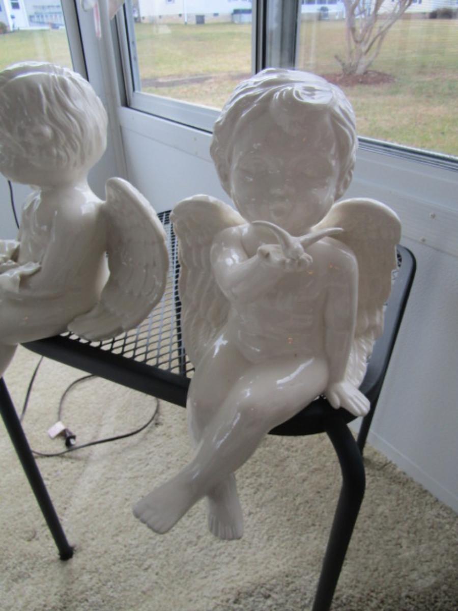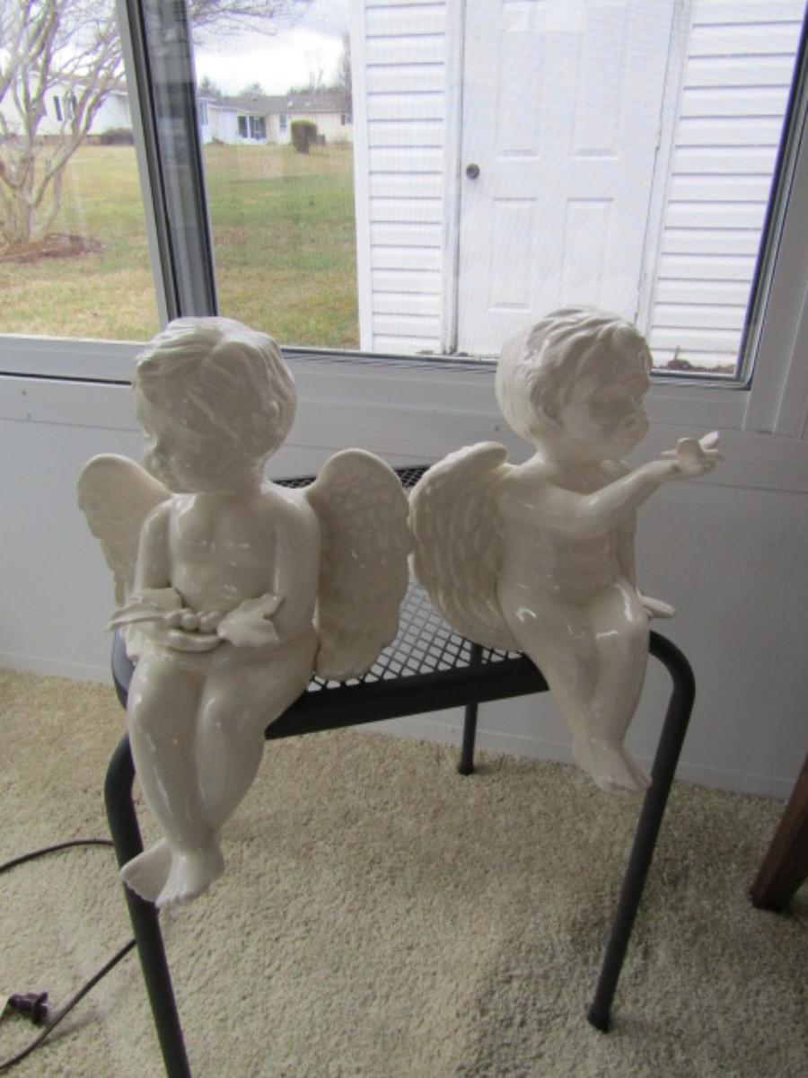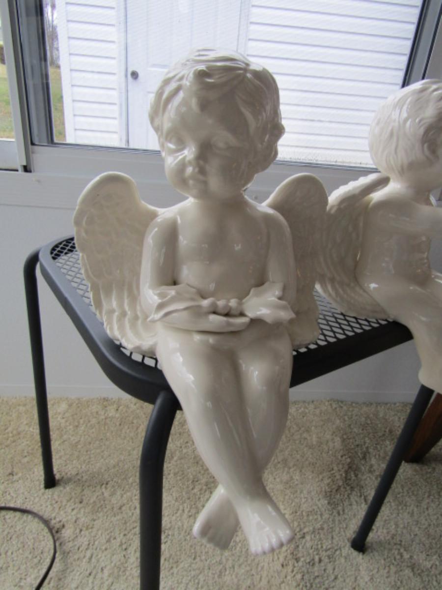 Two Shelf-Sitting Ceramic Cherubs (Table not included)